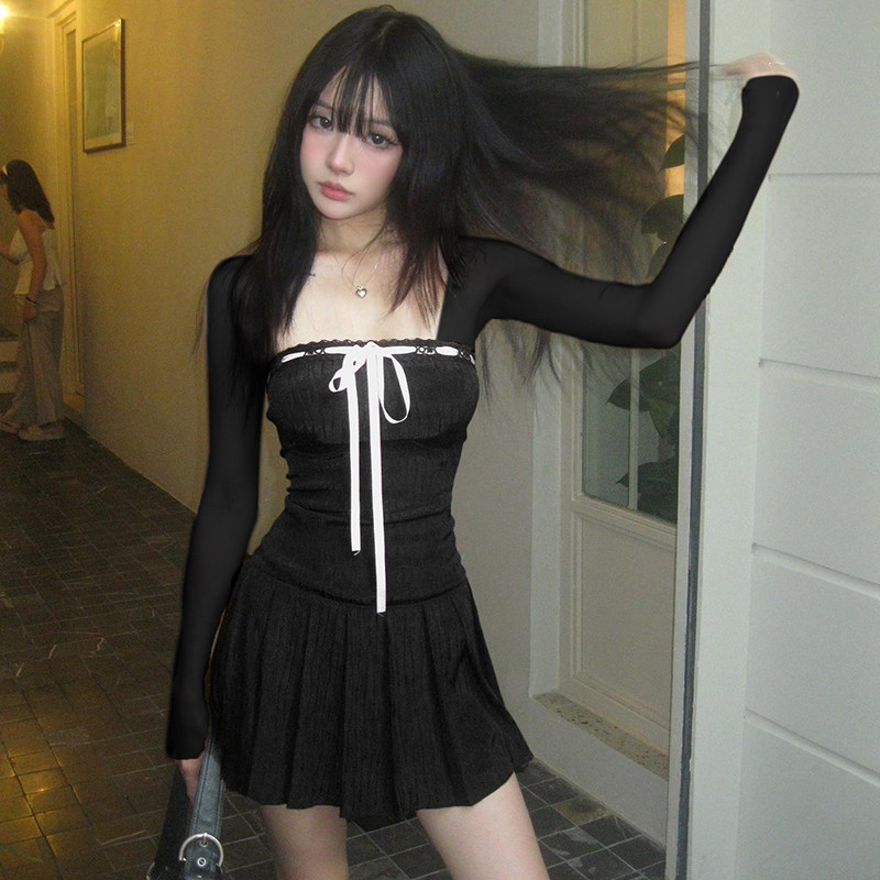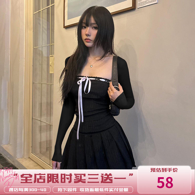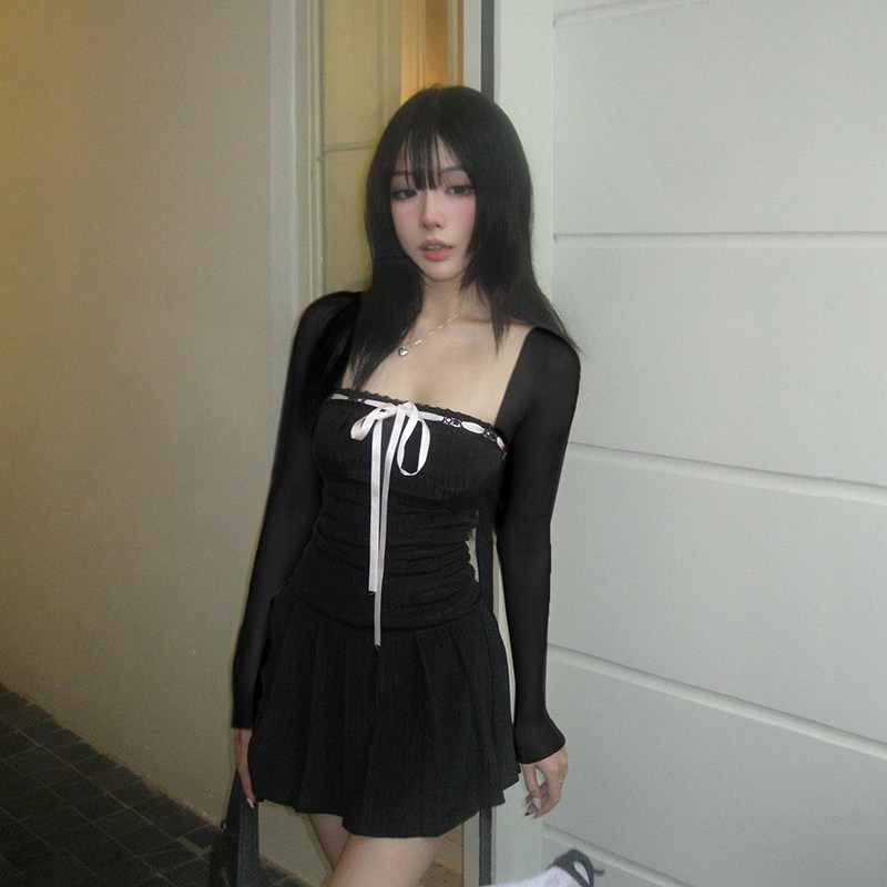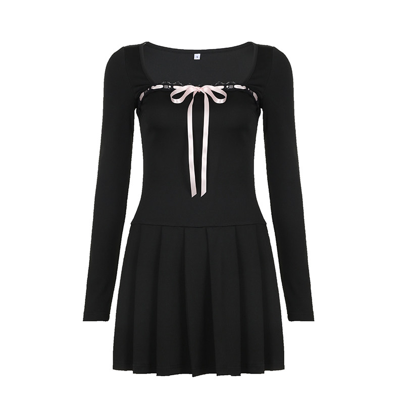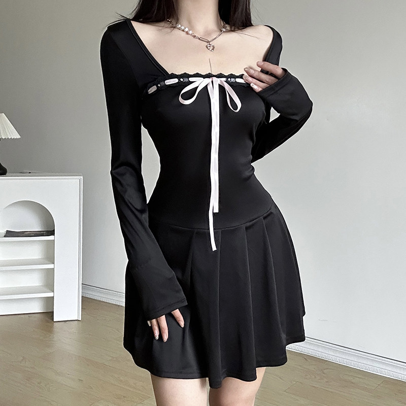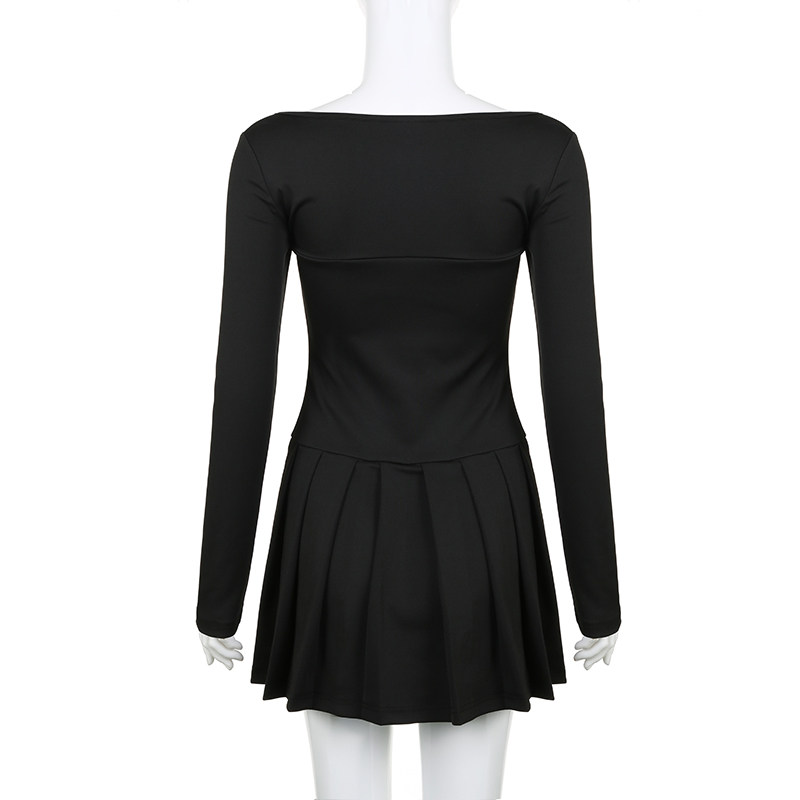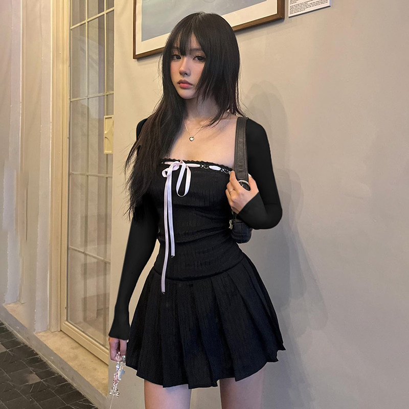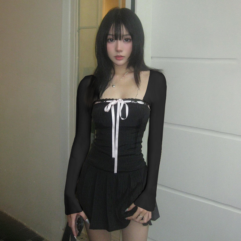 Мини-юбка, лонгслив, корсет, платье, юбка, французский стиль, квадратный вырез