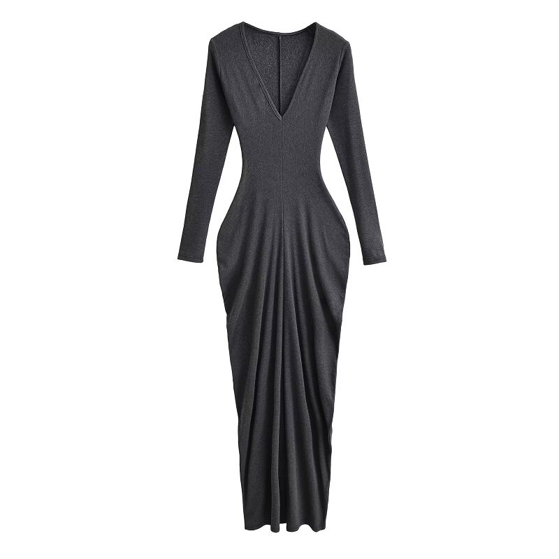 Сексуальная осенняя юбка в складку, элегантная длинная юбка, европейский стиль, увеличенная толщина, V-образный вырез