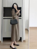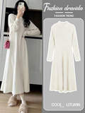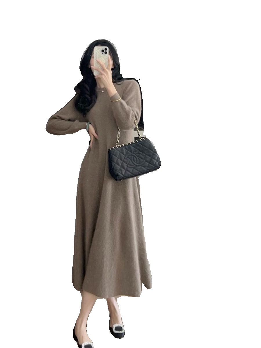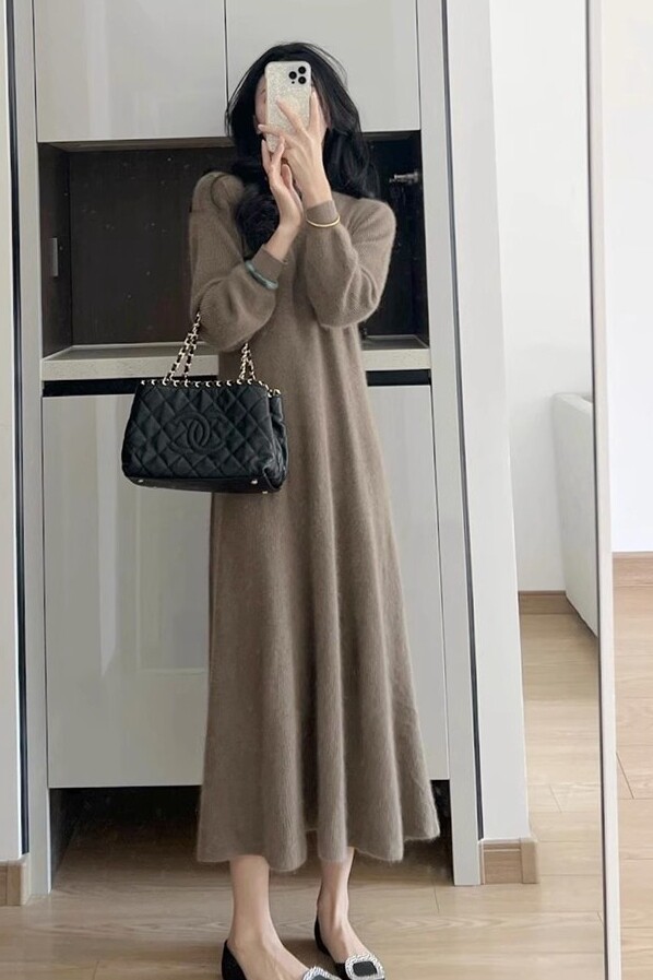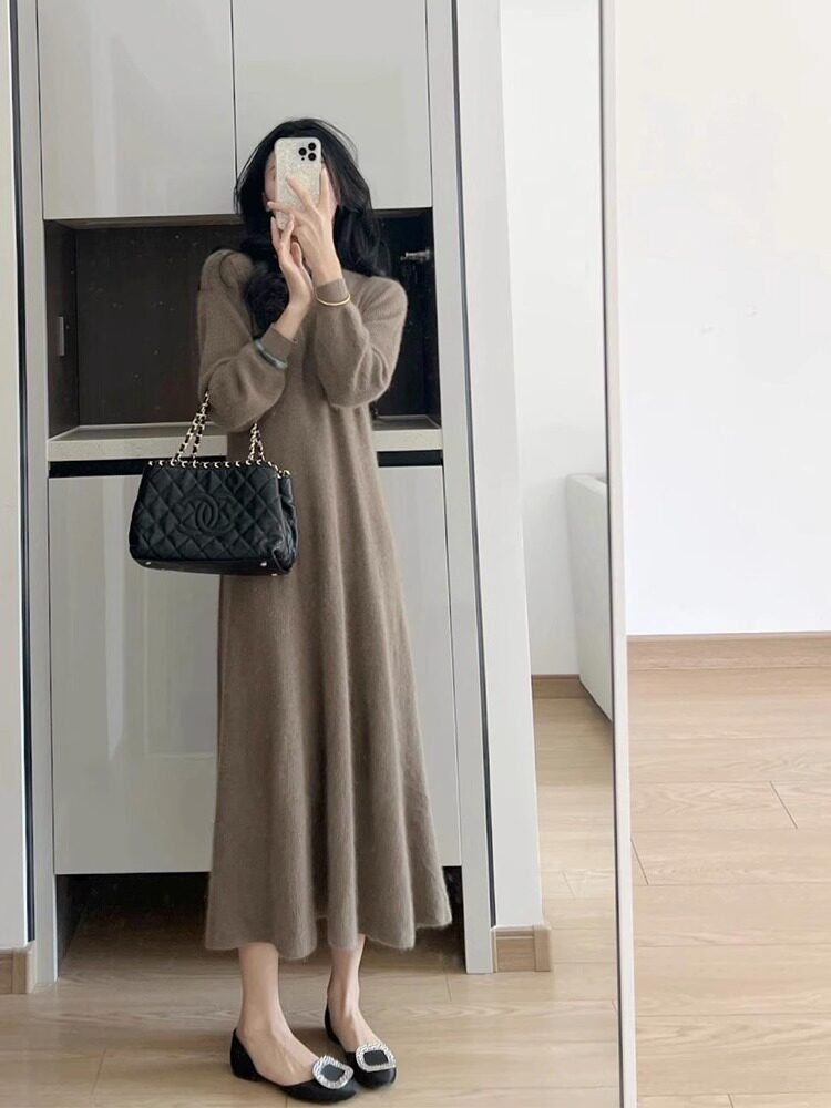 Базовая трикотажная демисезонная юбка, длинный свитер, платье, французский стиль, изысканный стиль, оверсайз, свободный крой