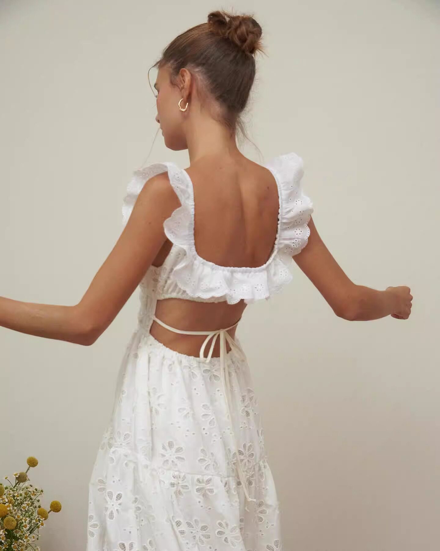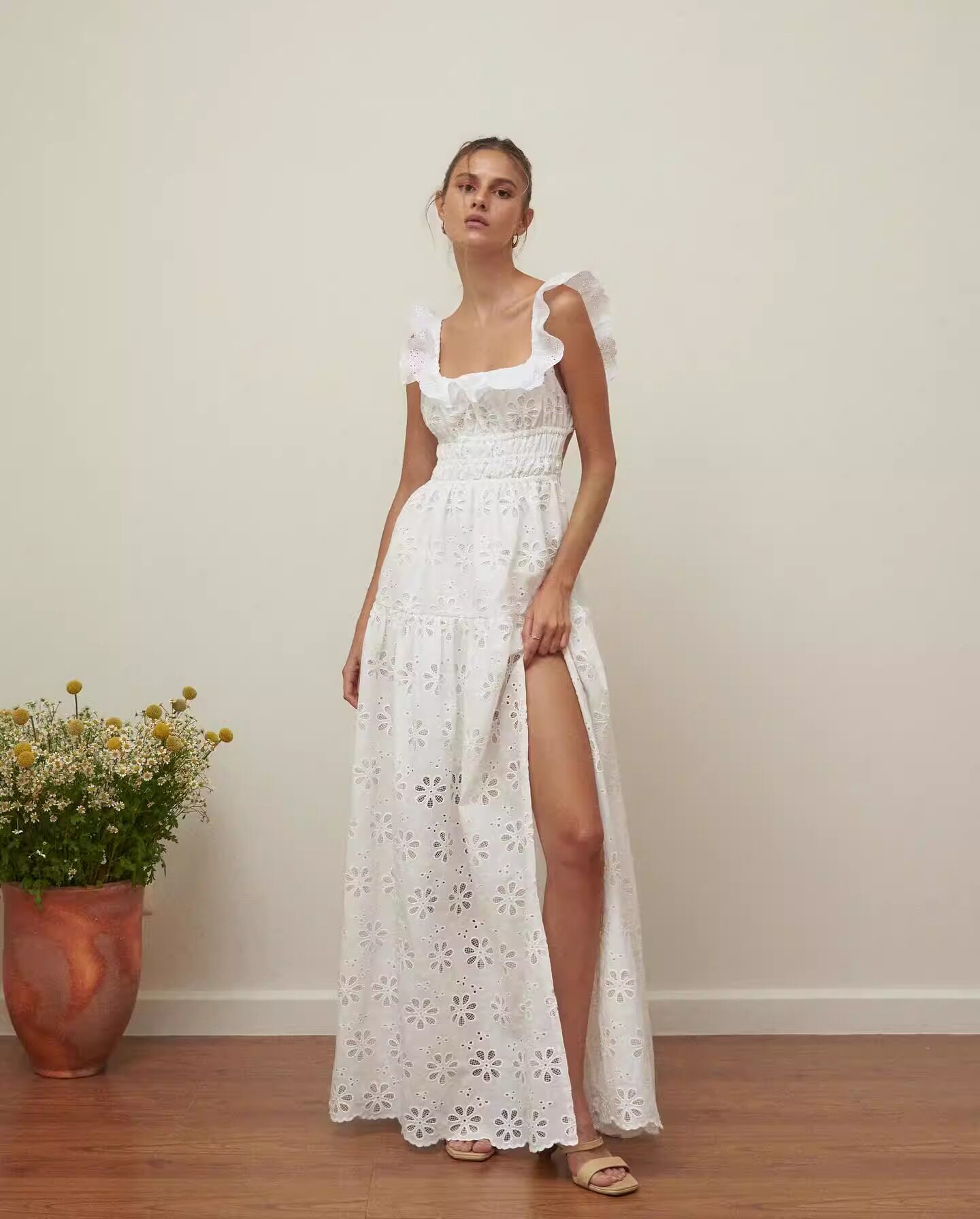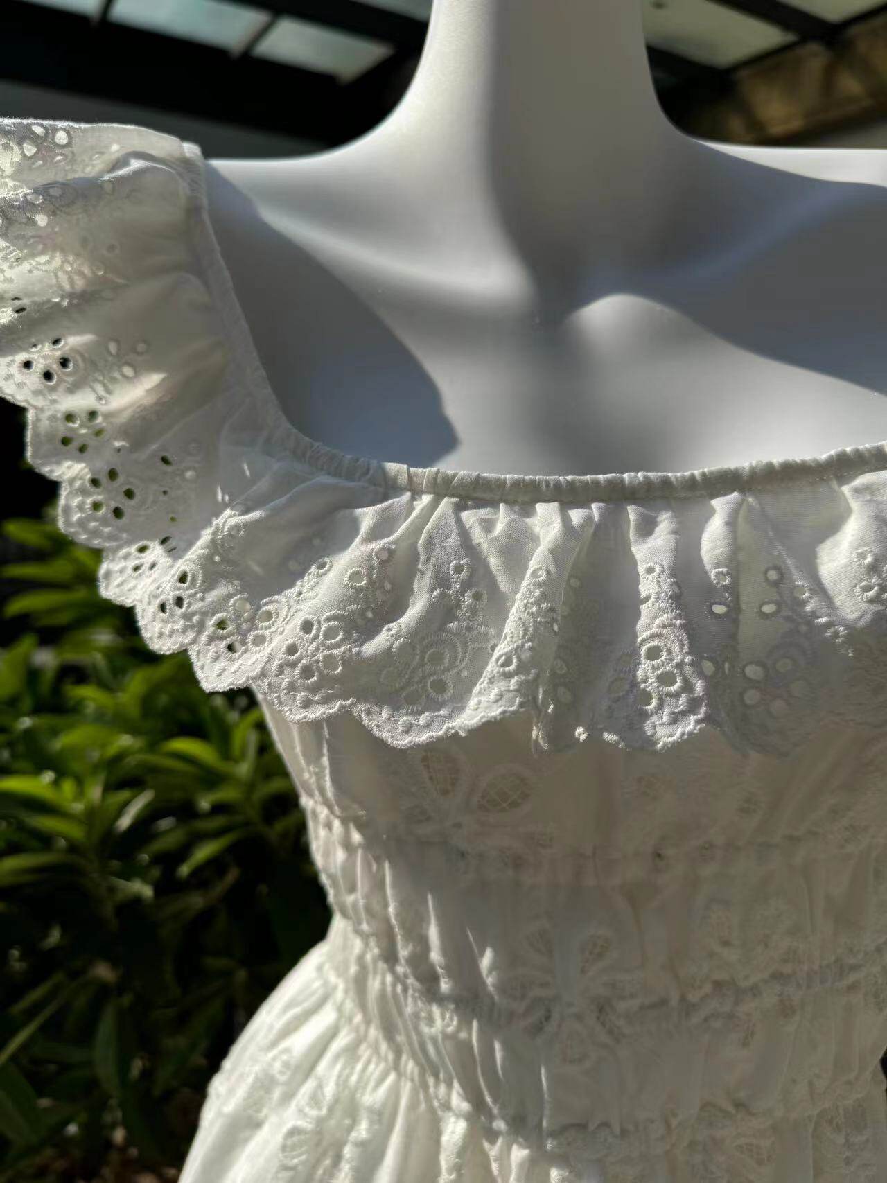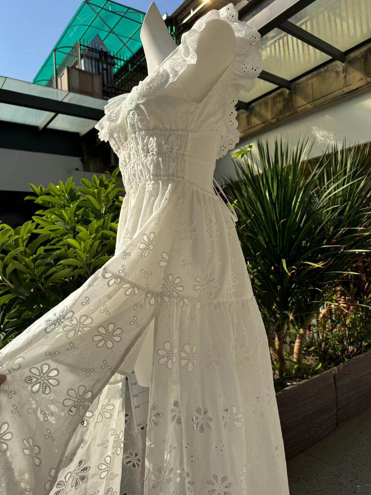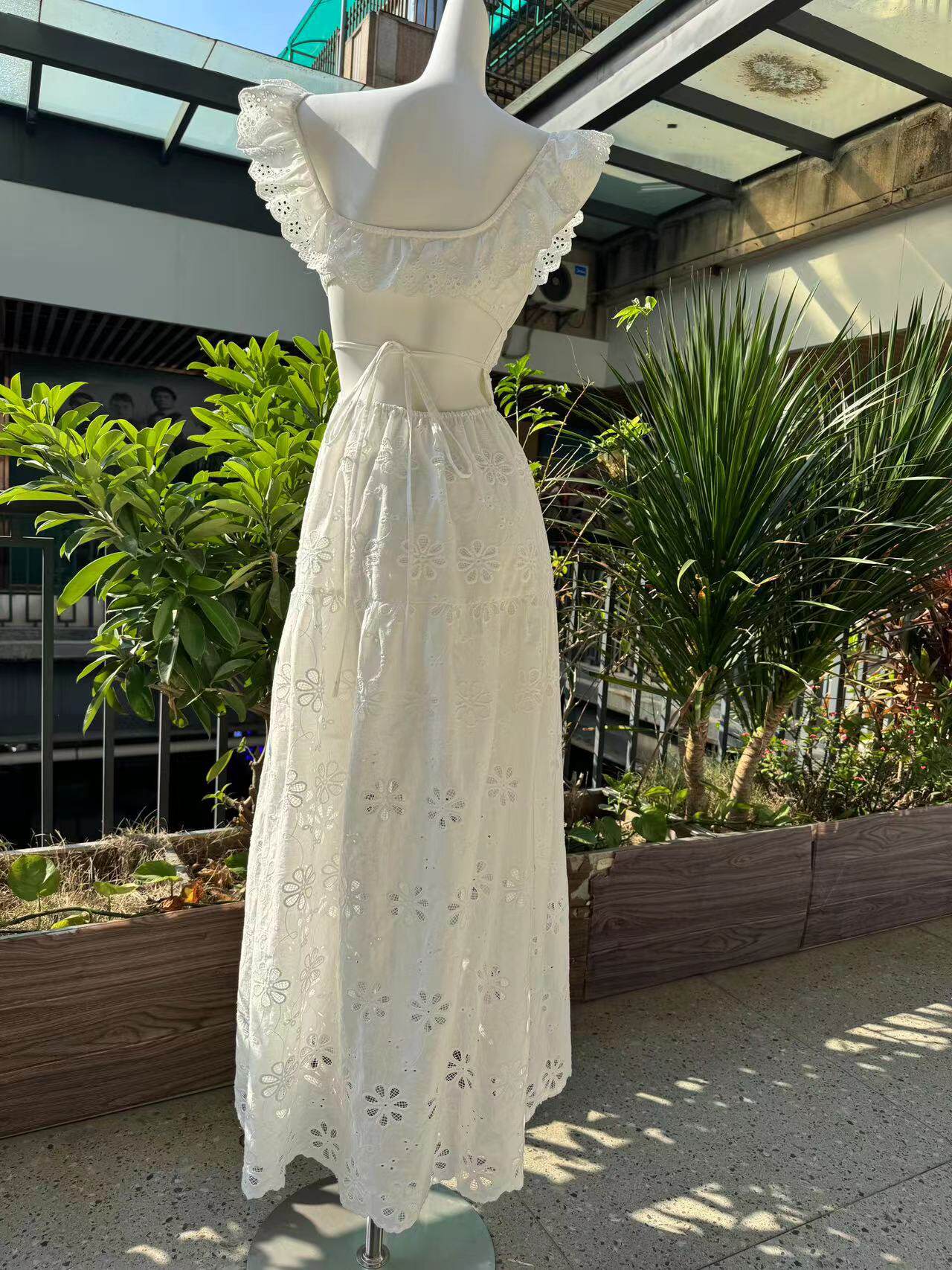 Кружевное платье, длинная юбка, Таиланд, квадратный вырез, с вышивкой, французский стиль, с открытой спиной