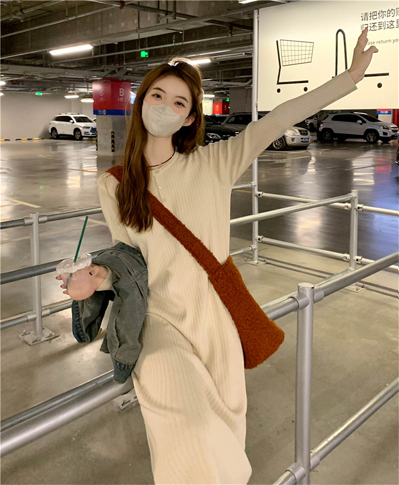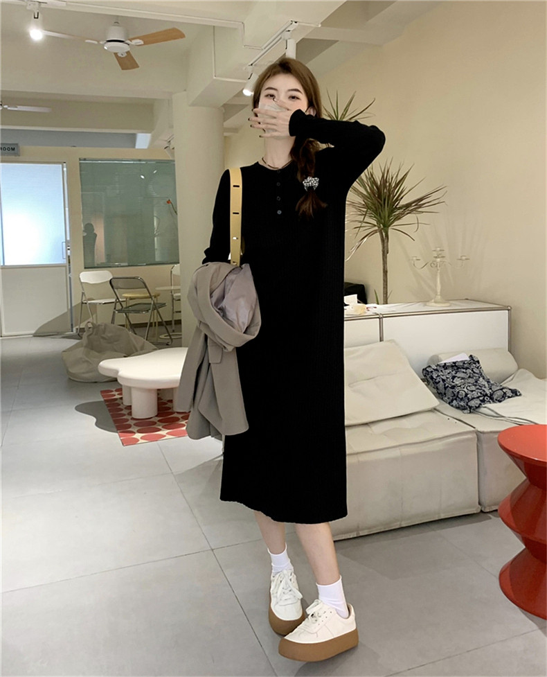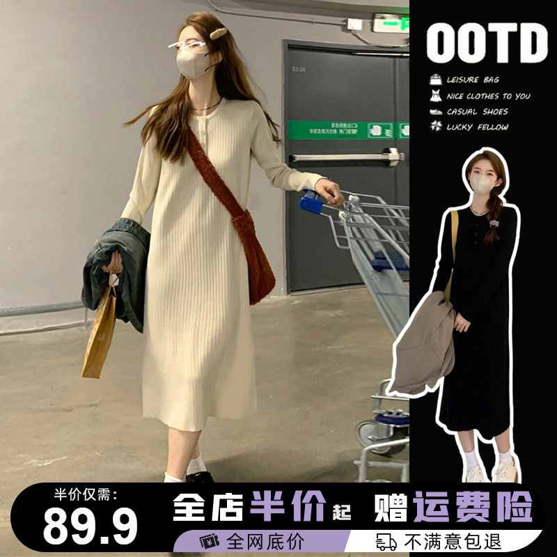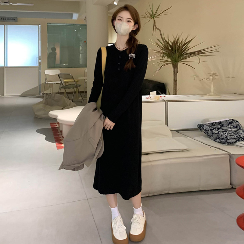 Демисезонное трикотажное трикотажное платье, свитер, длинная юбка, коллекция 2023, городской стиль, подходит для подростков