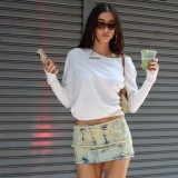 Лонгслив, джинсовая юбка, сумка, с сертификатом GIA