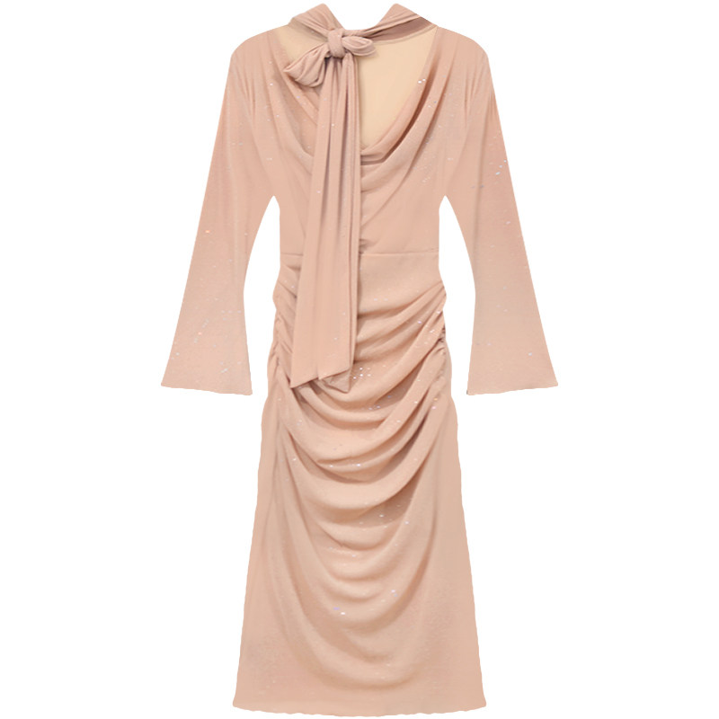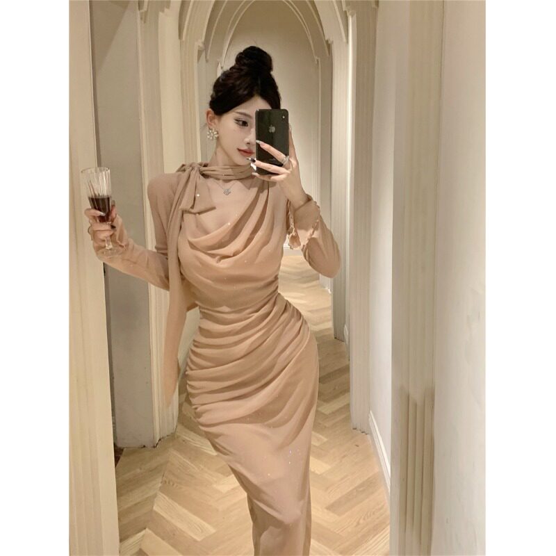 Платье, базовая приталенная длинная юбка, изысканный стиль, французский стиль, яркий броский стиль