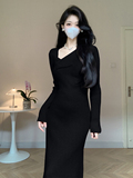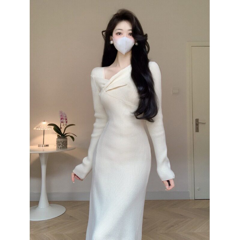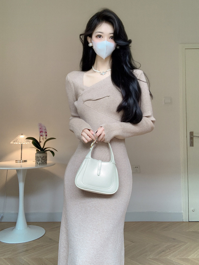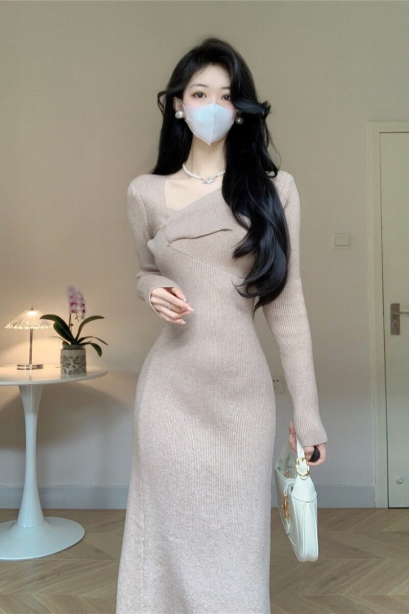Трикотажный приталенный свитер, весеннее платье, французский стиль