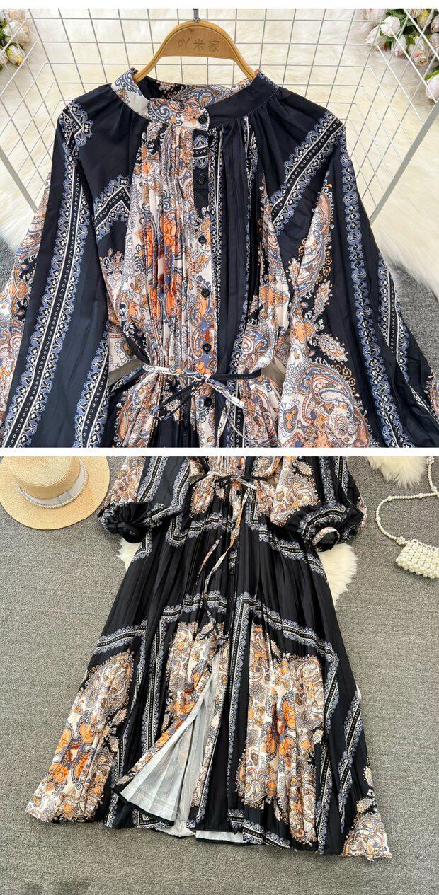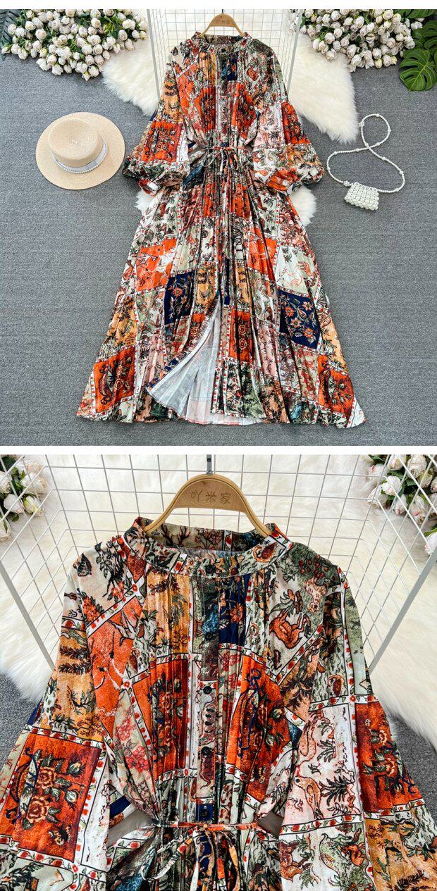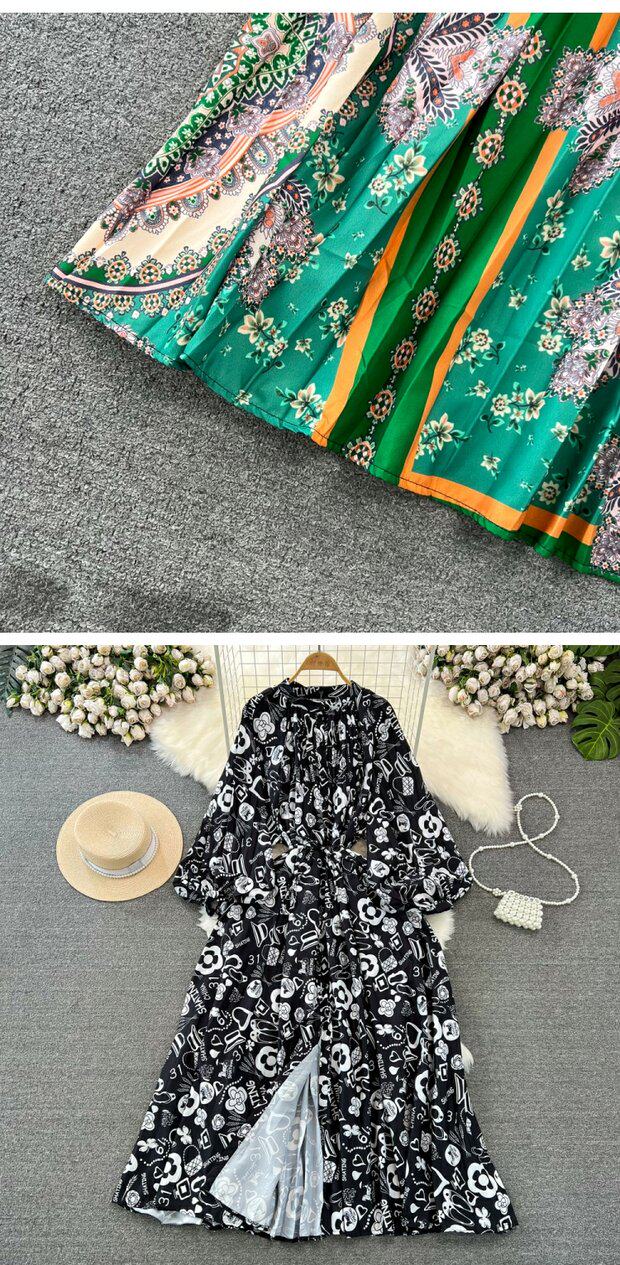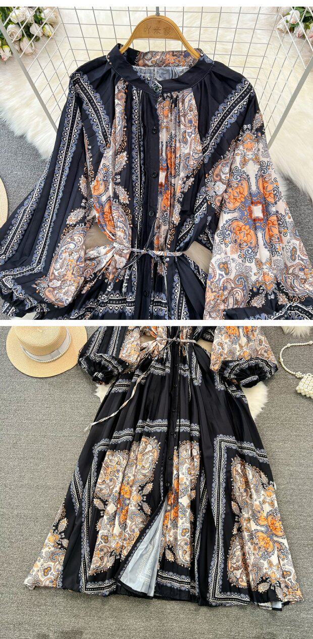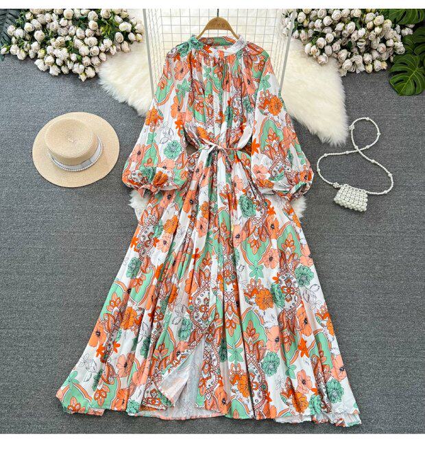 Лампа, фонарь, лонгслив с круглым воротником, платье, А-силуэт, в цветочек