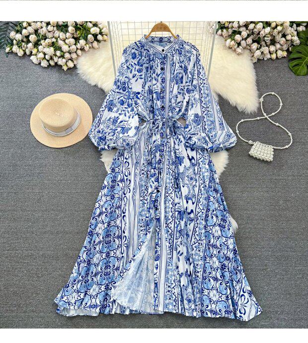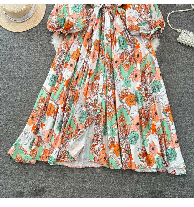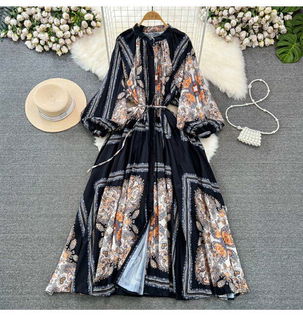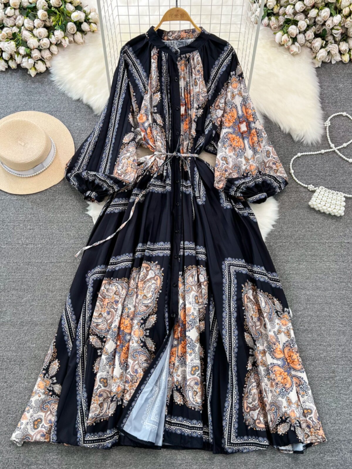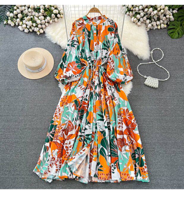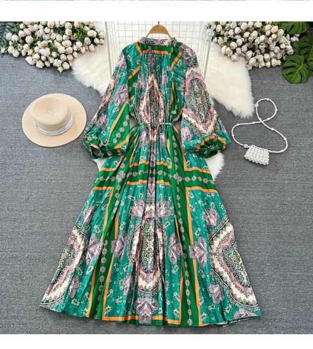 Лампа, фонарь, лонгслив с круглым воротником, платье, А-силуэт, в цветочек