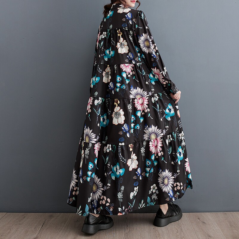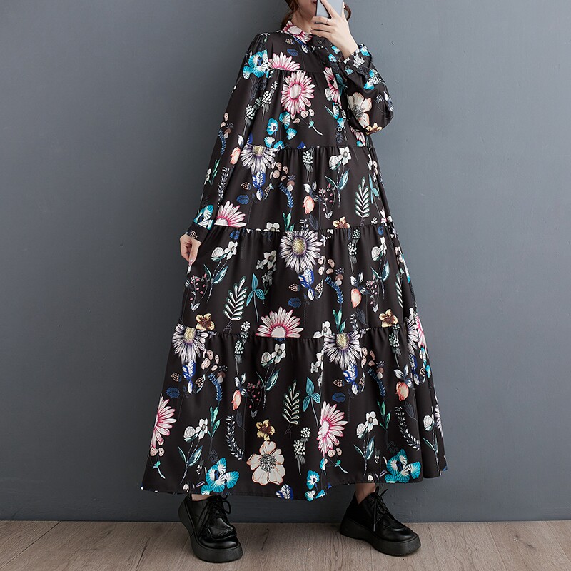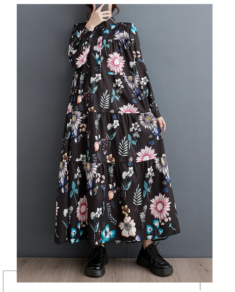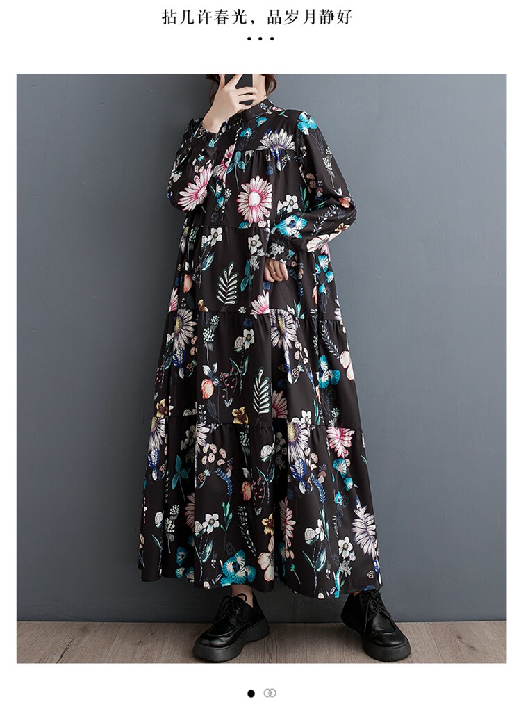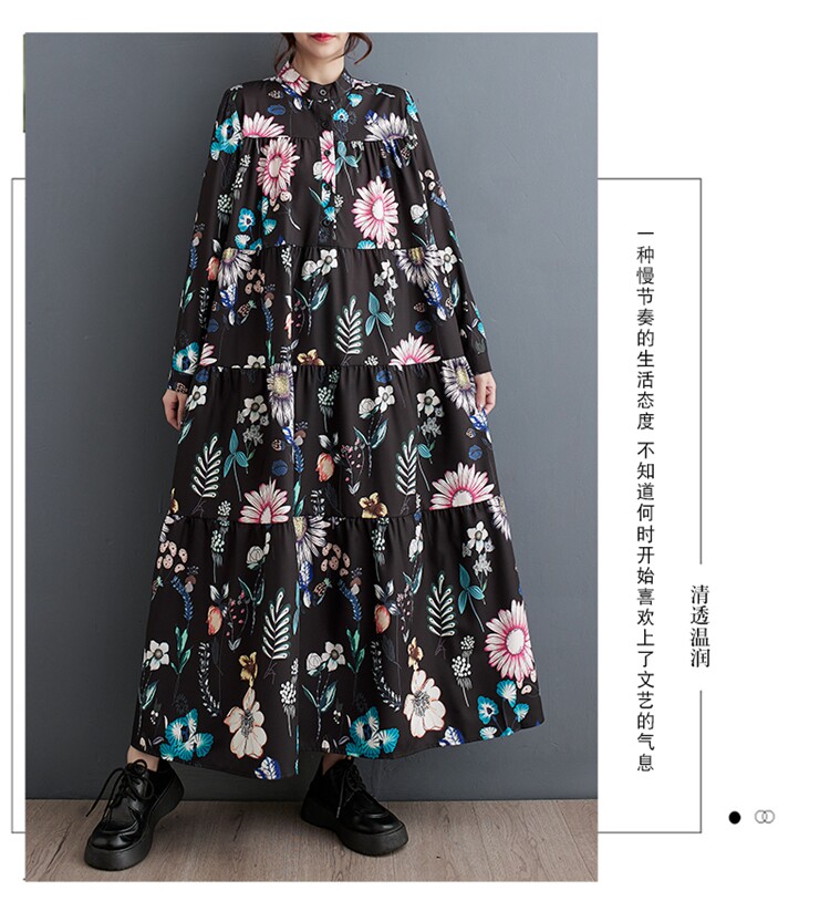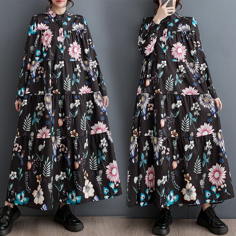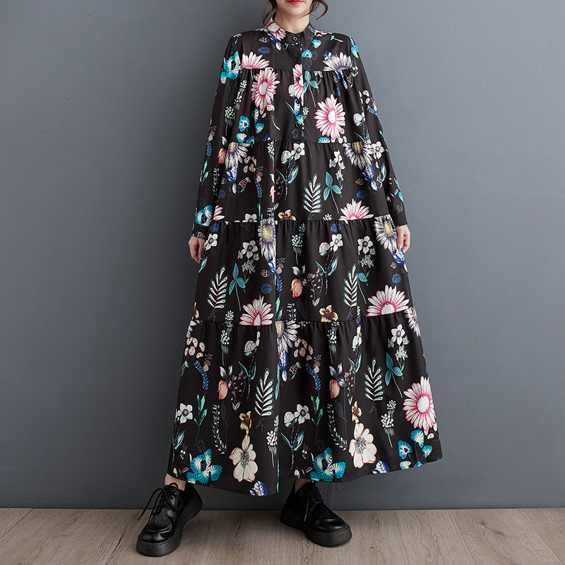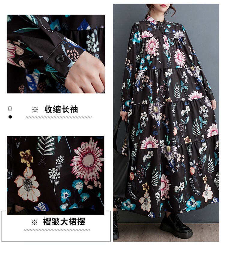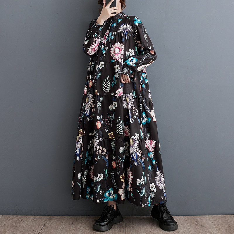 Осенний модный лонгслив, длинное платье, большой размер, в корейском стиле, свободный крой, средней длины