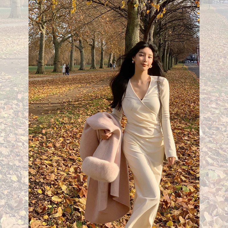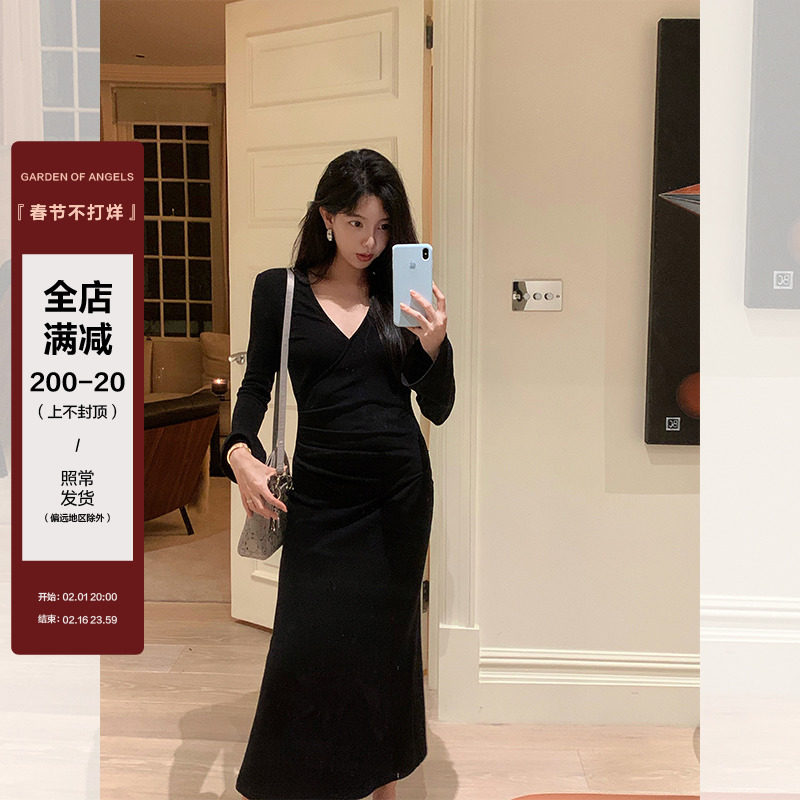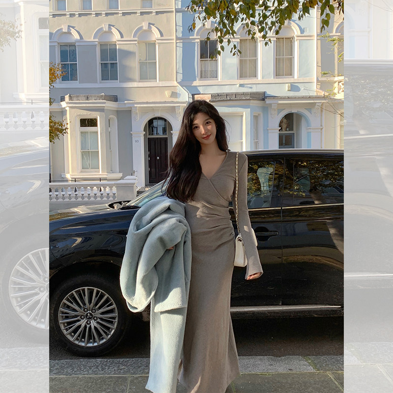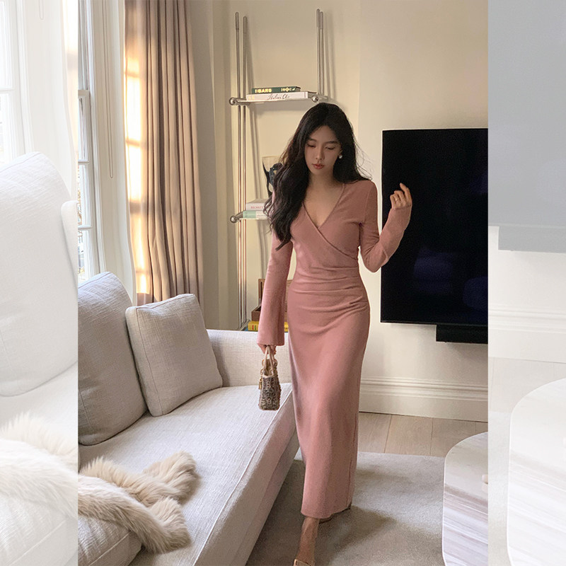 Бархатное трикотажное трикотажное платье, дизайнерская длинная юбка, французский стиль, облегающий крой, тренд сезона