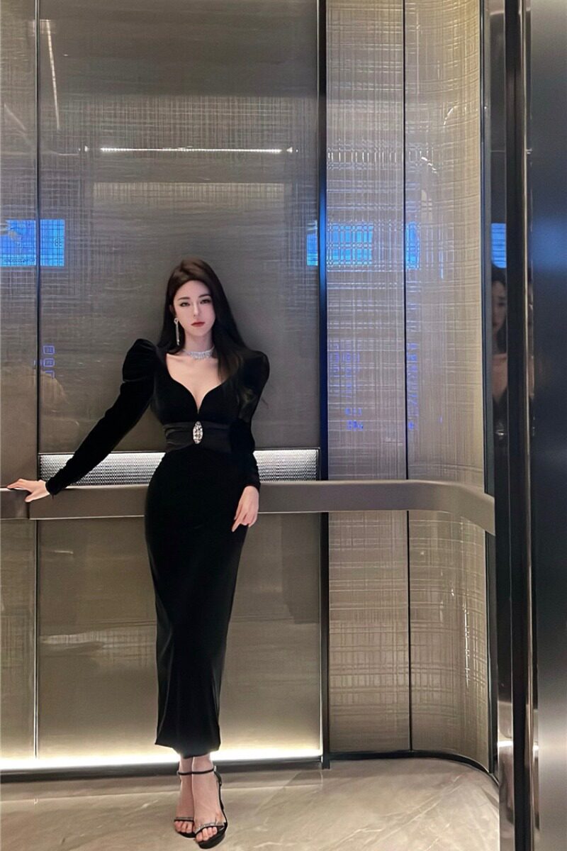 Демисезонное платье, приталенный лонгслив, длинная юбка, изысканный стиль