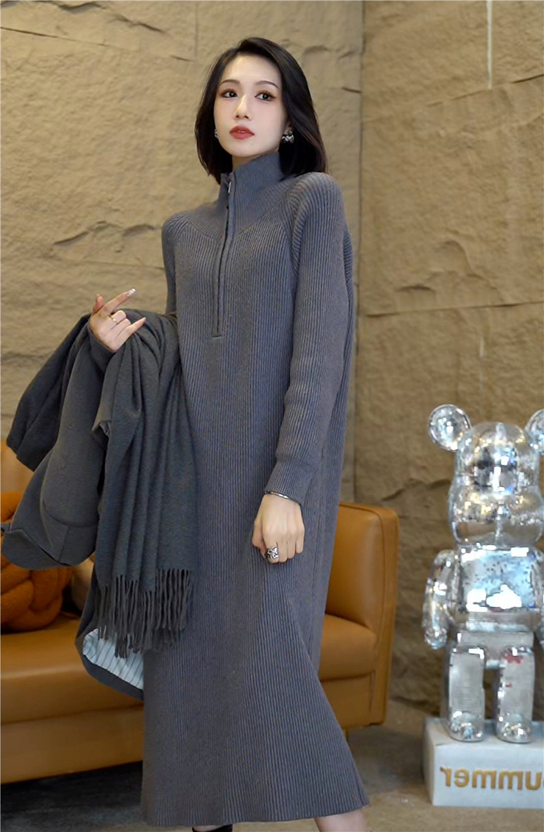 Длинное трикотажное демисезонное платье, средней длины, изысканный стиль