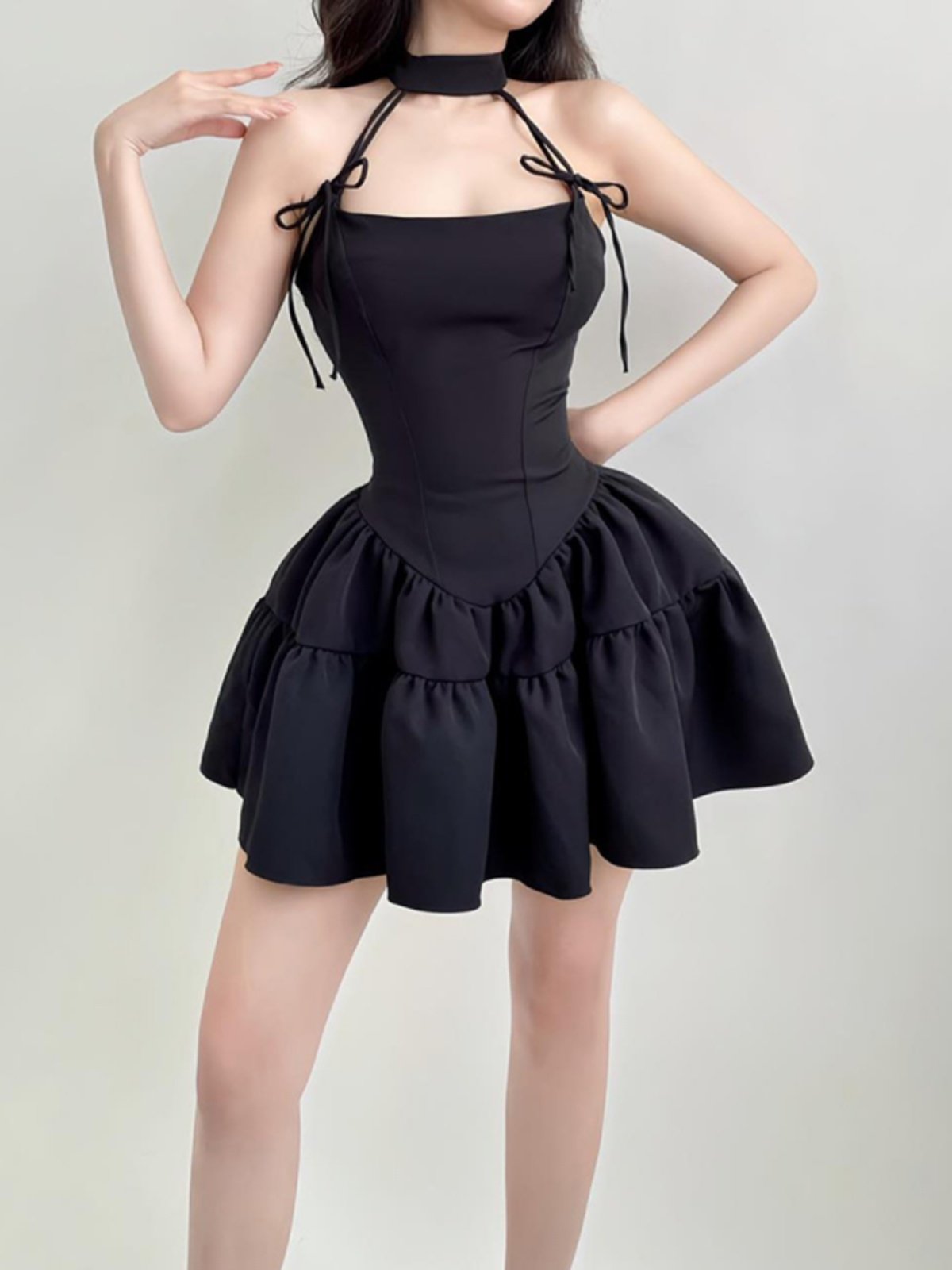 Приталенный корсет с бантиком, модная мини-юбка, А-силуэт, изысканный стиль