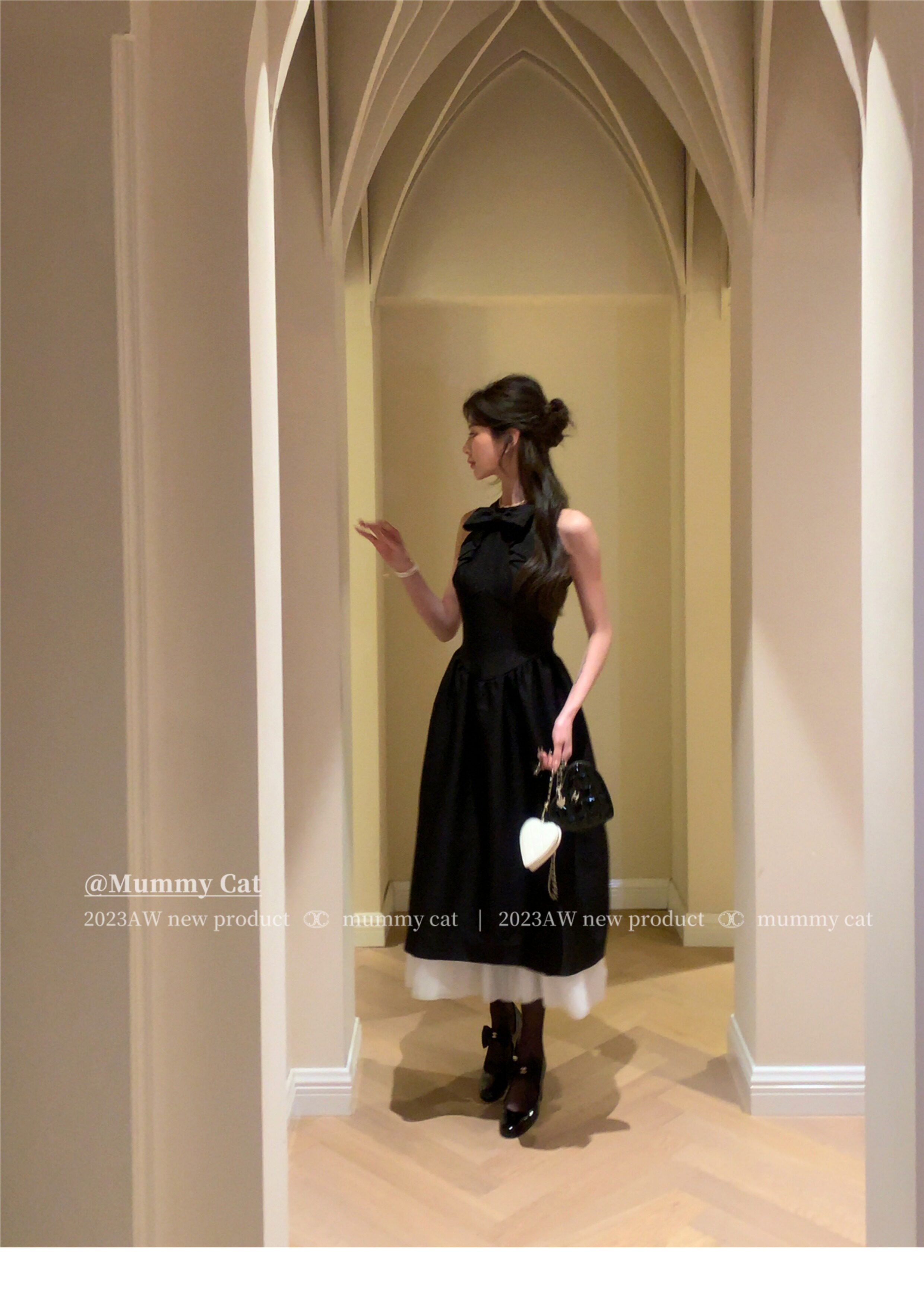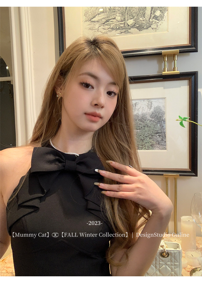 Изысканное длинное вечернее платье с бантиком без рукавов