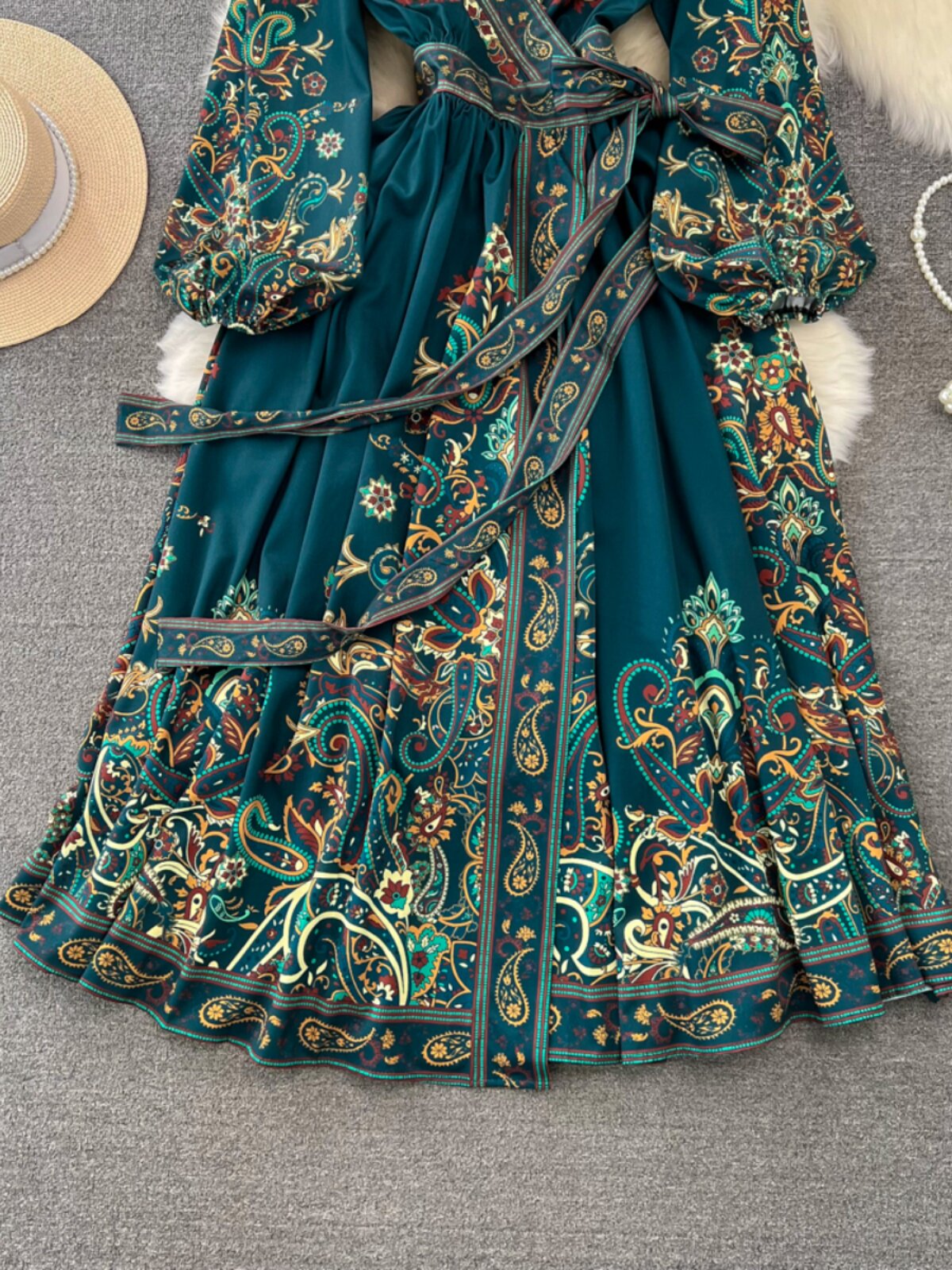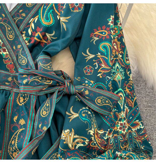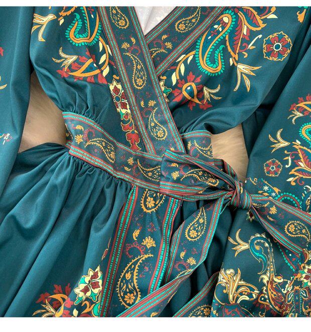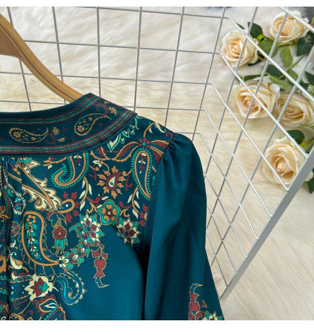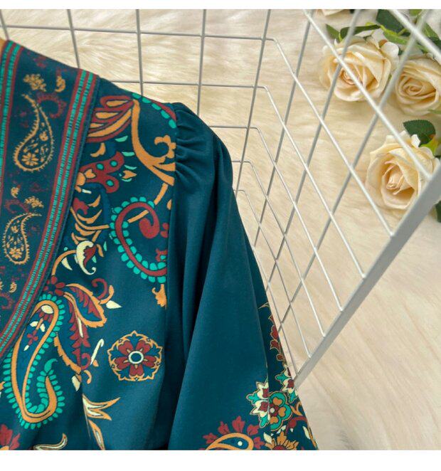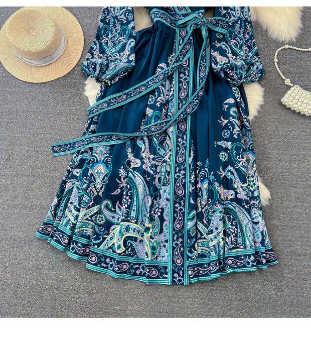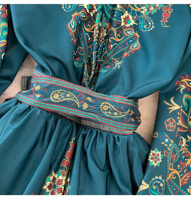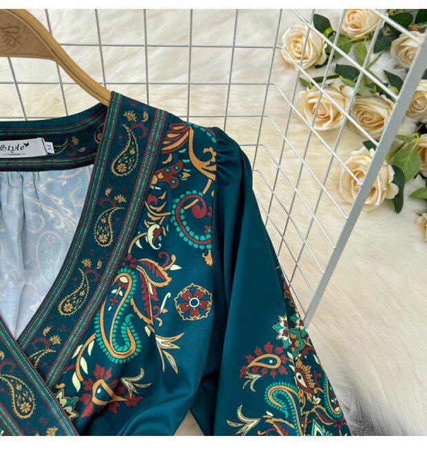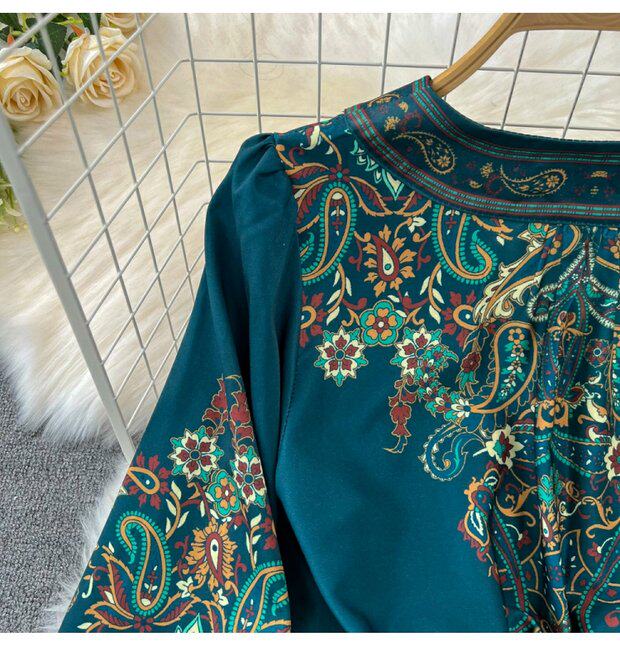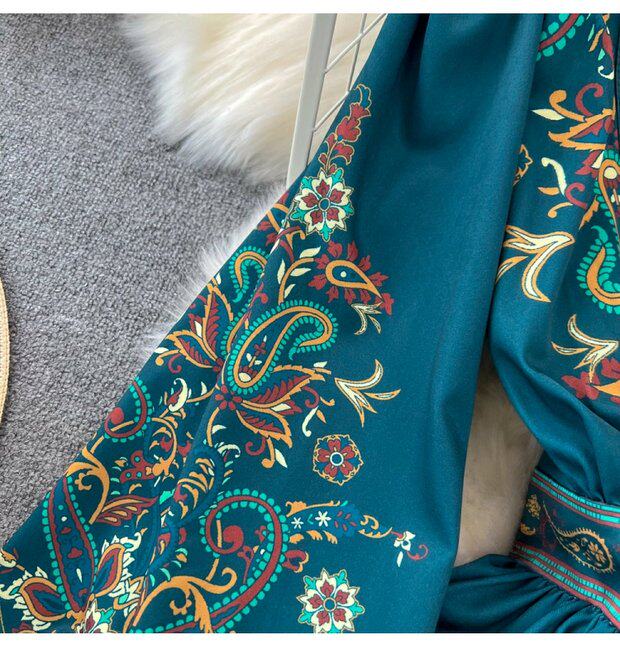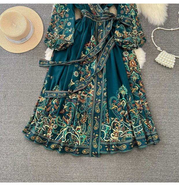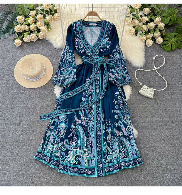 Фонарь, лонгслив, приталенный корсет, элегантное платье, длинная юбка, V-образный вырез, А-силуэт, в цветочек