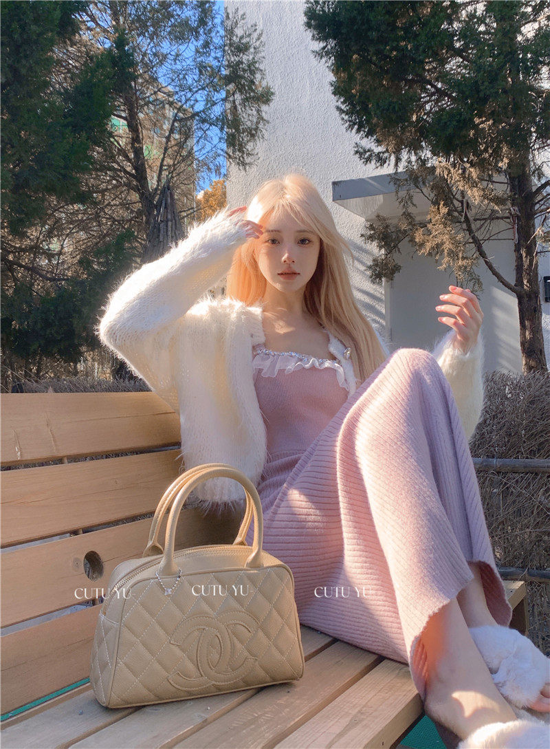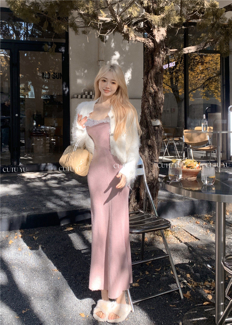 Сексуальная майка, бюстгальтер-топ, длинная юбка, шерстяное платье, с акцентом на бедрах