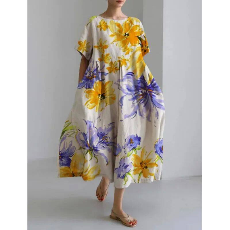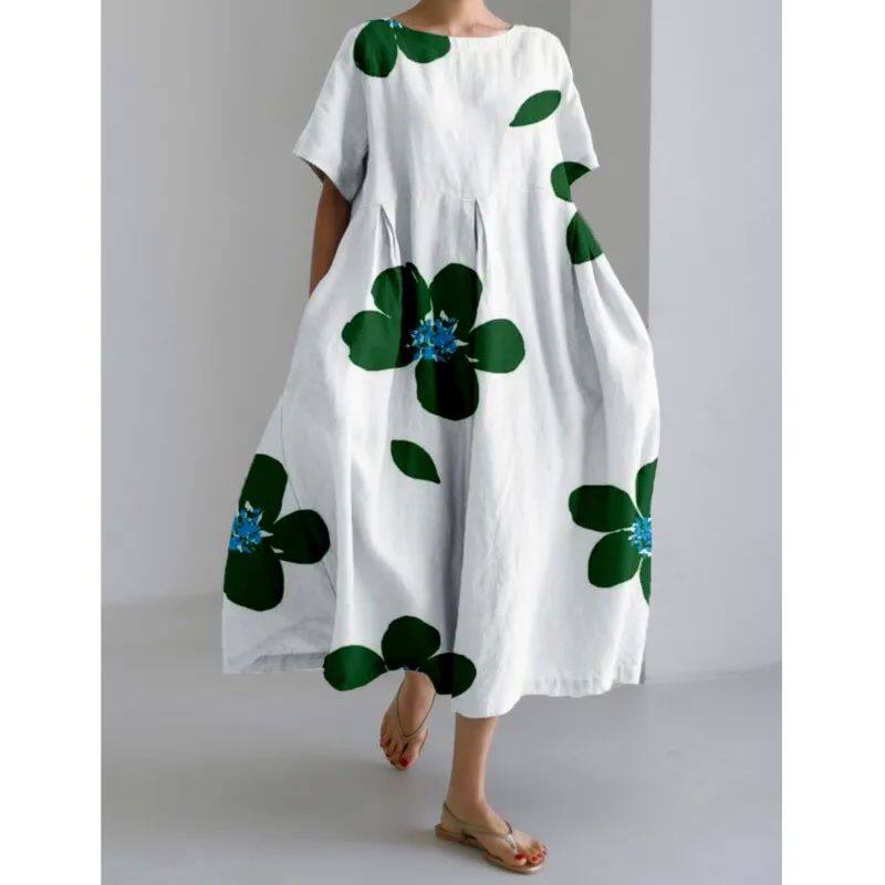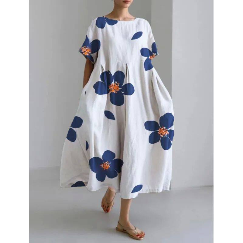Мода Lady Lady с коротким рукавом Big Swing Loose Maxi платье Retro W
