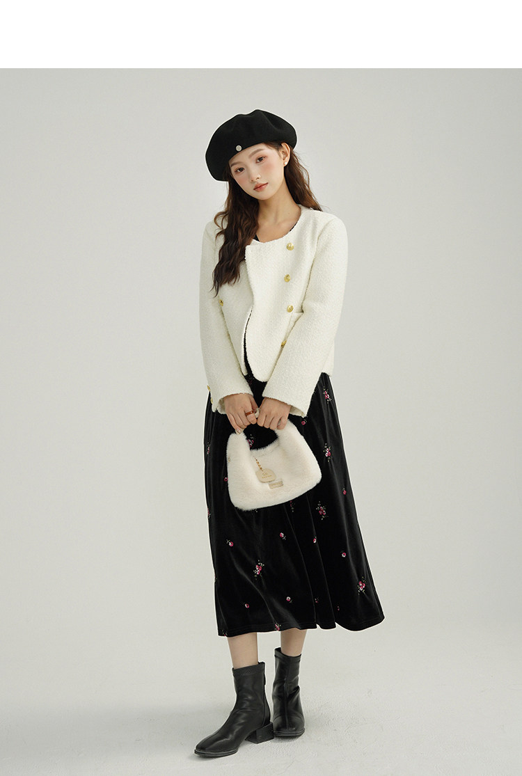 | Цвет: | Черная бархатная юбка, Белая стеганая куртка |