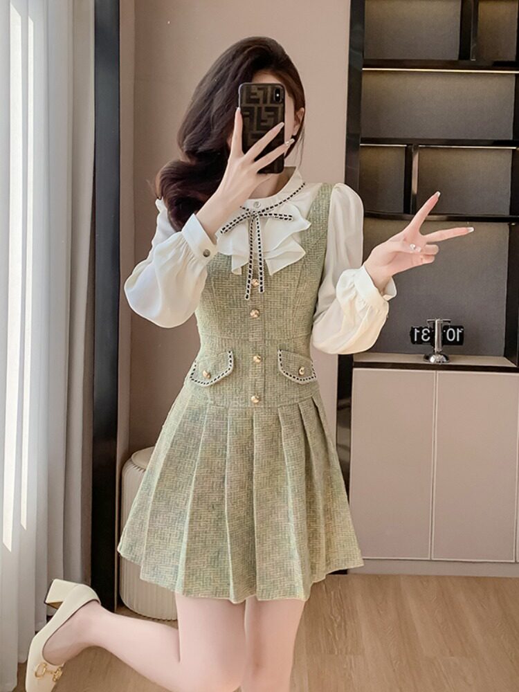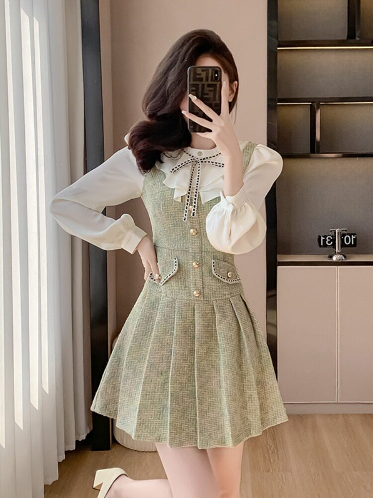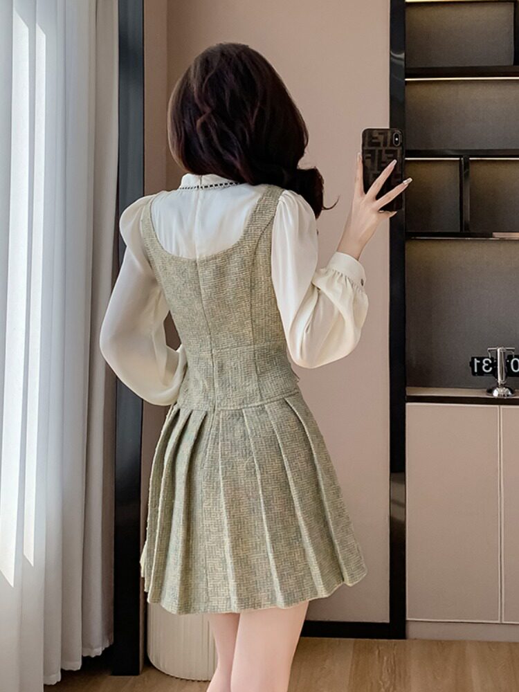 Комплект, весеннее платье, дизайнерская юбка в складку, французский стиль, в стиле Шанель, тренд сезона, премиум класс