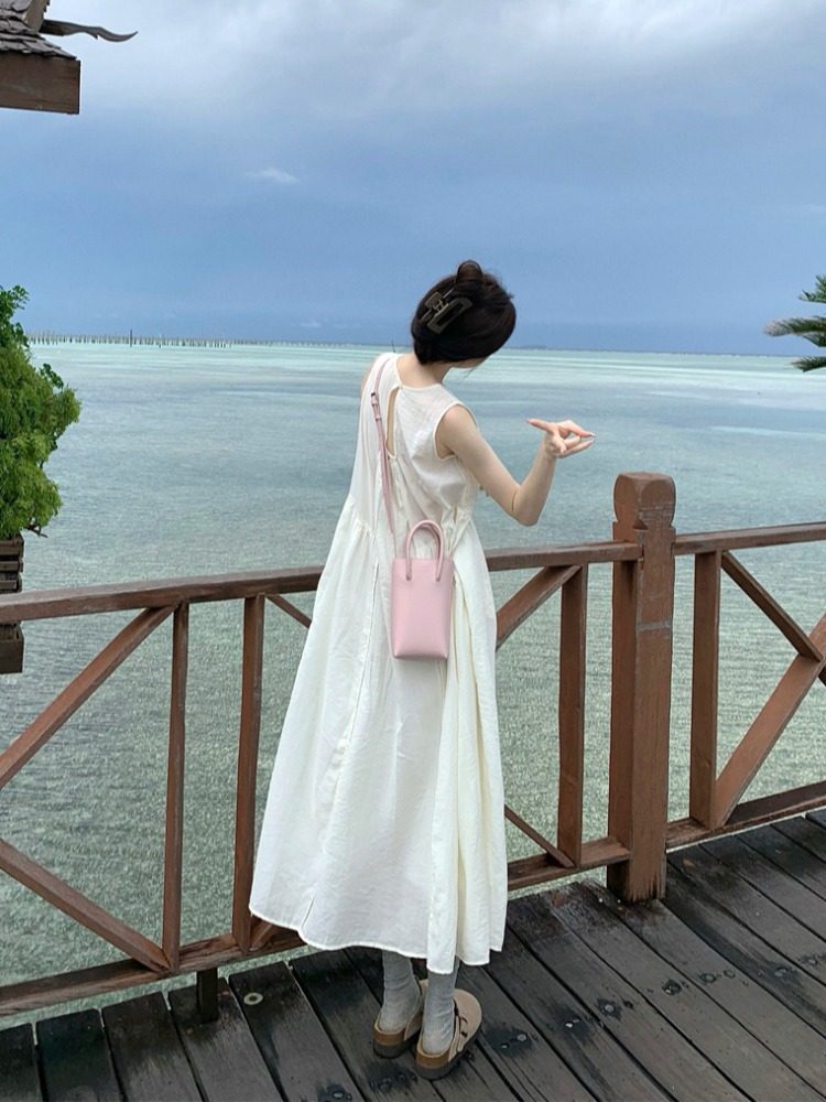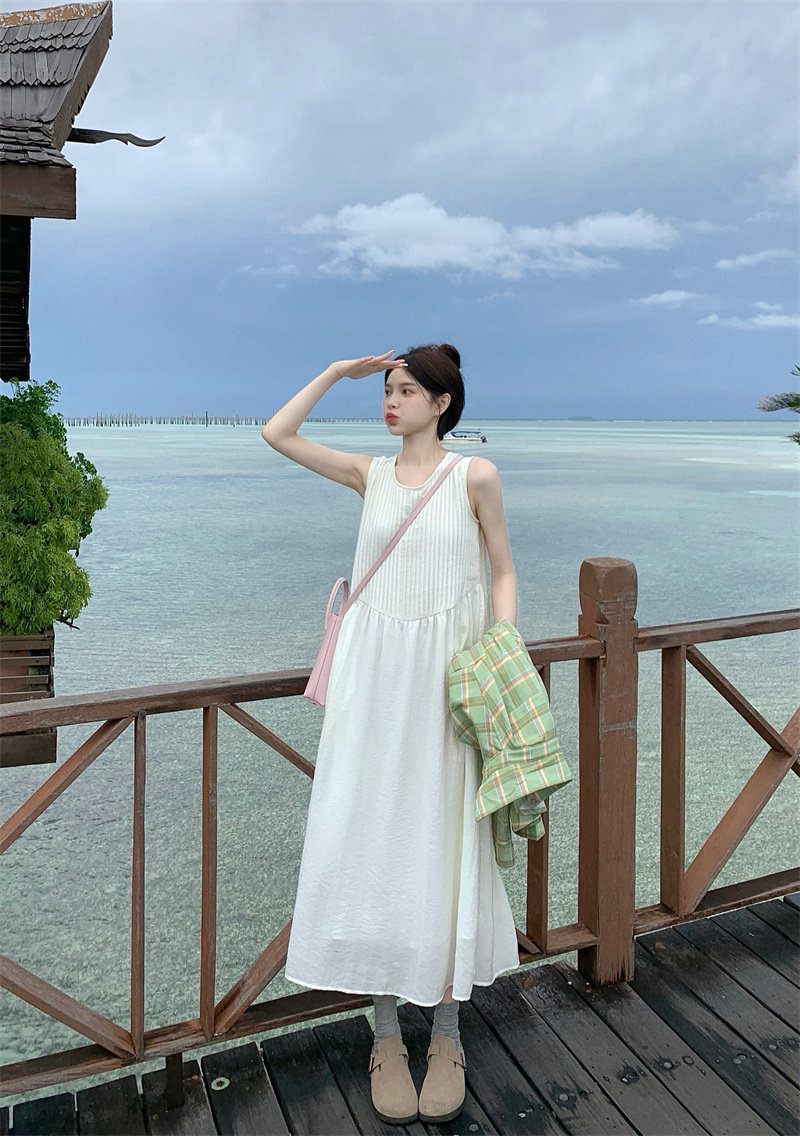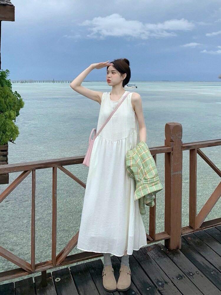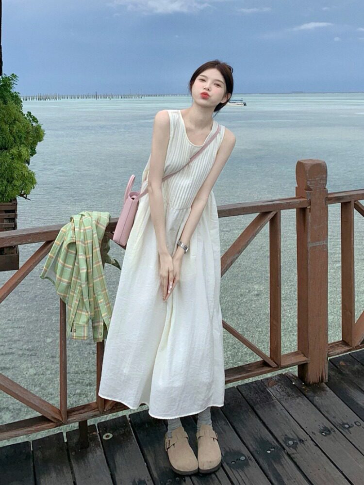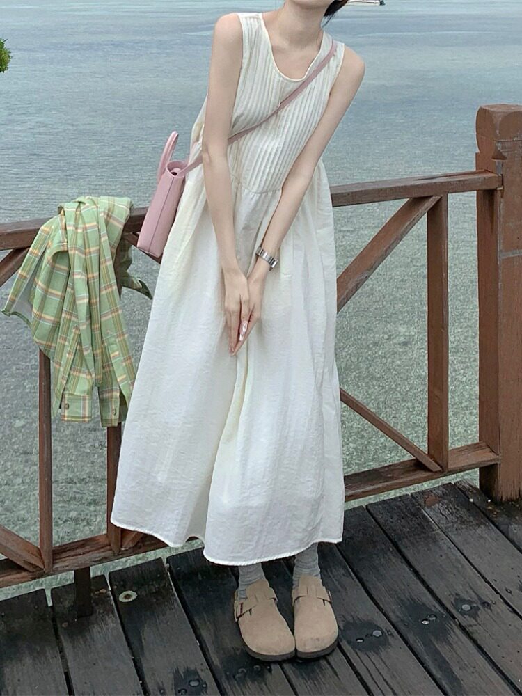 Платье с нежным ветром -курортным курортом самка 2024 Новая плиссированная вертикальная плита
