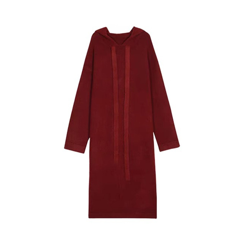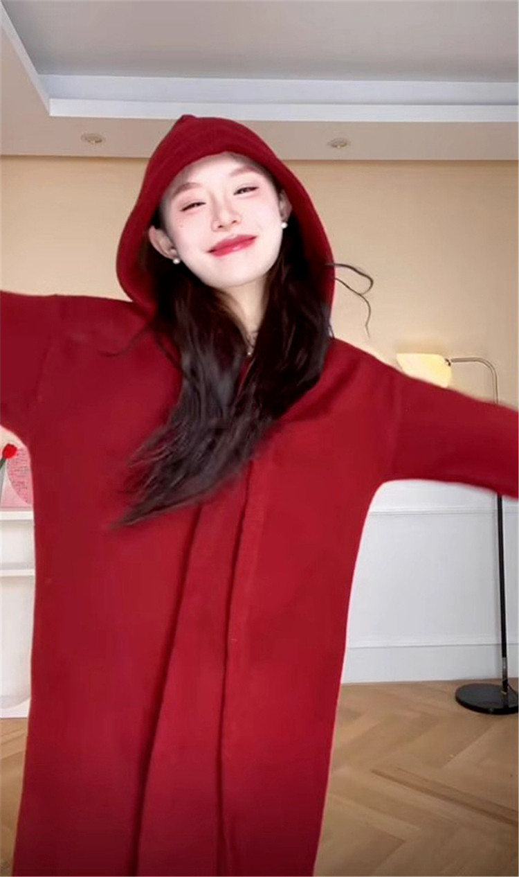 Летнее красное демисезонное платье с капюшоном, свитер, длинная юбка