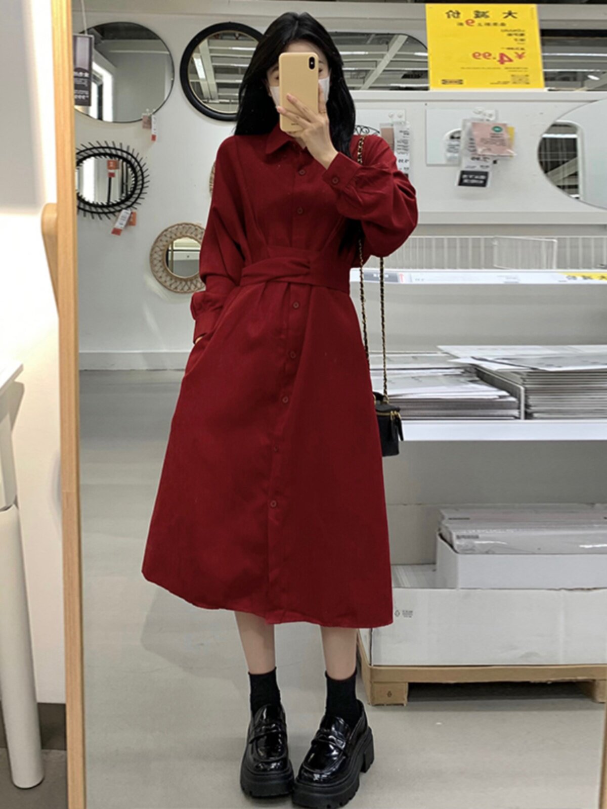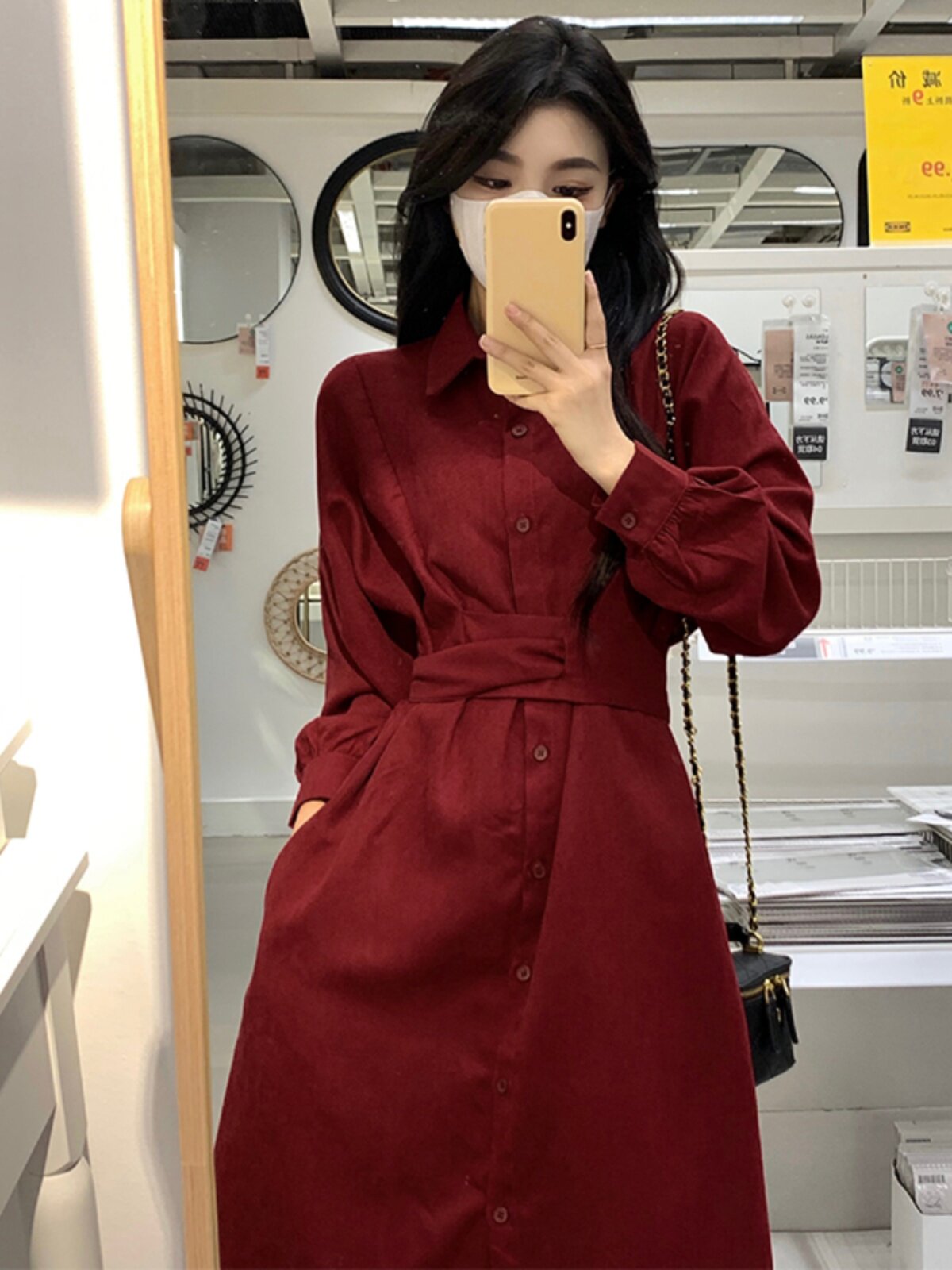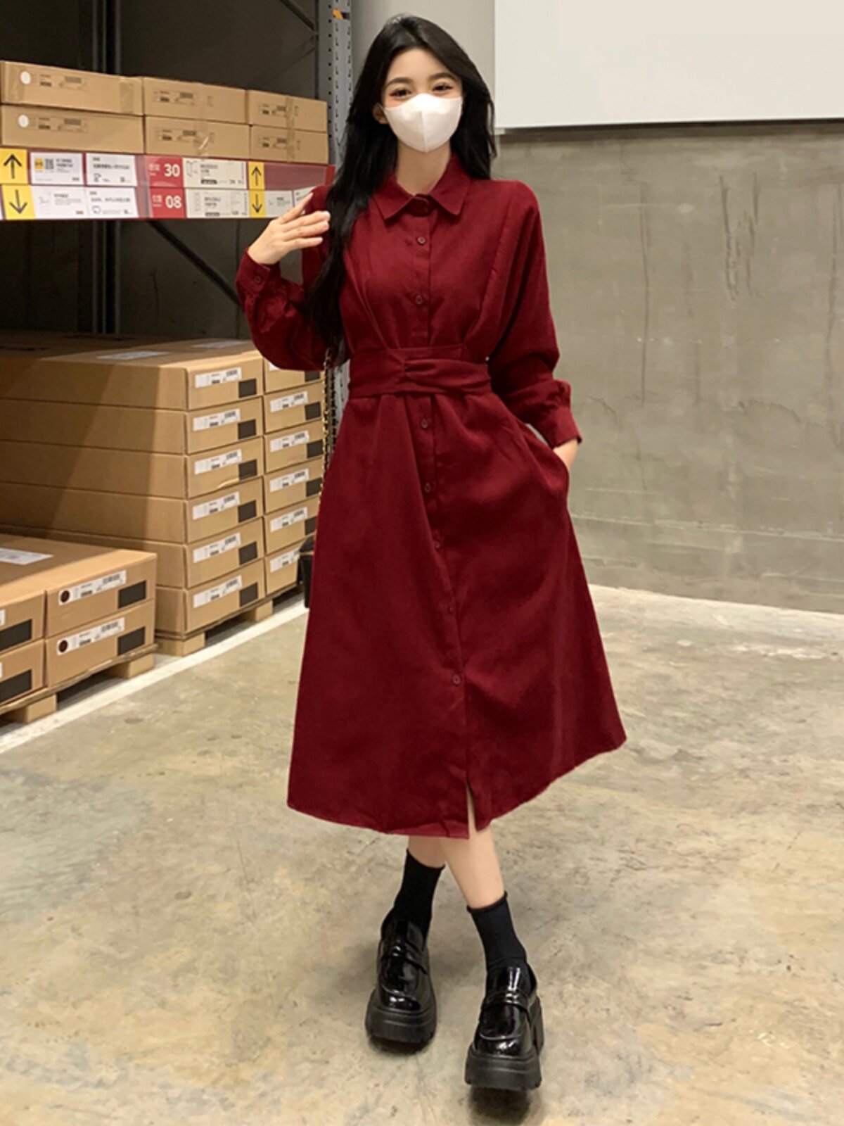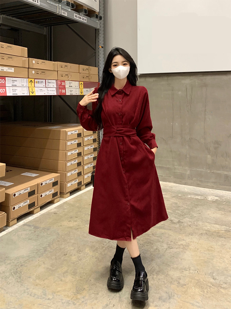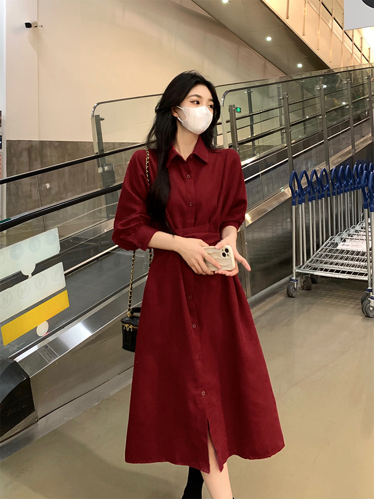 Красный приталенный корсет, осенняя рубашка, платье, длинная юбка, большой размер, французский стиль