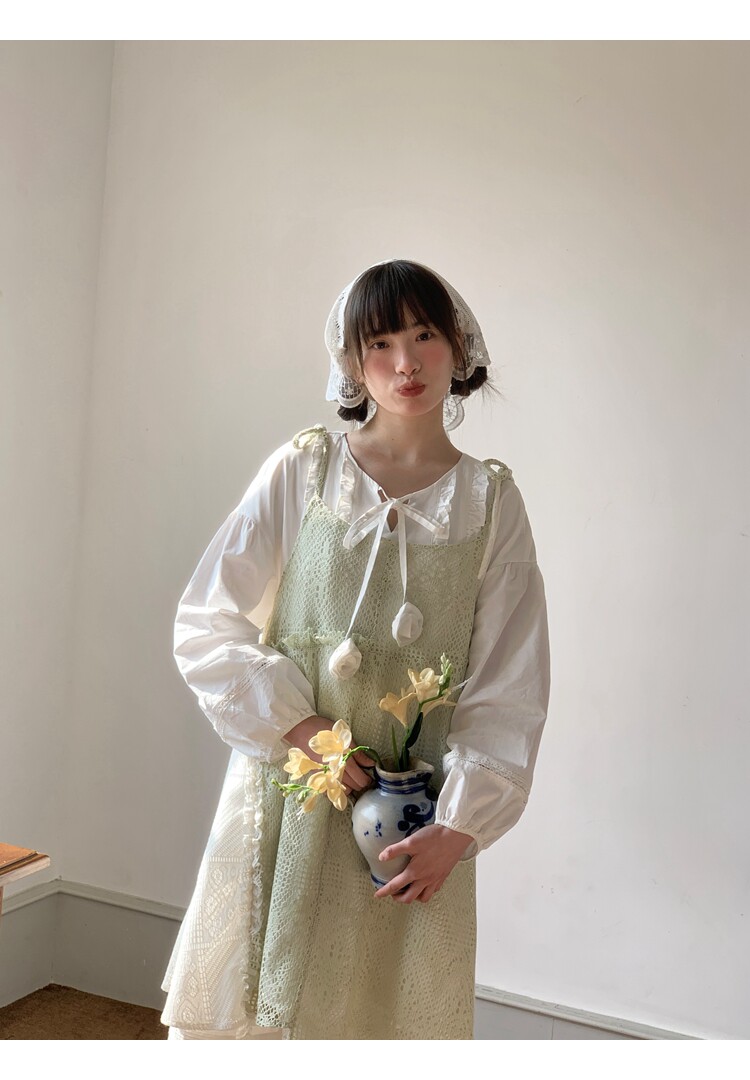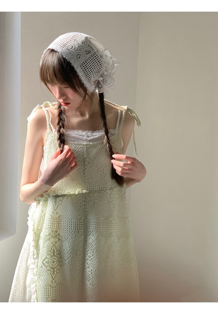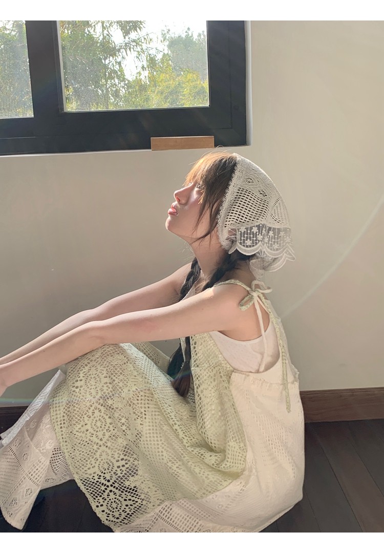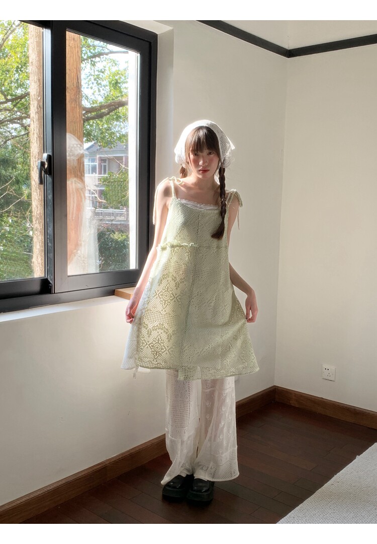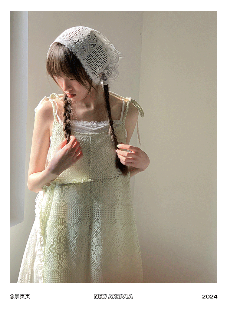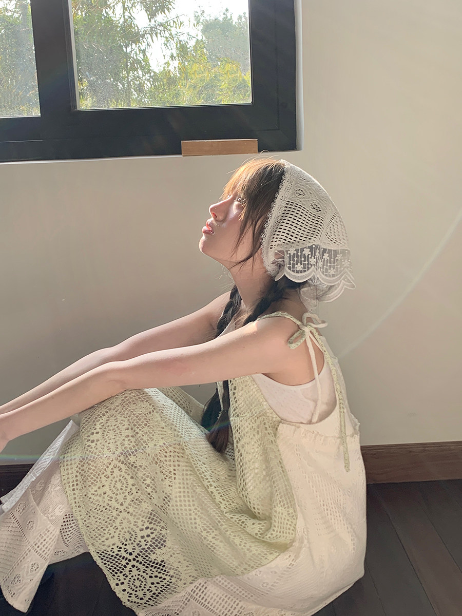 景页页 Оригинальное весенне-летнее платье молочно-зеленого цвета с двусторонним нишевым дизайном в стиле ретро и неправильной формы на подтяжках.