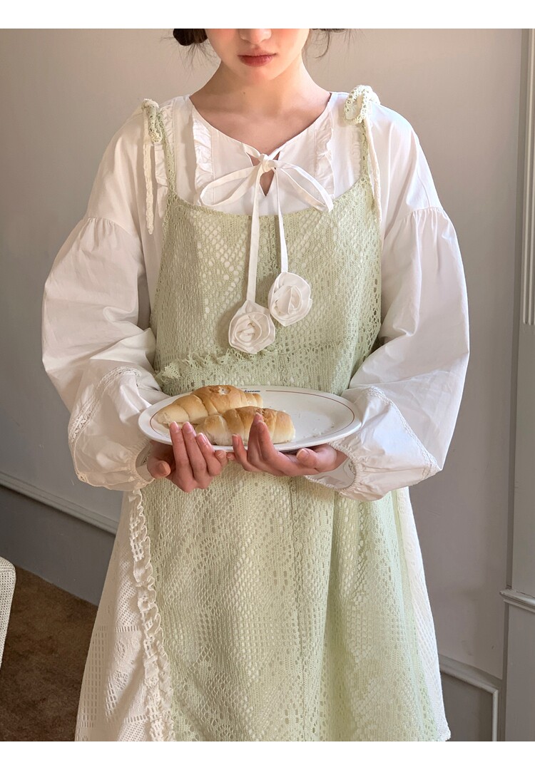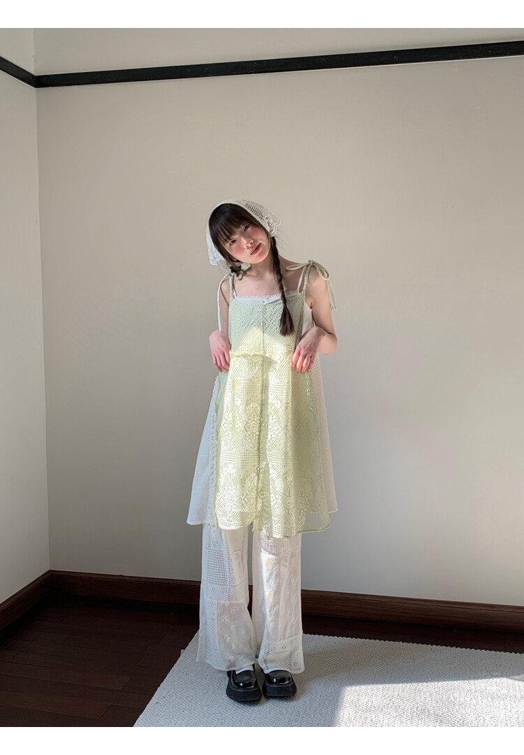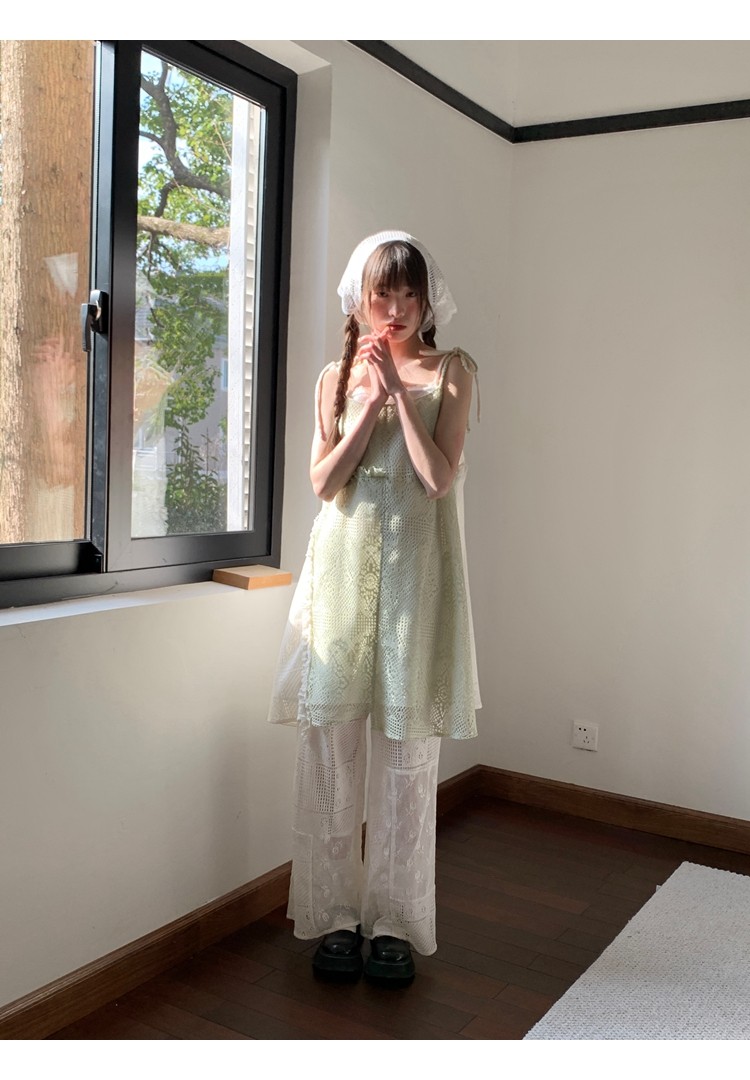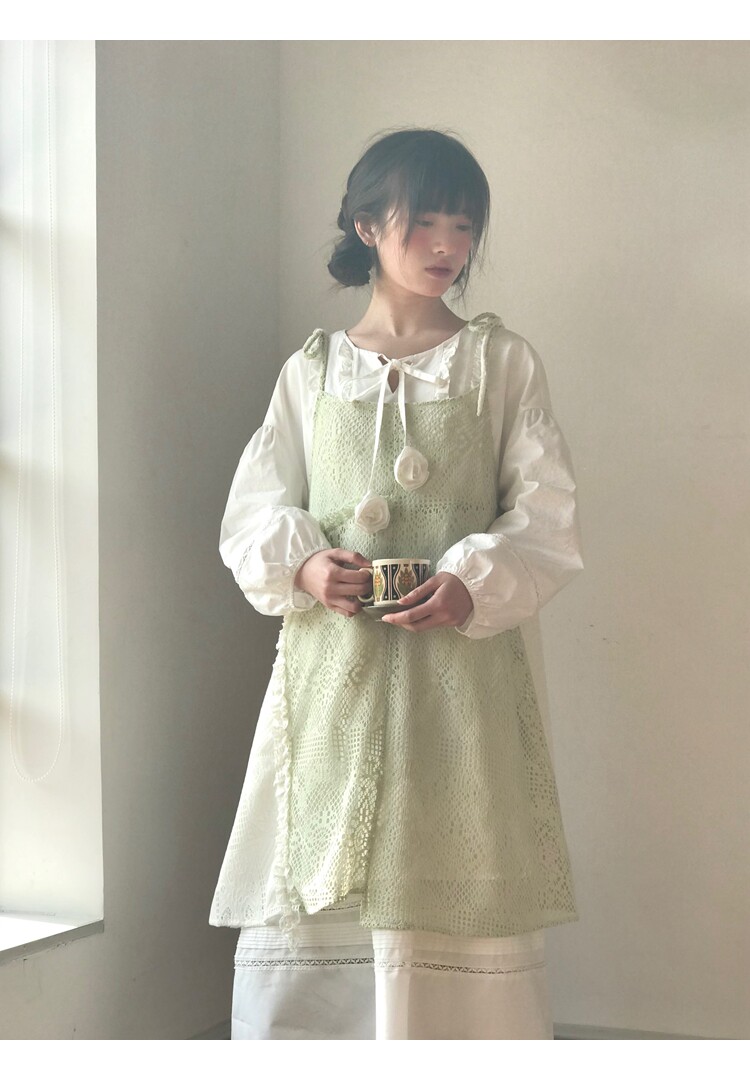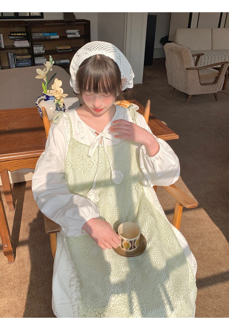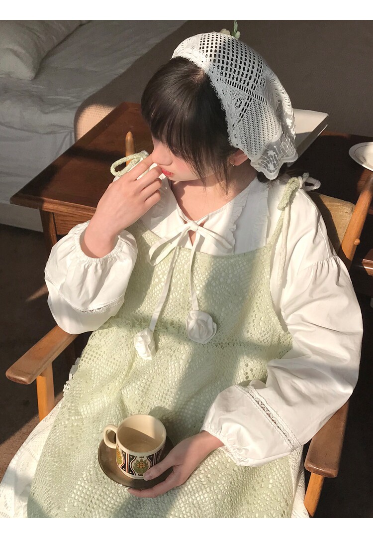 景页页 Оригинальное весенне-летнее платье молочно-зеленого цвета с двусторонним нишевым дизайном в стиле ретро и неправильной формы на подтяжках.
