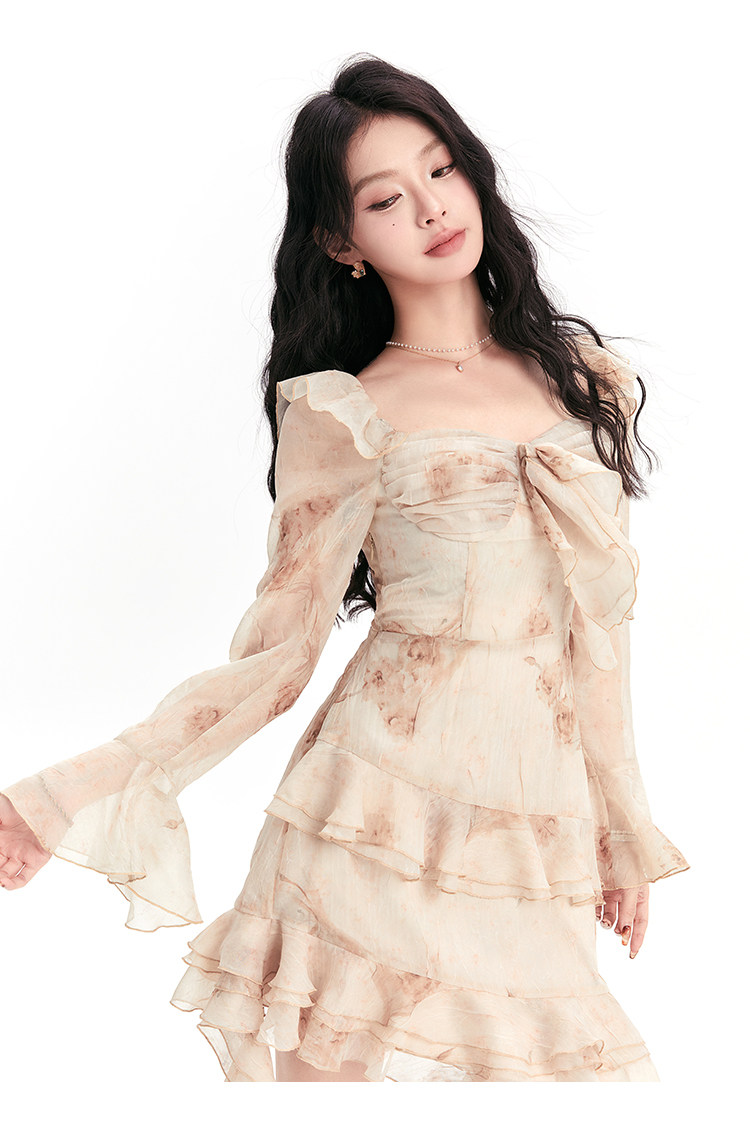 Осеннее платье, шифоновый наряд маленькой принцессы, юбка, в цветочек