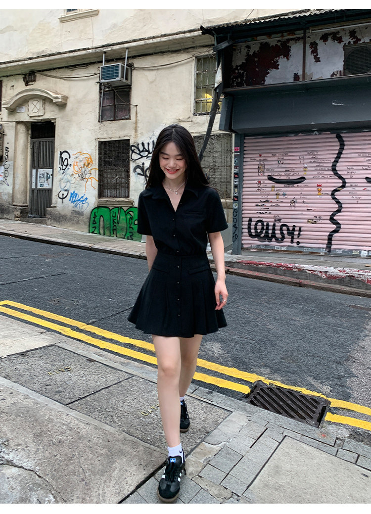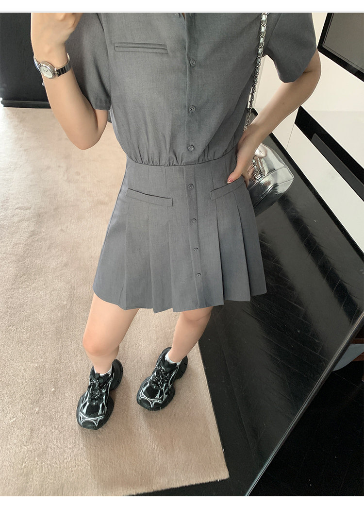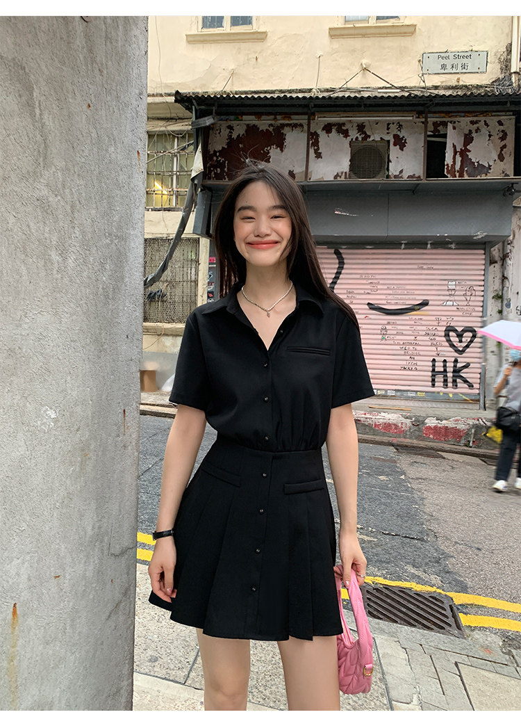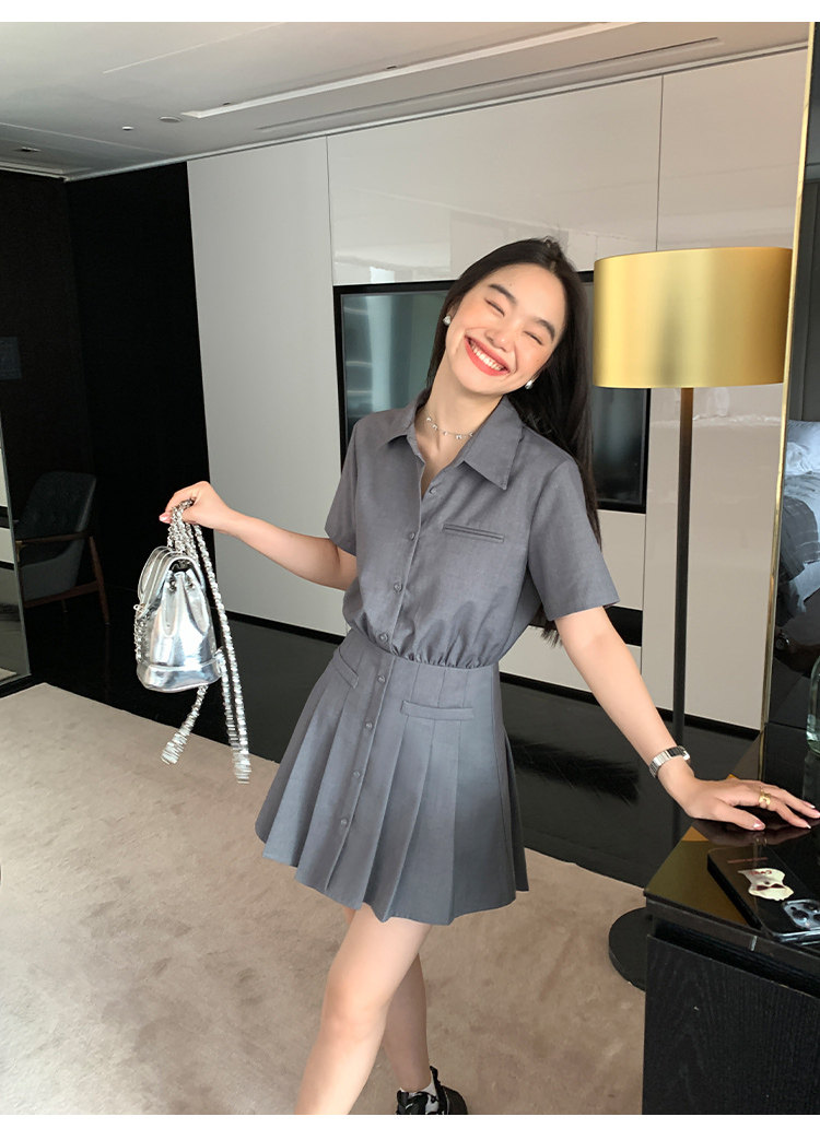 pusumede Рубашка, дизайнерская юбка в складку, корсет, мини-юбка, изысканный стиль, яркий броский стиль, тренд сезона, А-силуэт