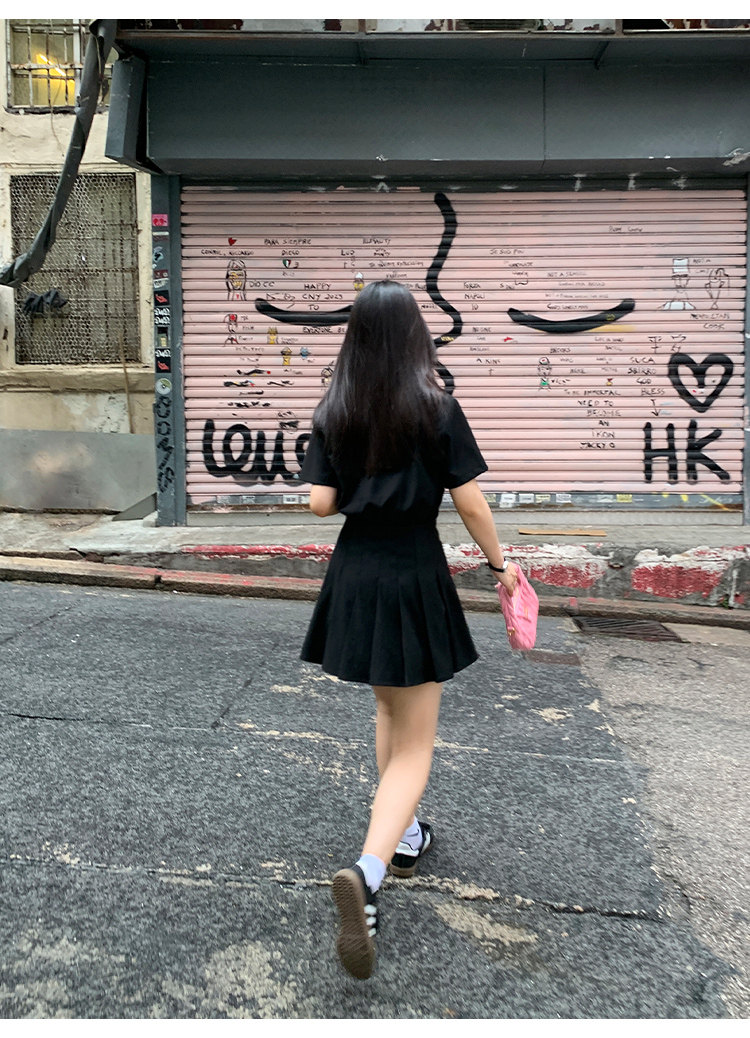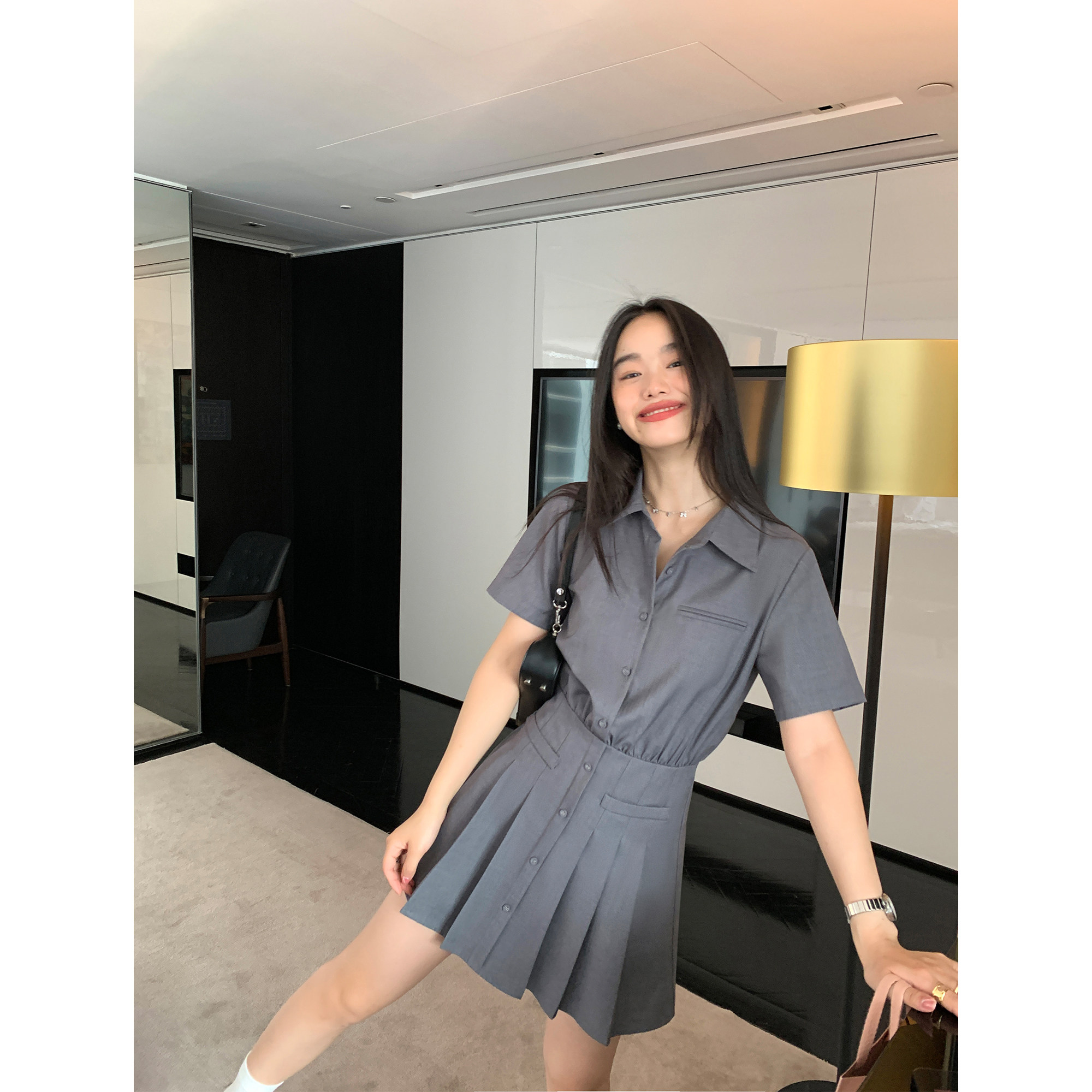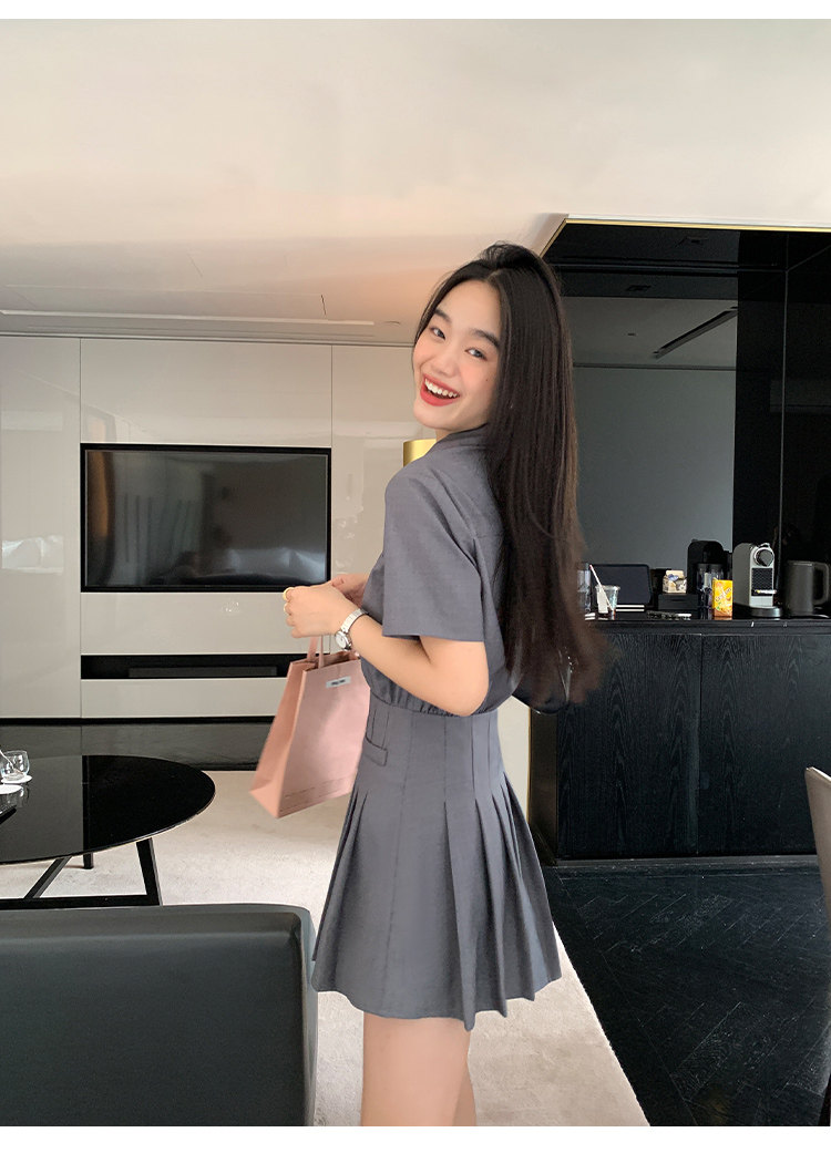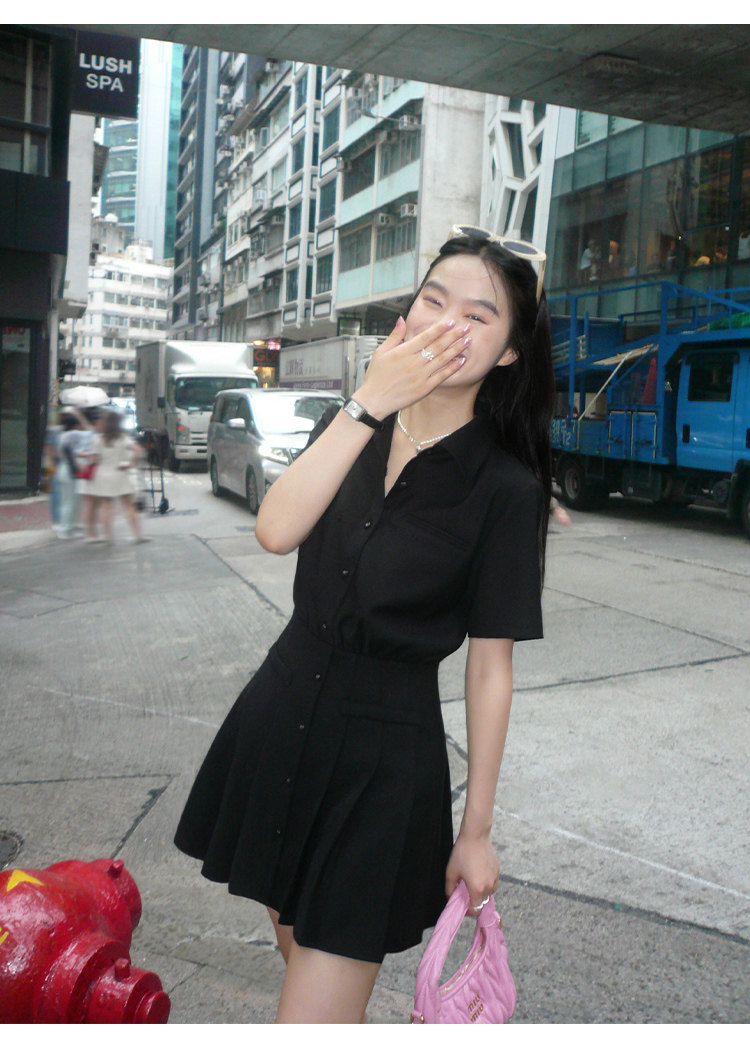 pusumede Рубашка, дизайнерская юбка в складку, корсет, мини-юбка, изысканный стиль, яркий броский стиль, тренд сезона, А-силуэт