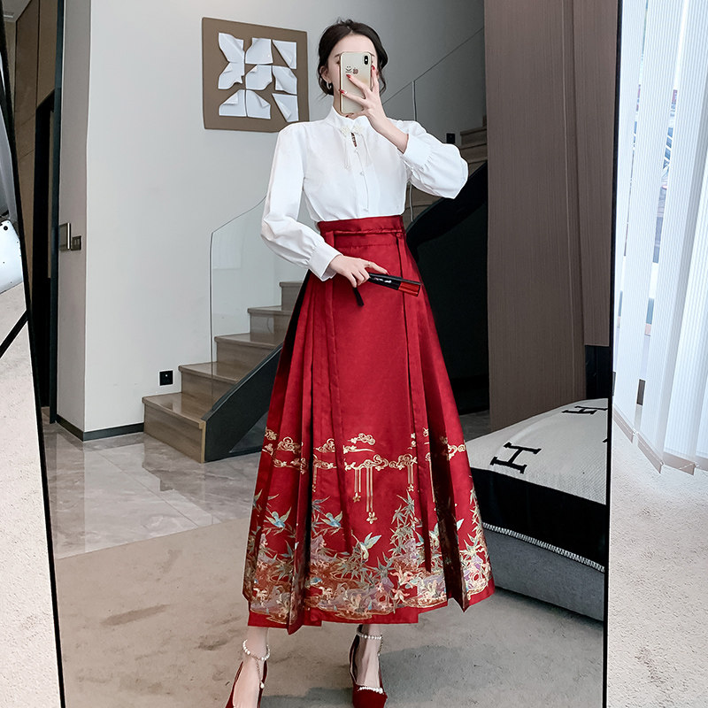 Ханьфу, весенняя юбка, ретро ципао, красный комплект, китайский стиль, 2024 года