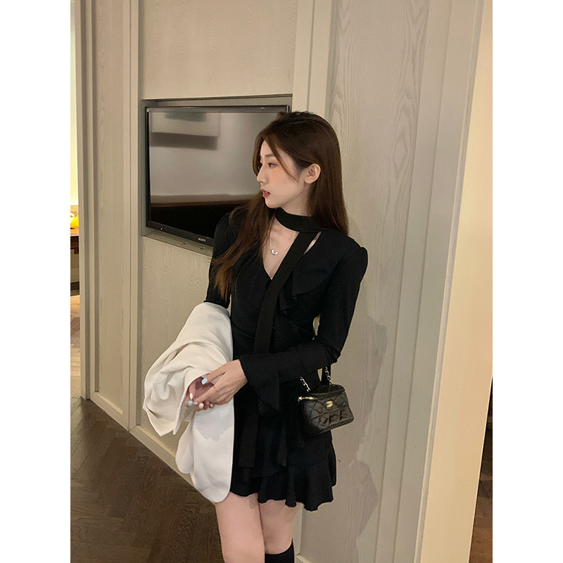 乌77 Женское платье, приталенный мегафон, юбка, V-образный вырез, с рукавом, с акцентом на бедрах, подходит для подростков