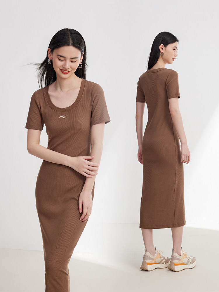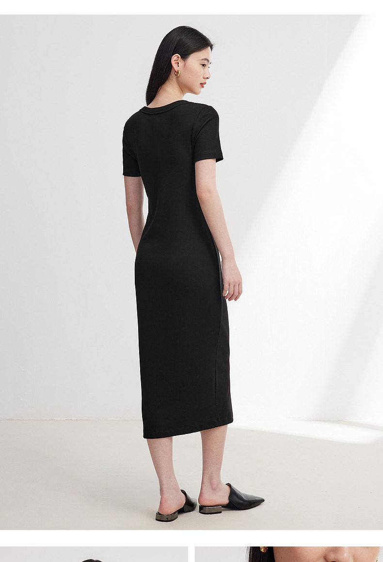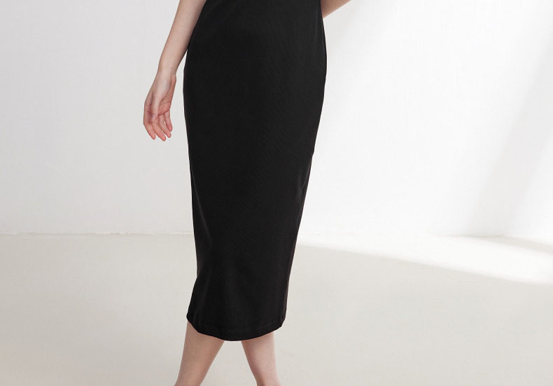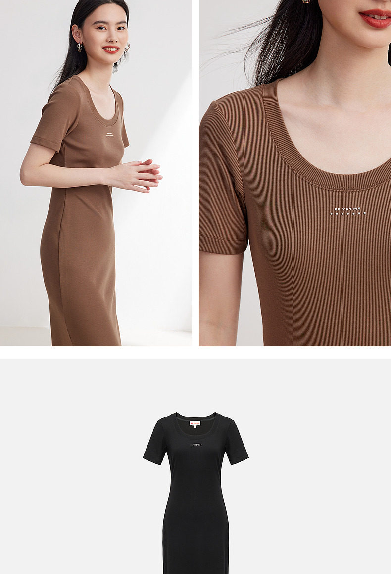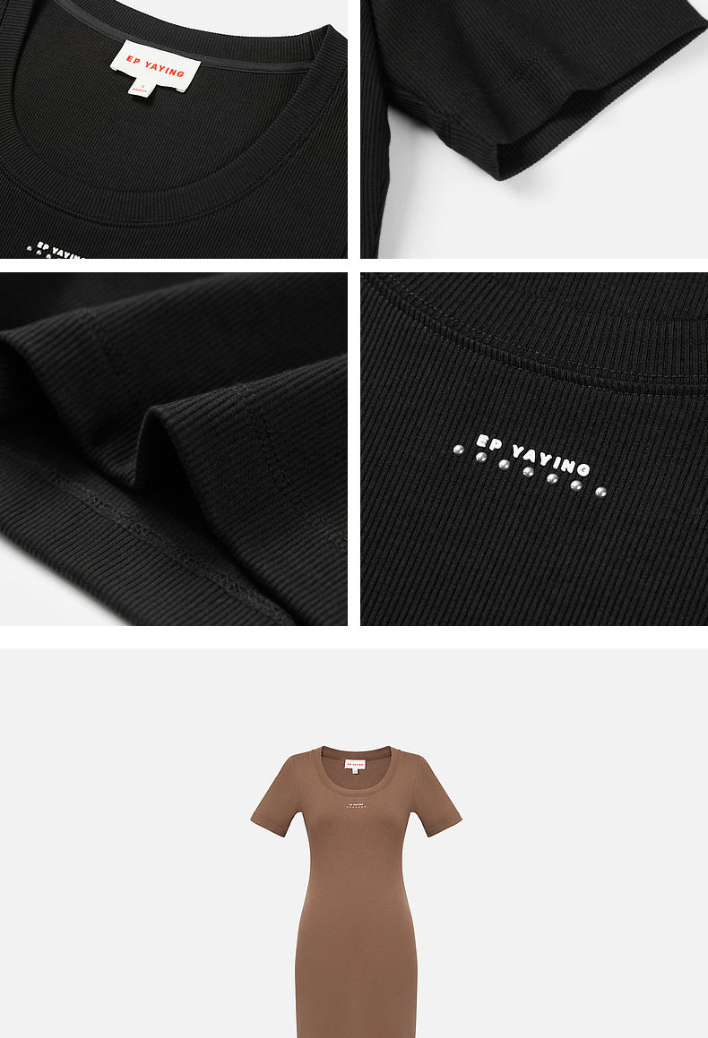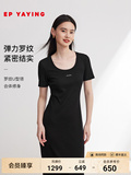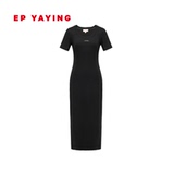 EP Yaying Женская одежда с твердым цветом Slim Fit и Slim Play U-образное черное платье Summer Shopping Mall Тот же стиль 4530A