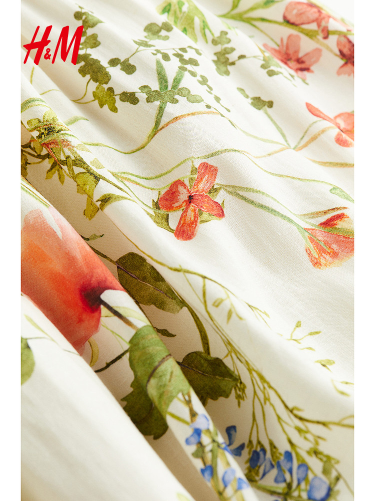 Hm женское платье осеннего праздничного стиля с принтом на подтяжках, тонкая льняная длинная юбка с растительным принтом 1217048