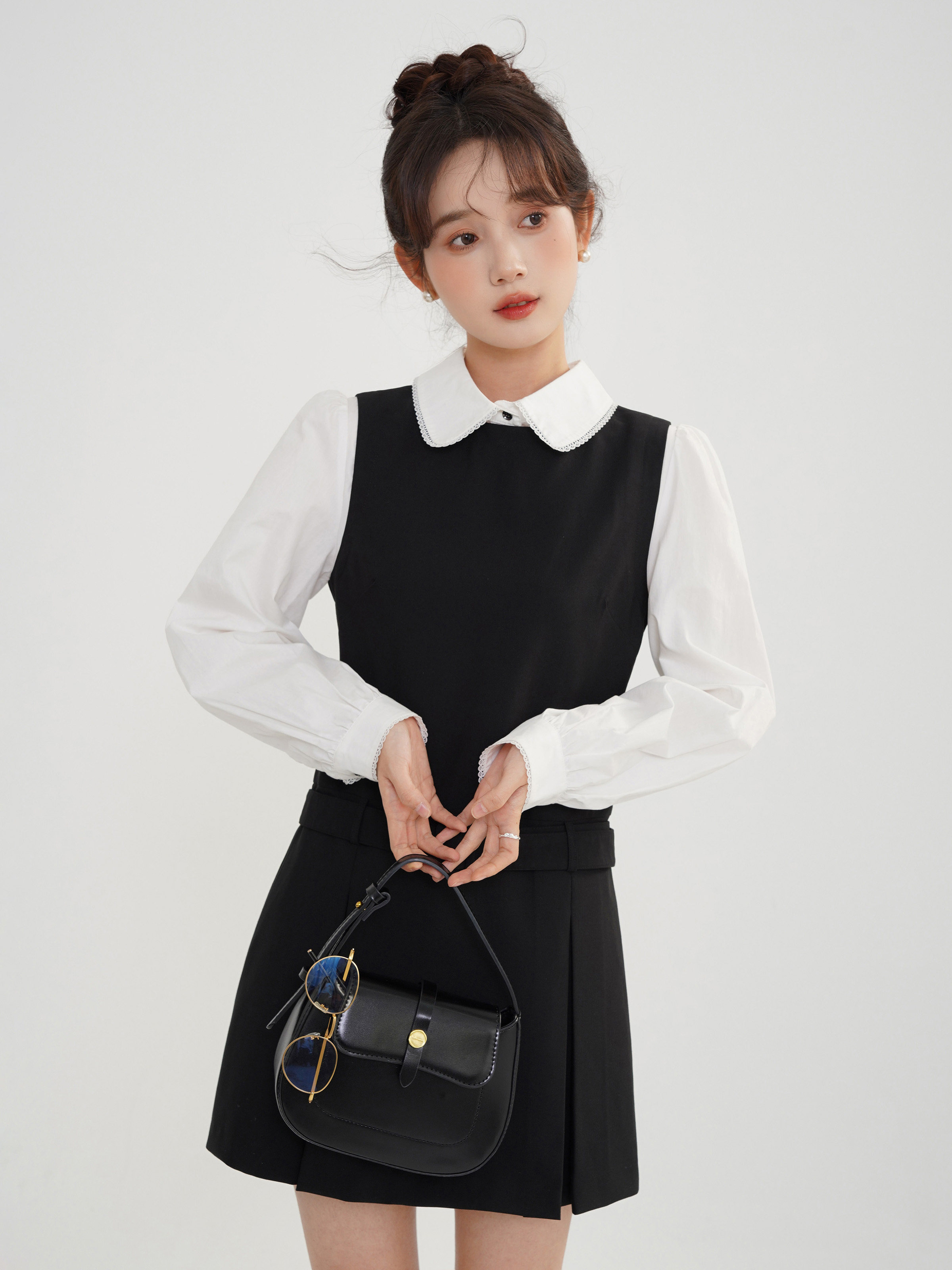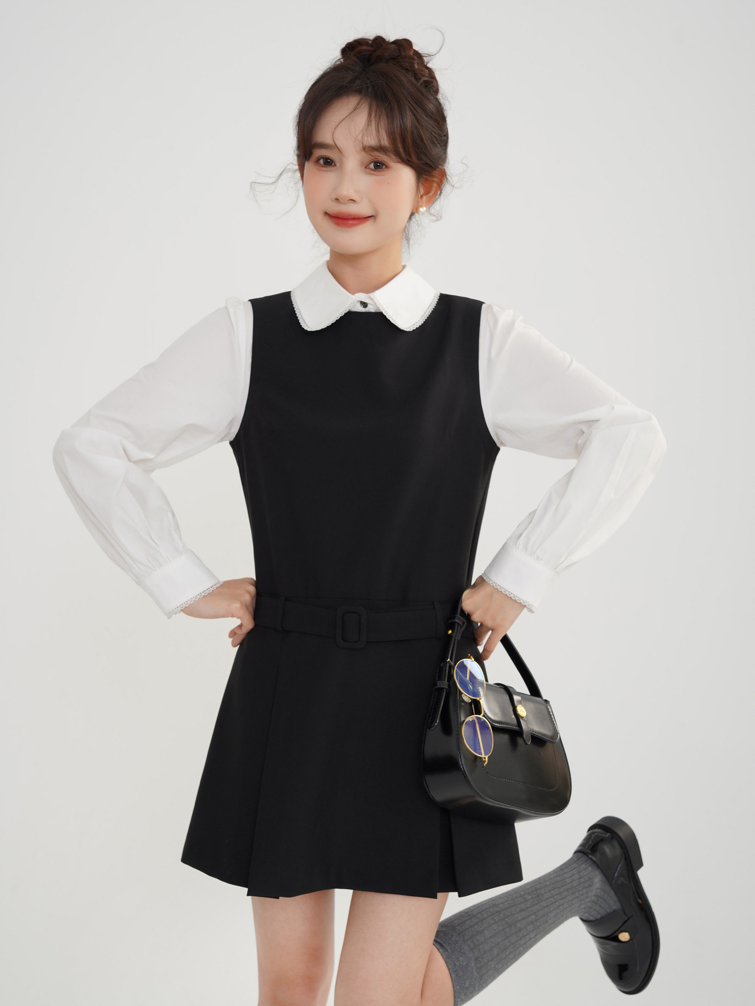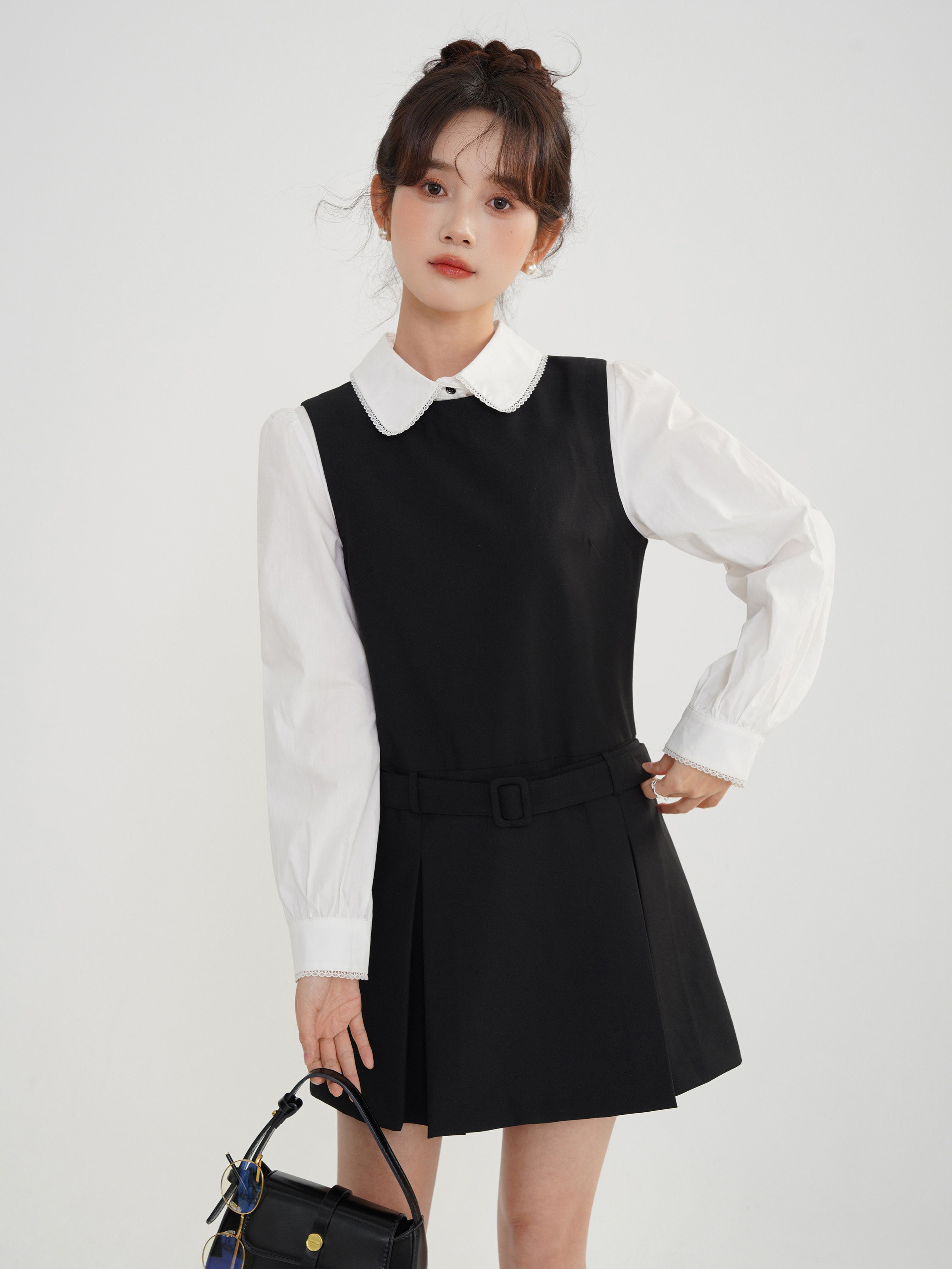 Комплект, осеннее платье, приталенный корсет, короткая юбка в складку