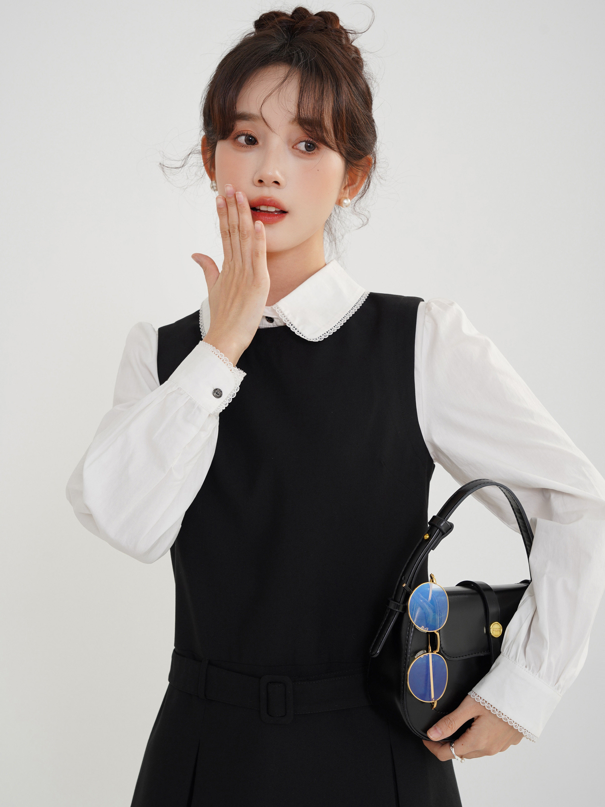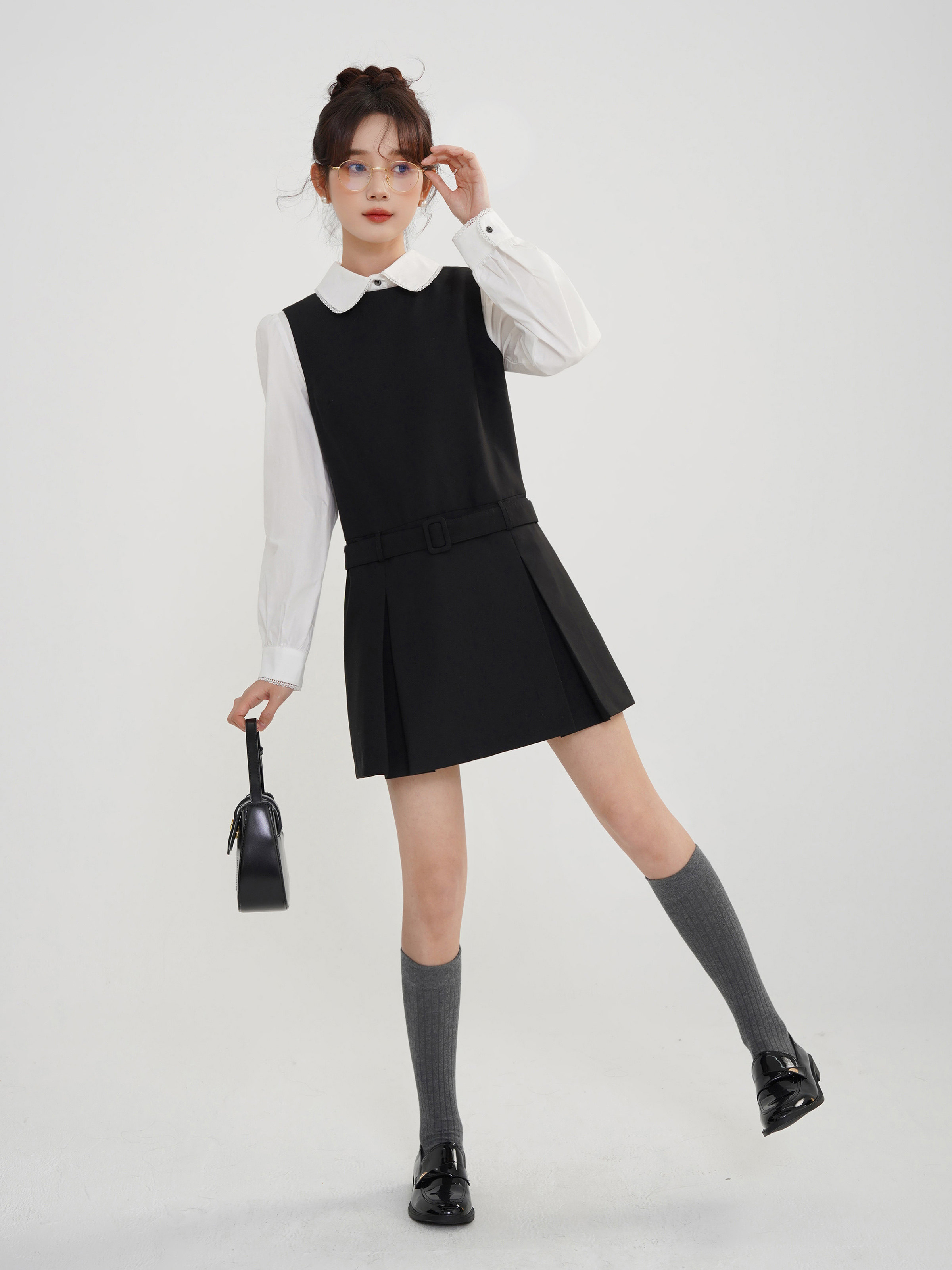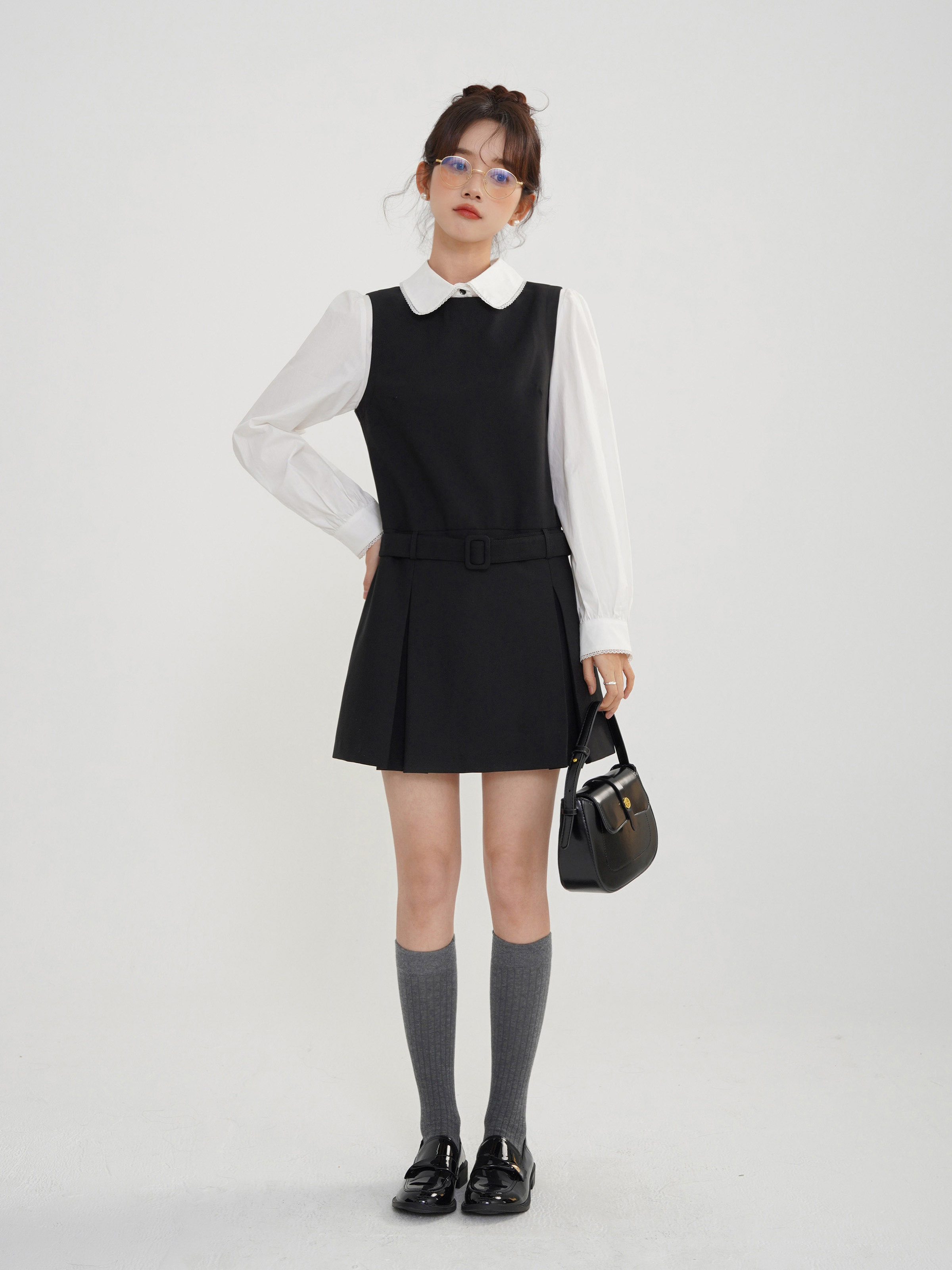 Комплект, осеннее платье, приталенный корсет, короткая юбка в складку