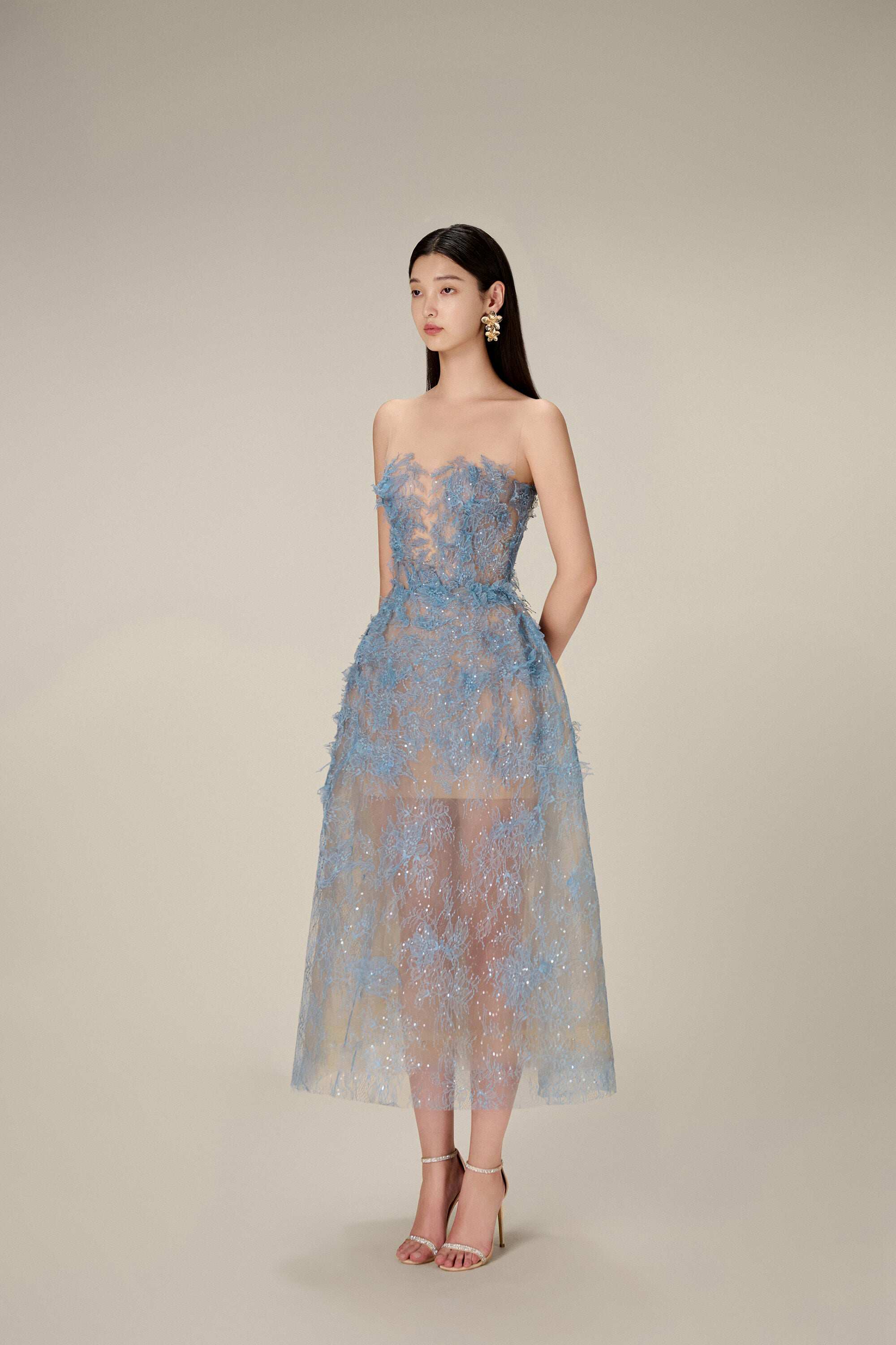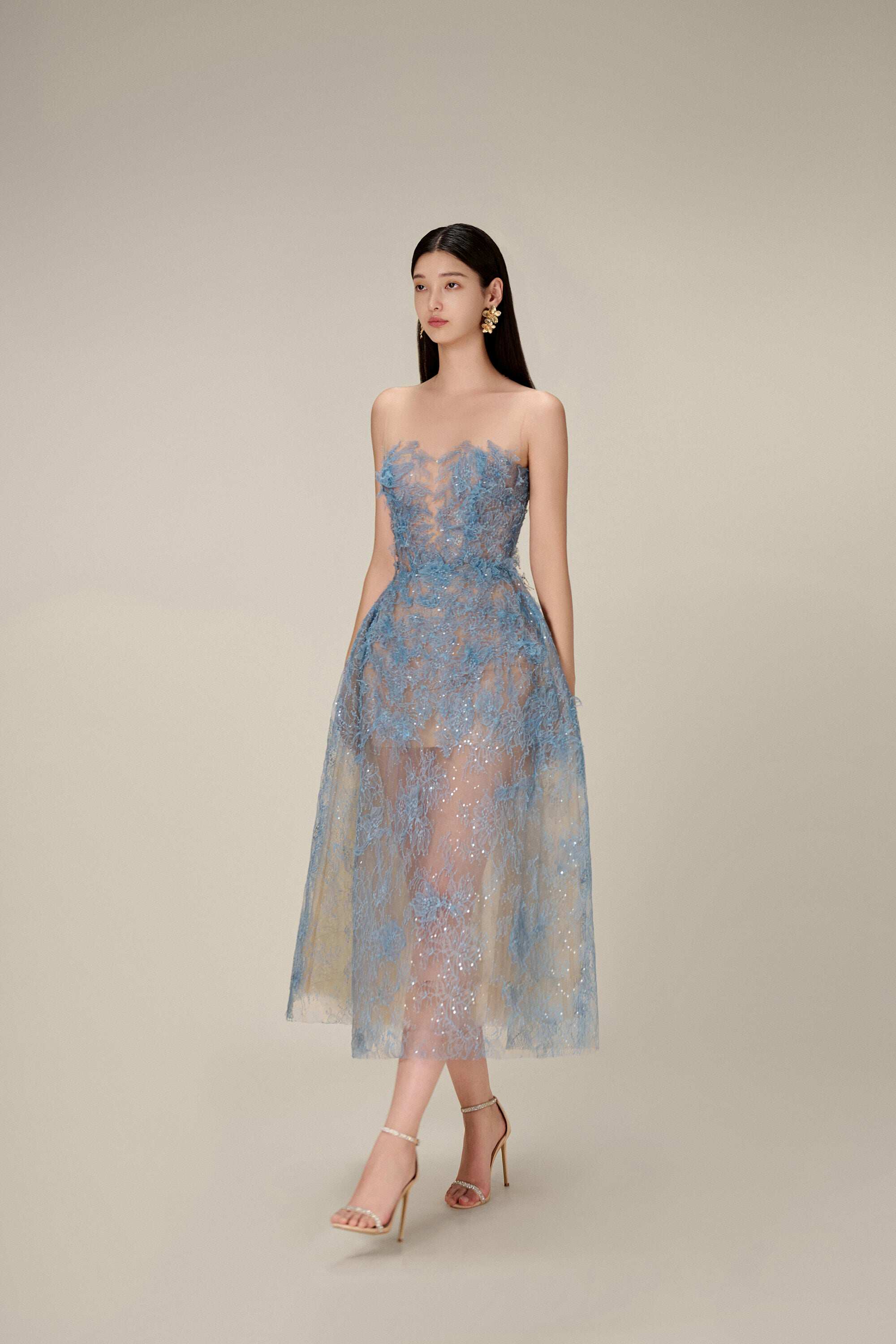 - Синее импортное кружевное качественное платье, делается под заказ