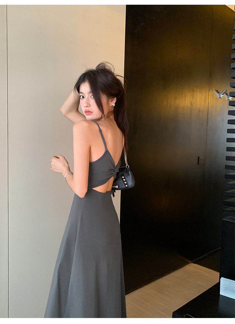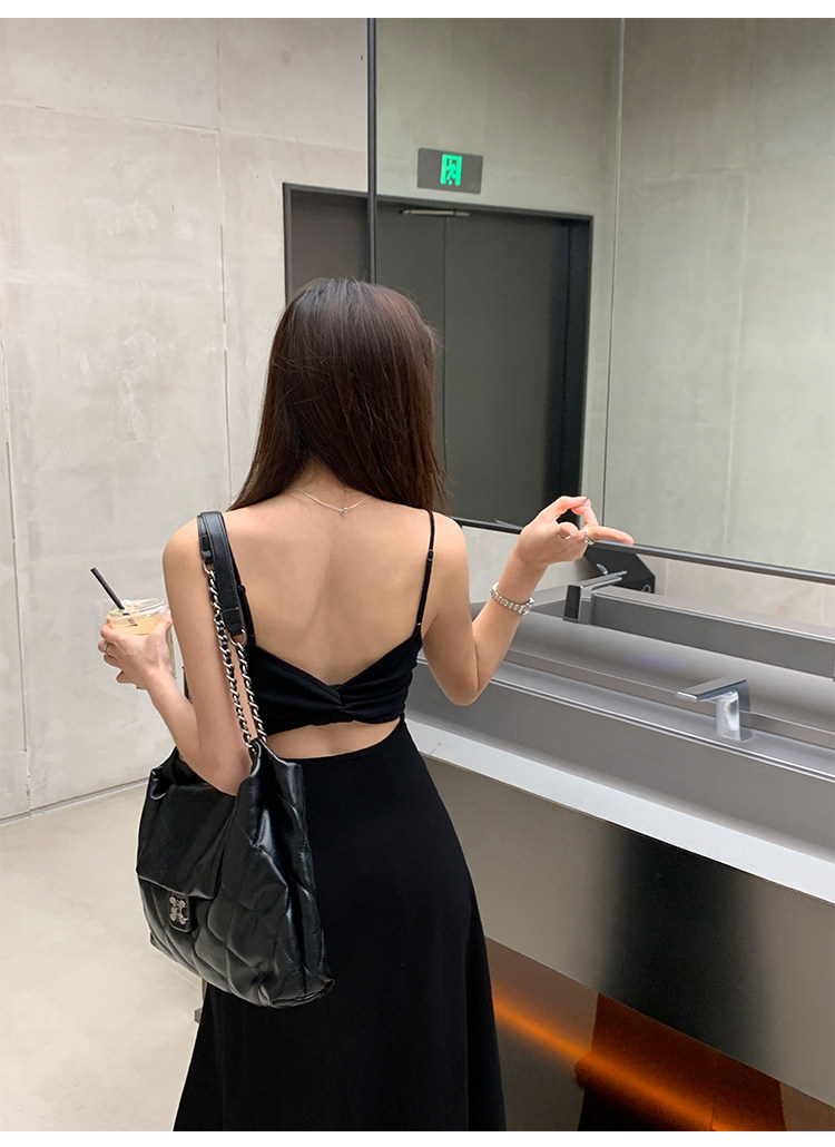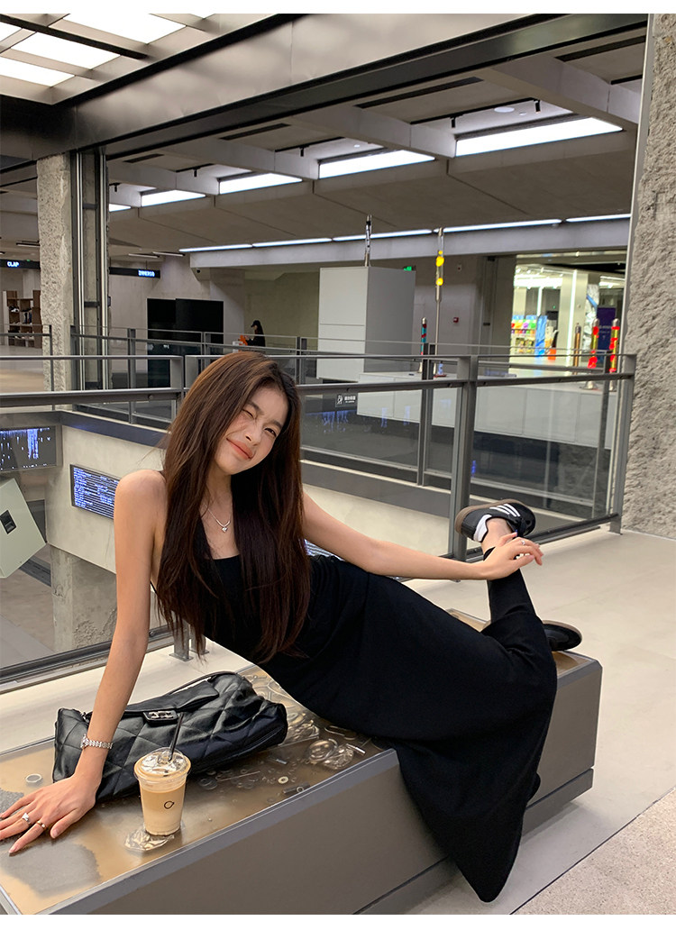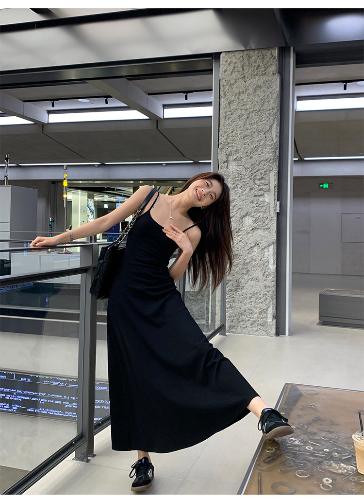 Черное платье, летний сексуальный приталенный корсет, пляжная длинная юбка, с открытой спиной