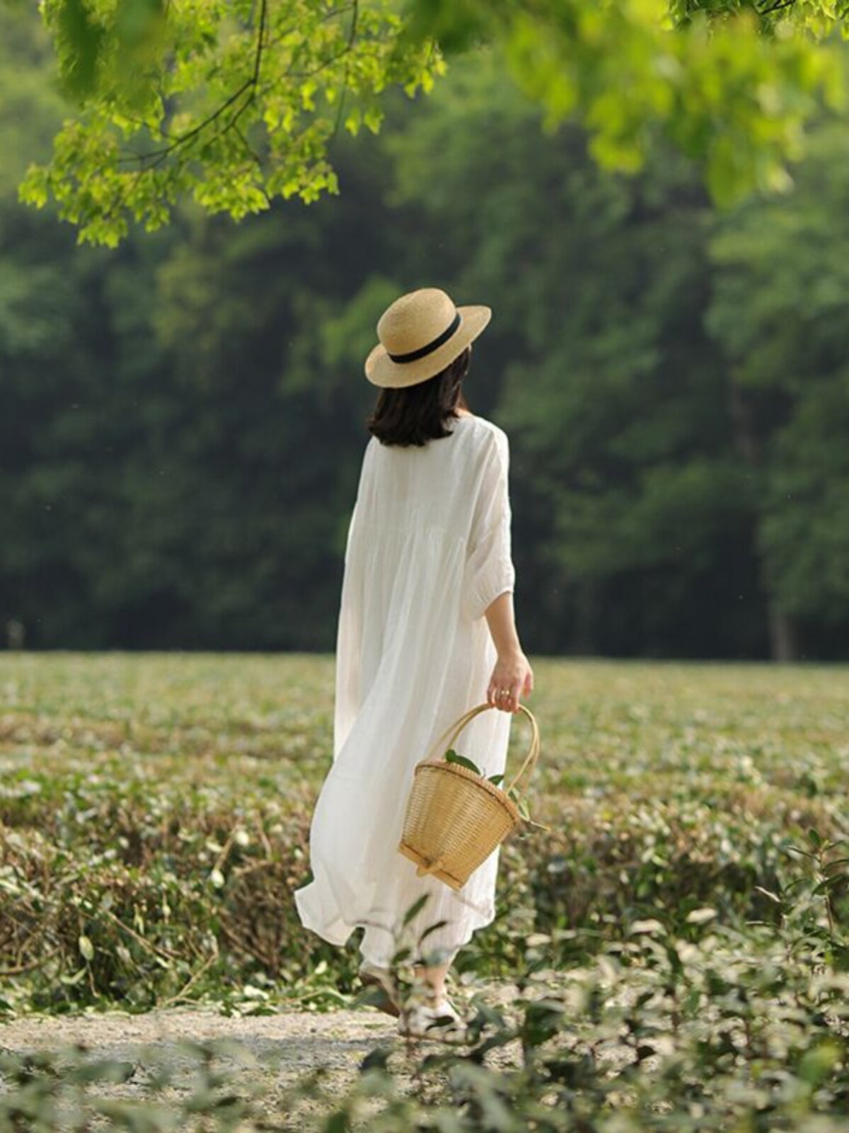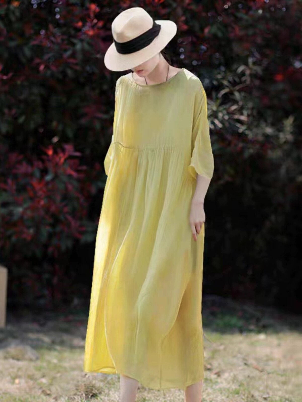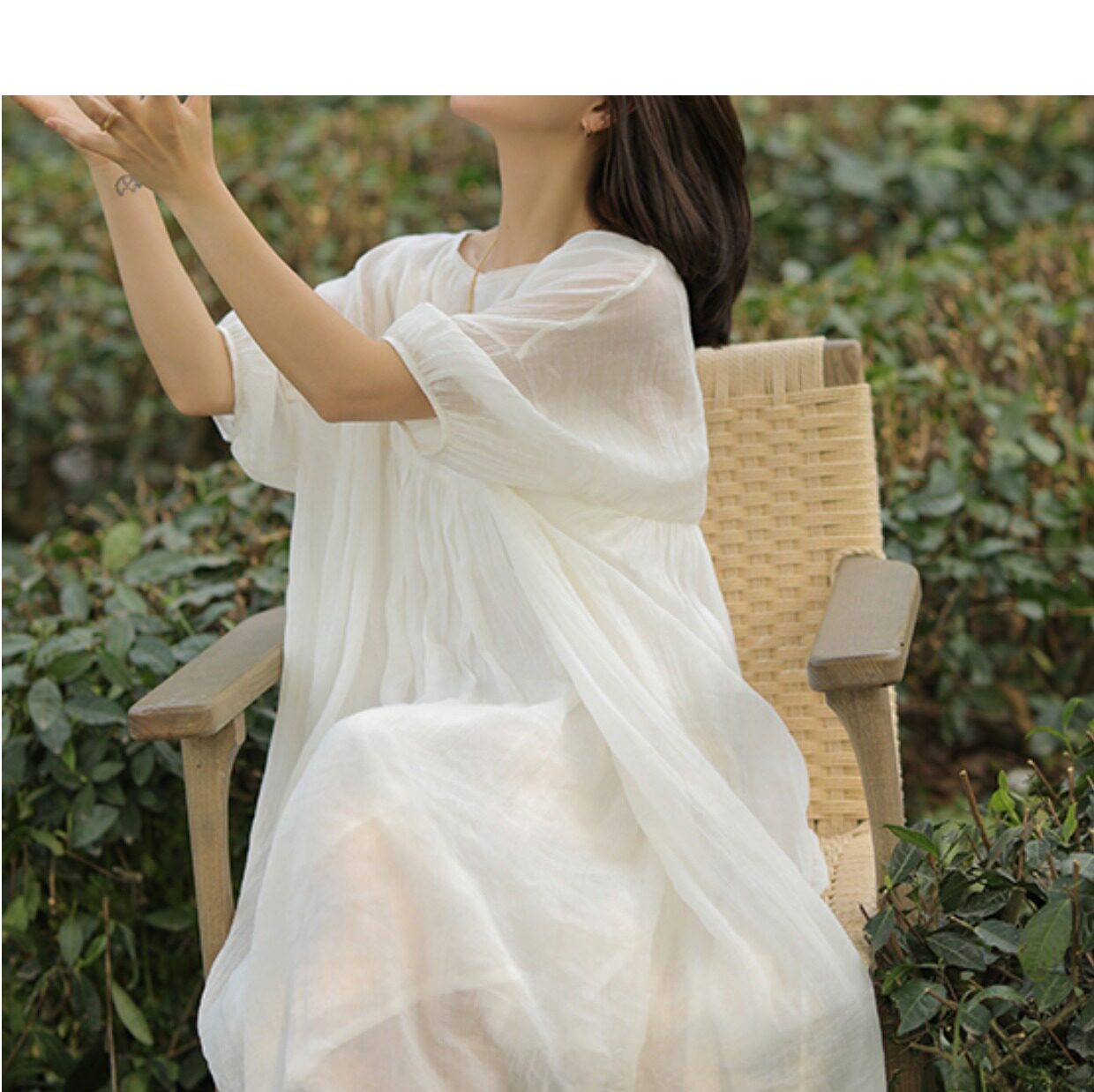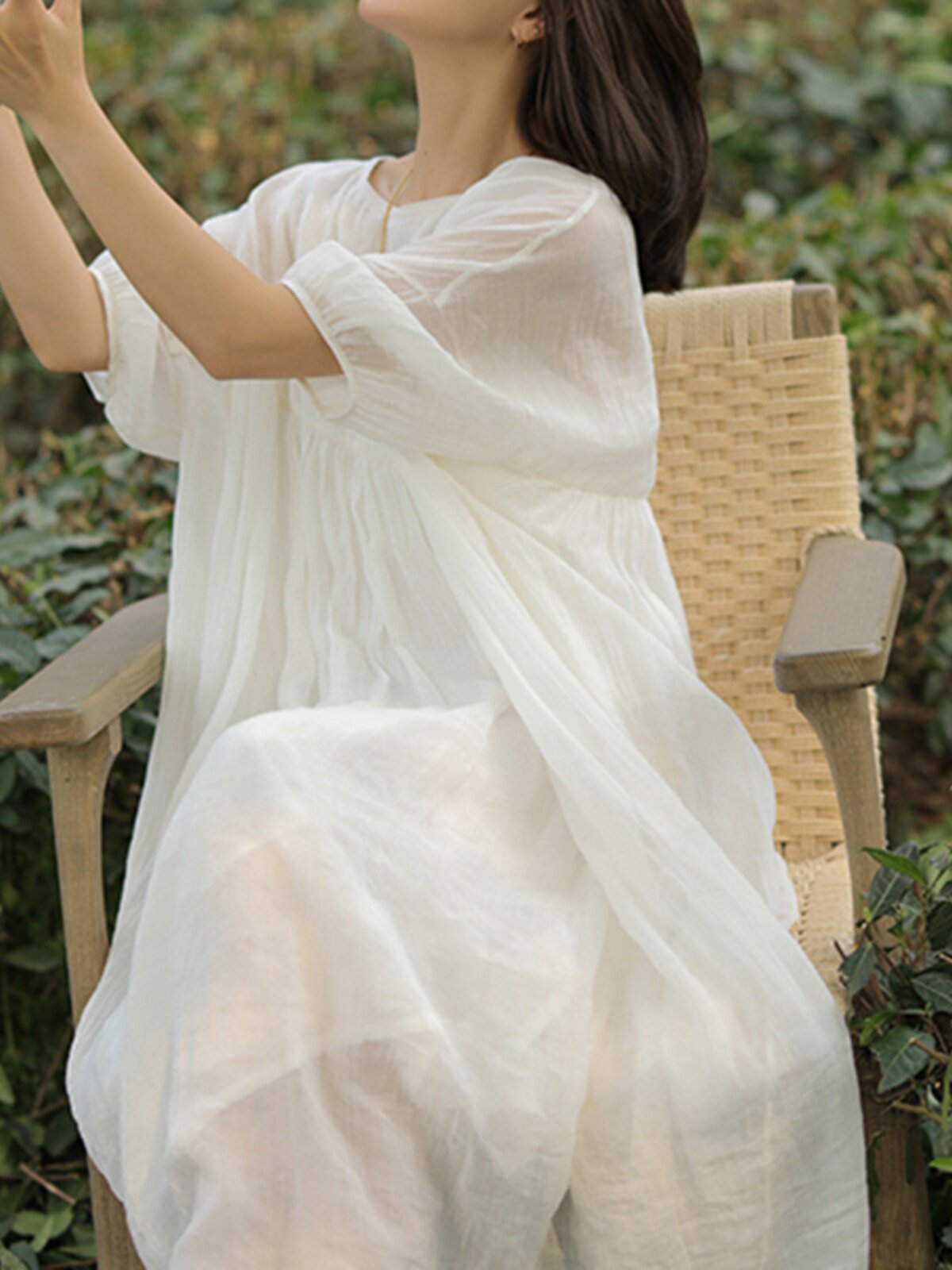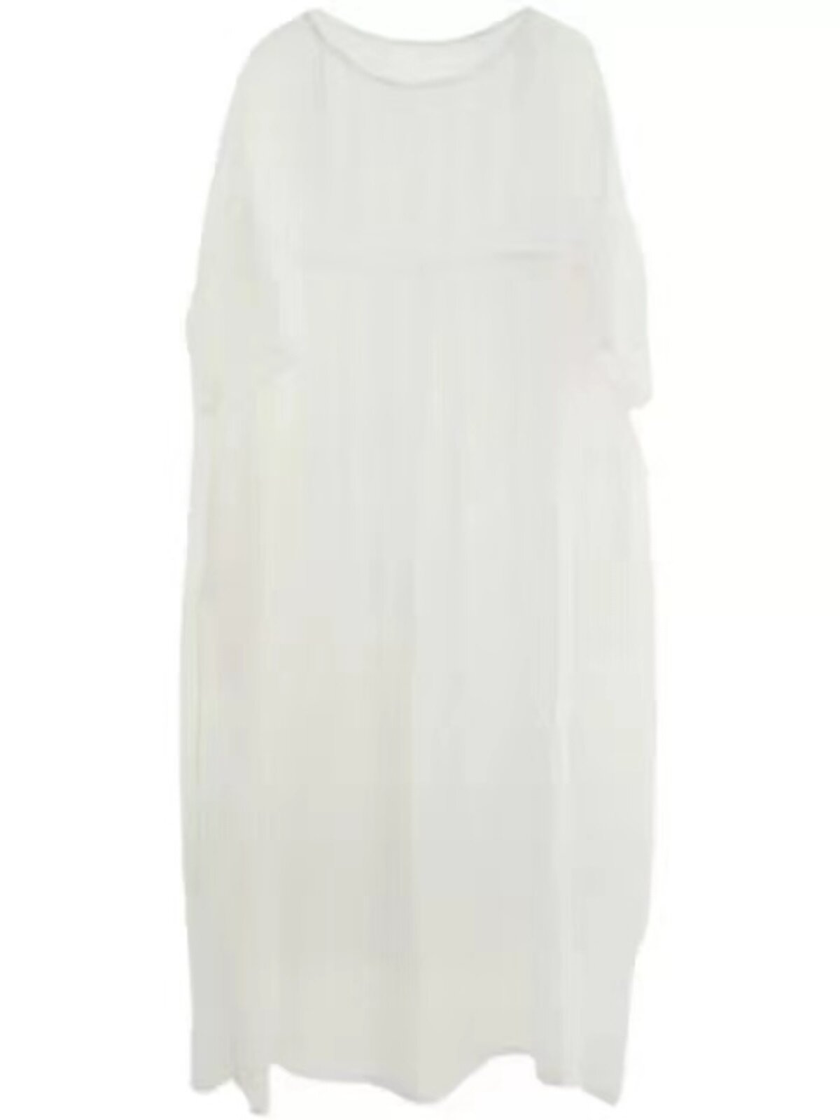 Белое платье, длинная юбка, из хлопка и льна, свободный крой, средней длины