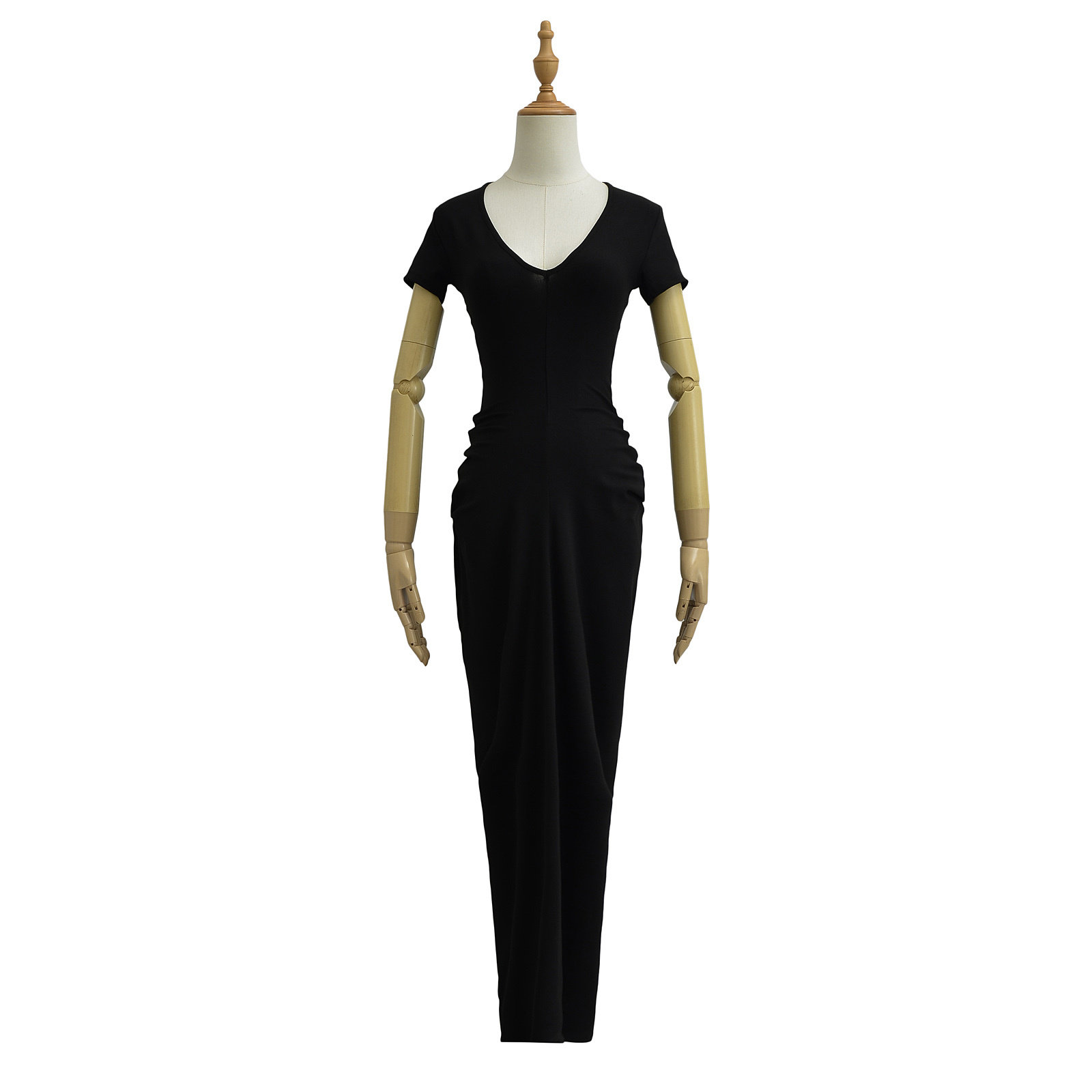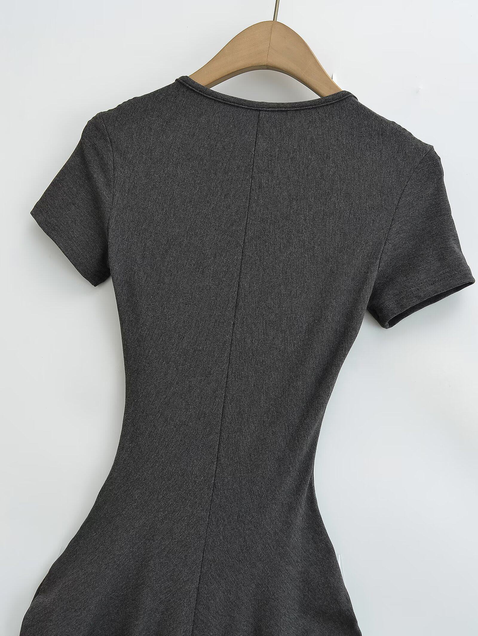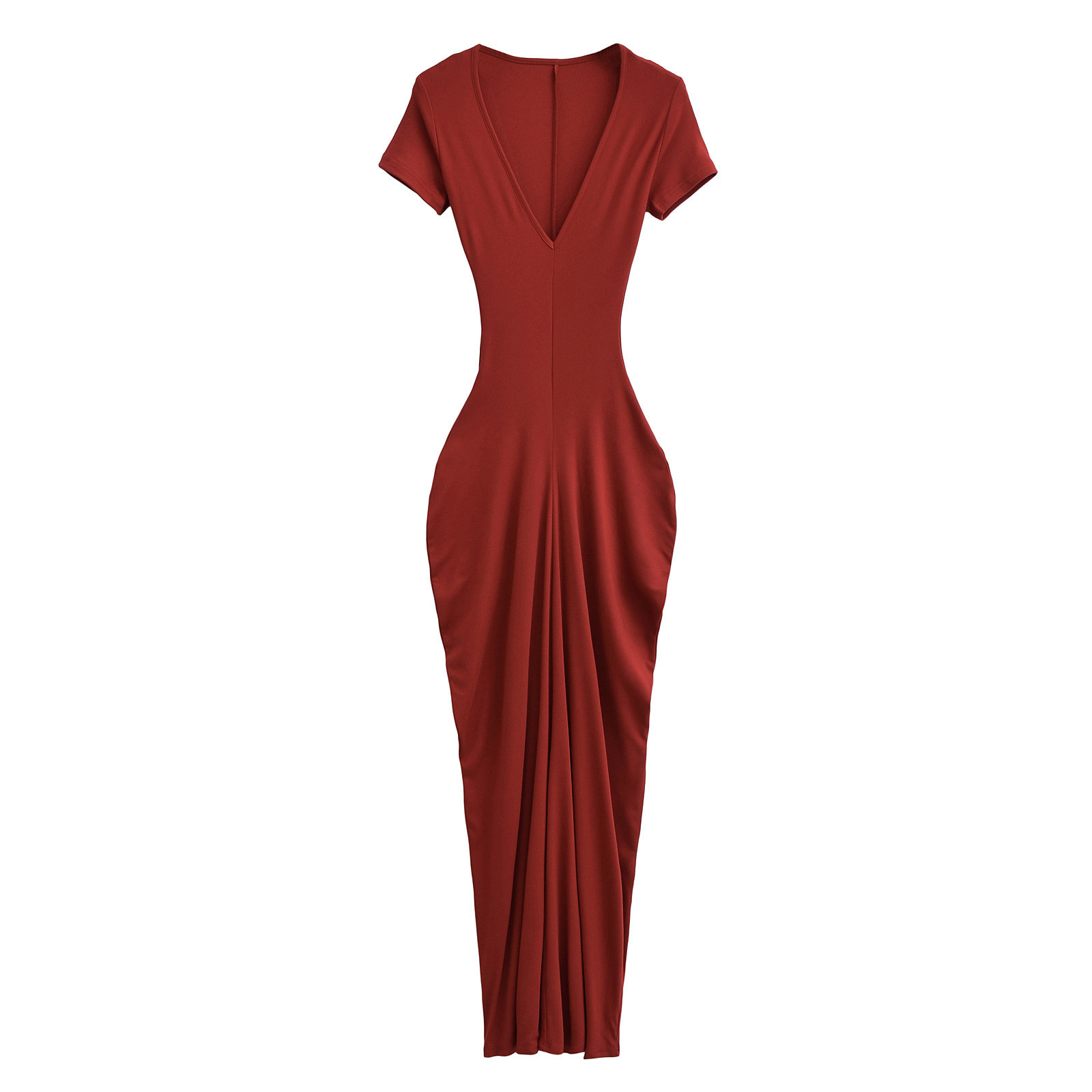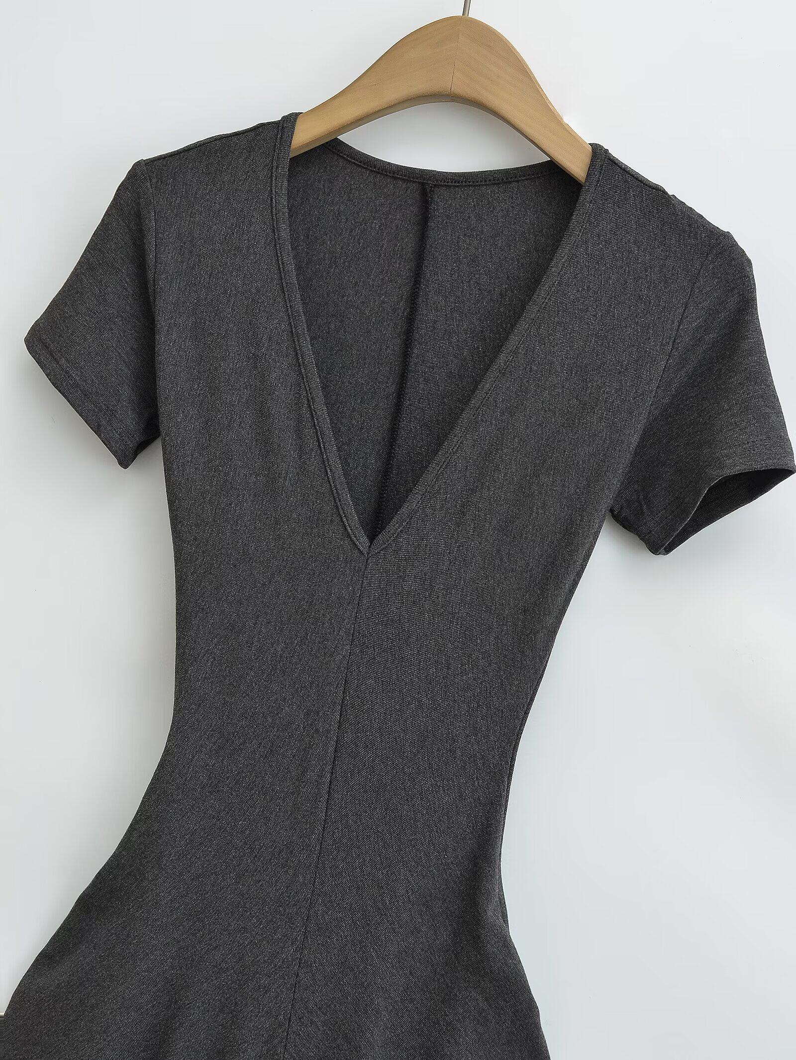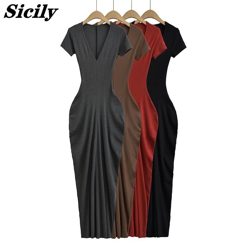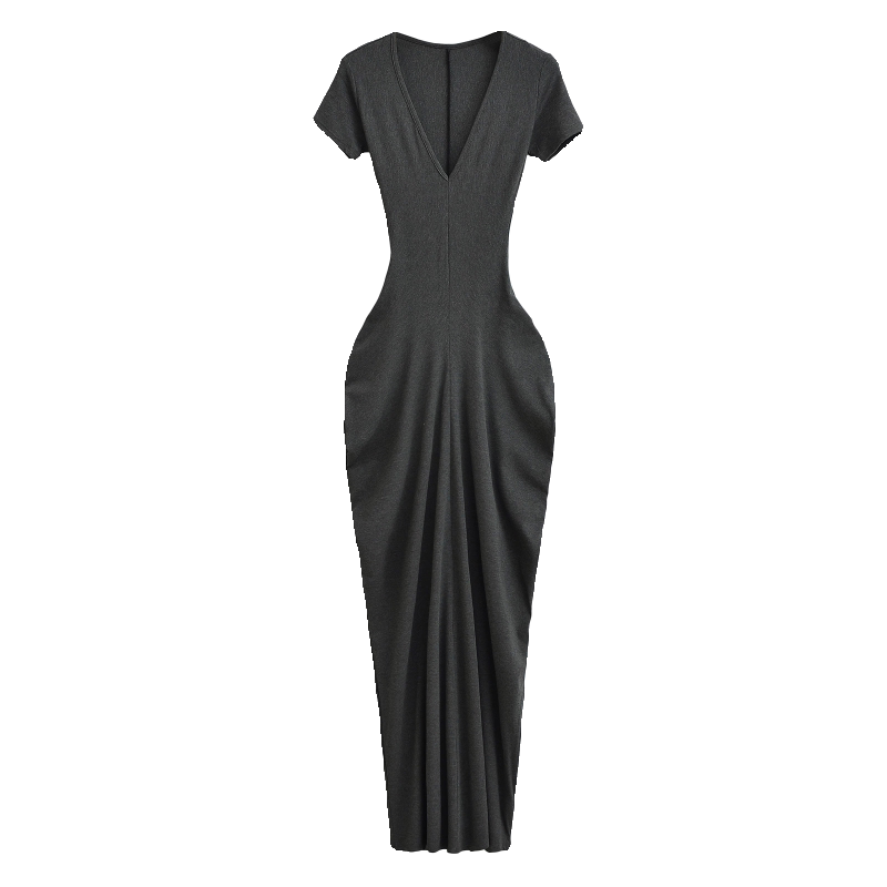 Летняя длинная юбка, европейский стиль, V-образный вырез, с акцентом на бедрах, короткий рукав, городской стиль