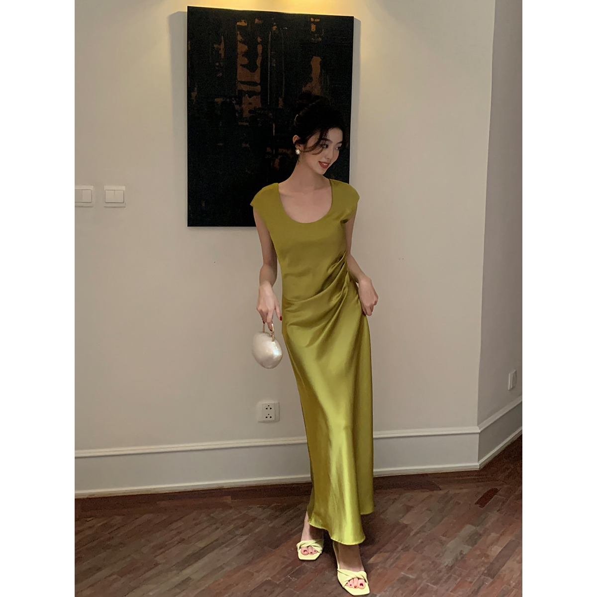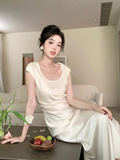 Элегантное сексуальное платье, приталенная длинная юбка, китайский стиль, квадратный вырез