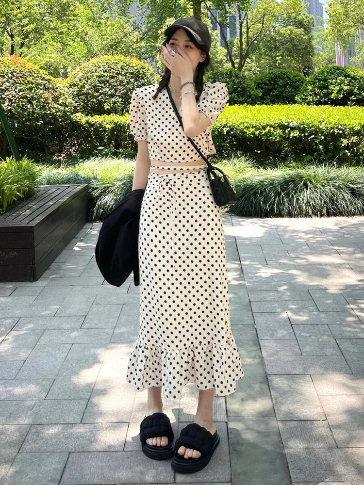 Белая осенняя длинная юбка, платье, комплект, французский стиль, 2024 года, рыбий хвост