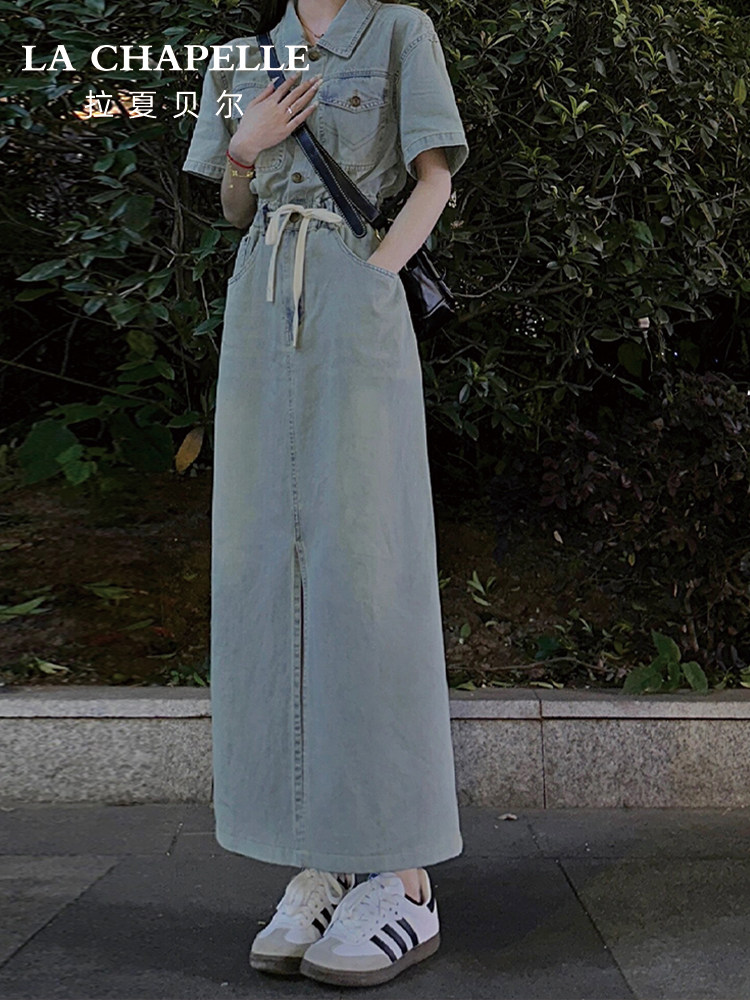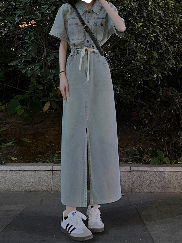 Осеннее джинсовое платье, длинная юбка, изысканный стиль, подходит для подростков, французский стиль, яркий броский стиль, по фигуре