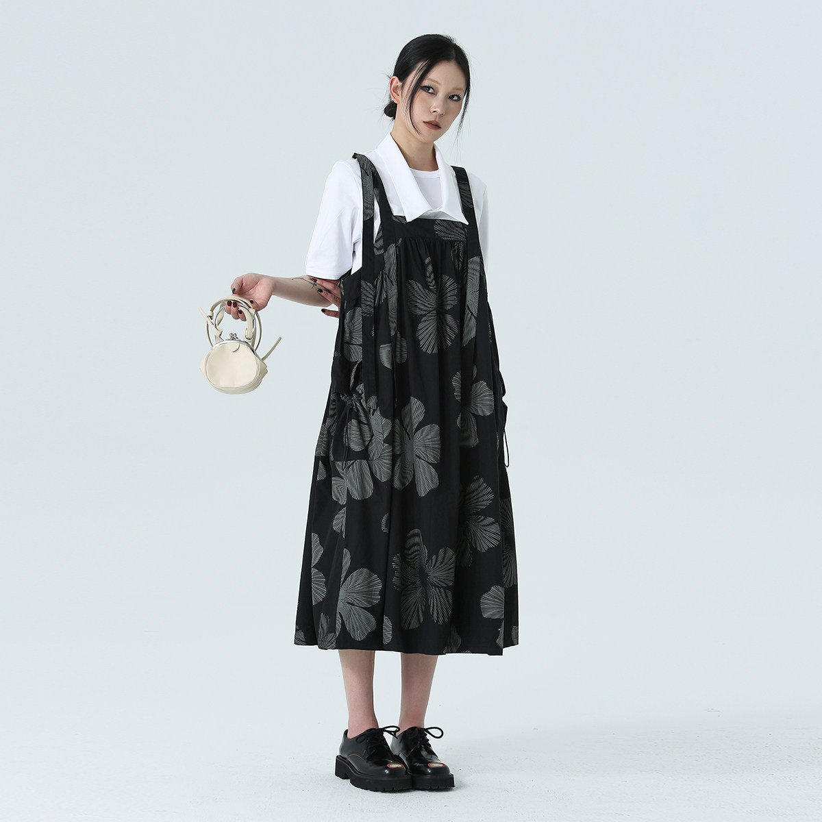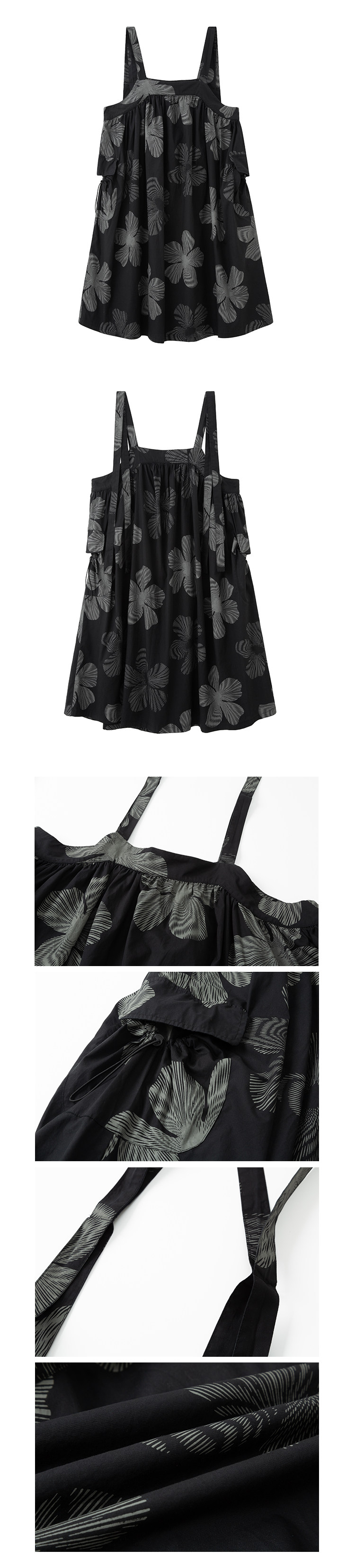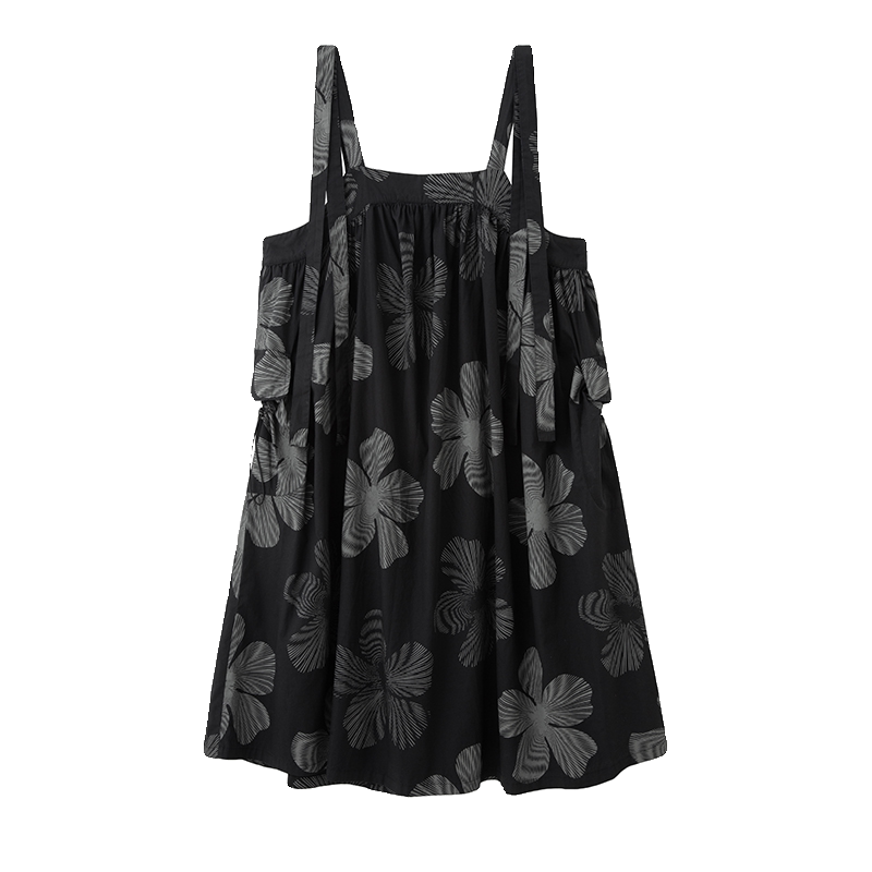 Простое черное 2024 весна и летнее платье с темным ветром листьев
