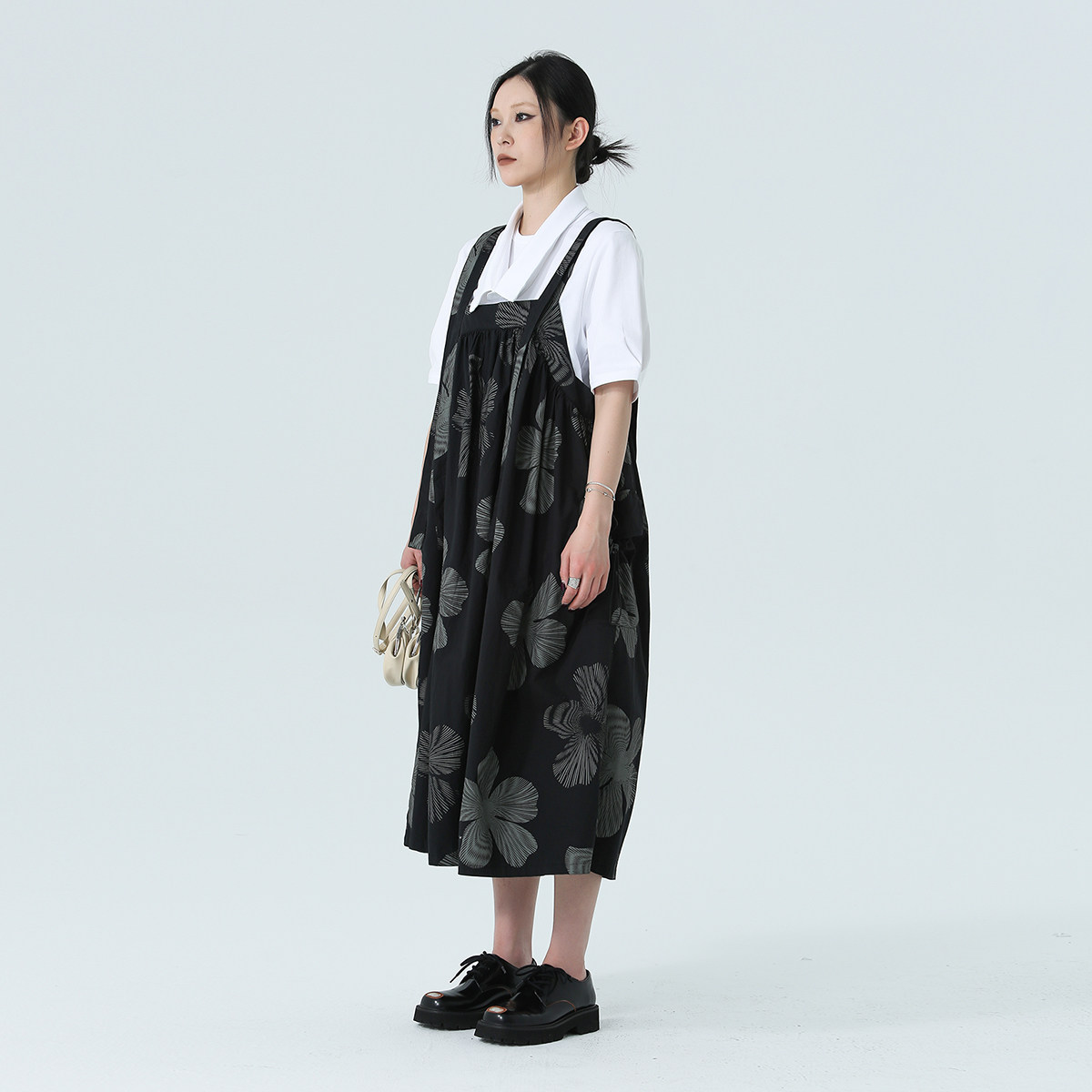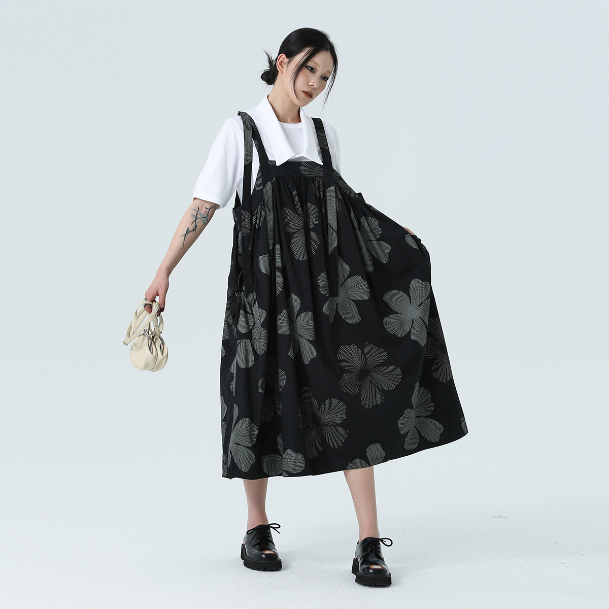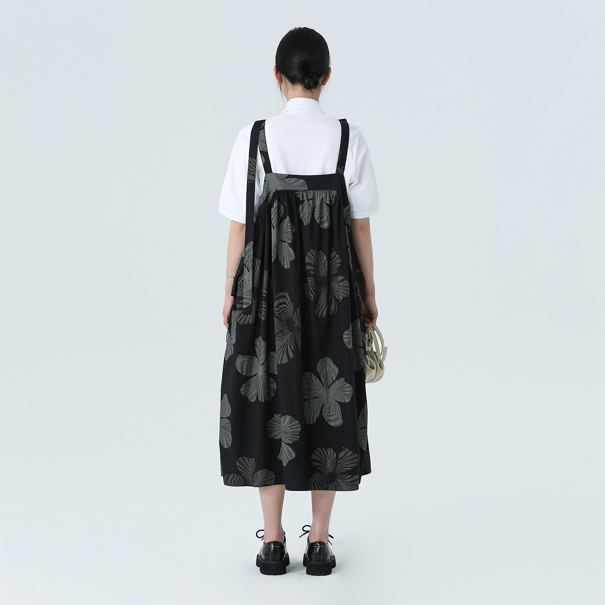 Простое черное 2024 весна и летнее платье с темным ветром листьев