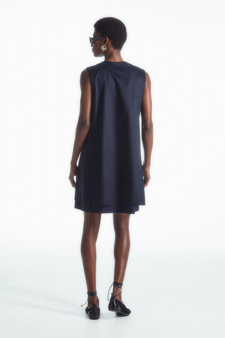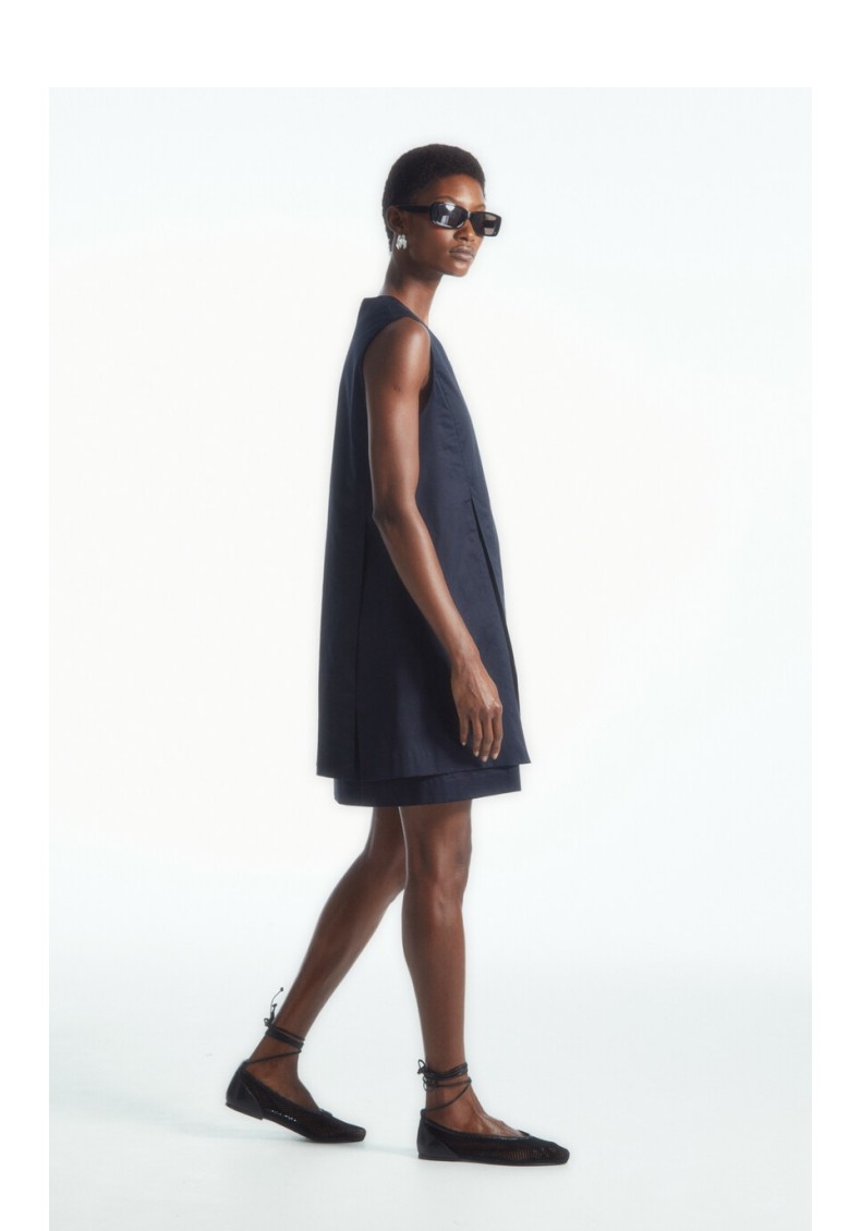 COS Женское плиссированное платье А-силуэта стандартного кроя с v-образным вырезом синего цвета, новинка 1227978002