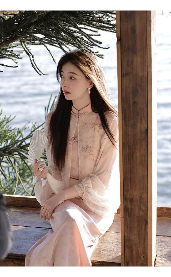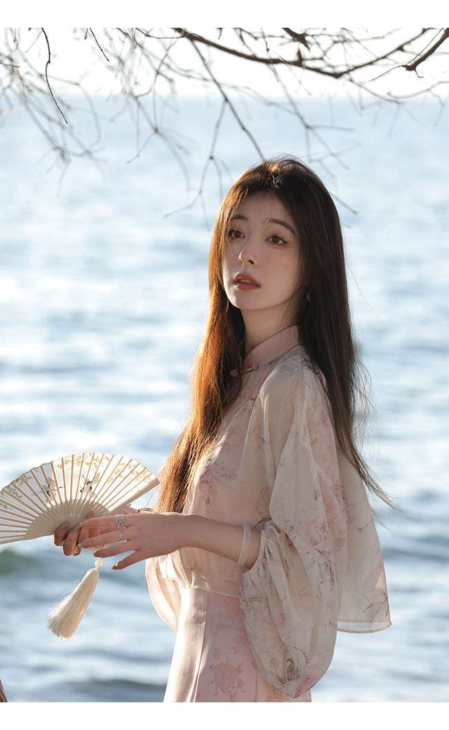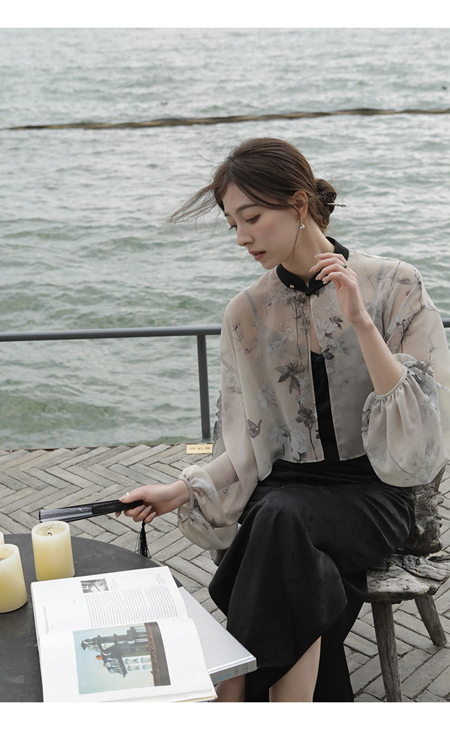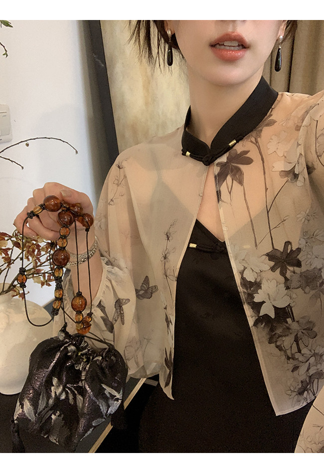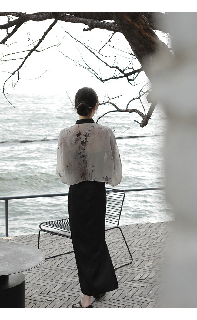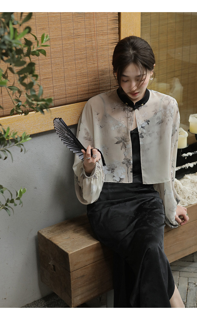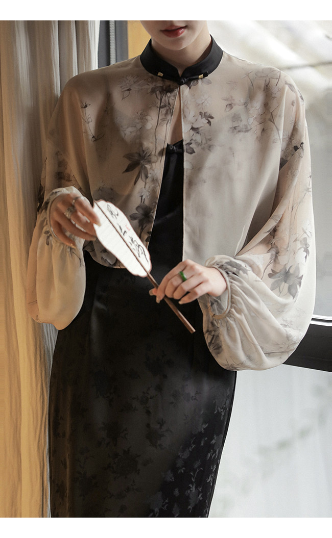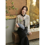Xia Shiwen Новая китайская рубашка на пуговицах на пуговицах классический кардиган/жаккардовый атласный подвеска для женщин о стихотворении