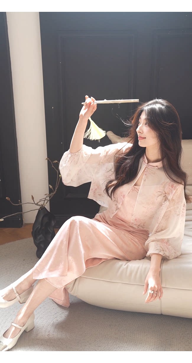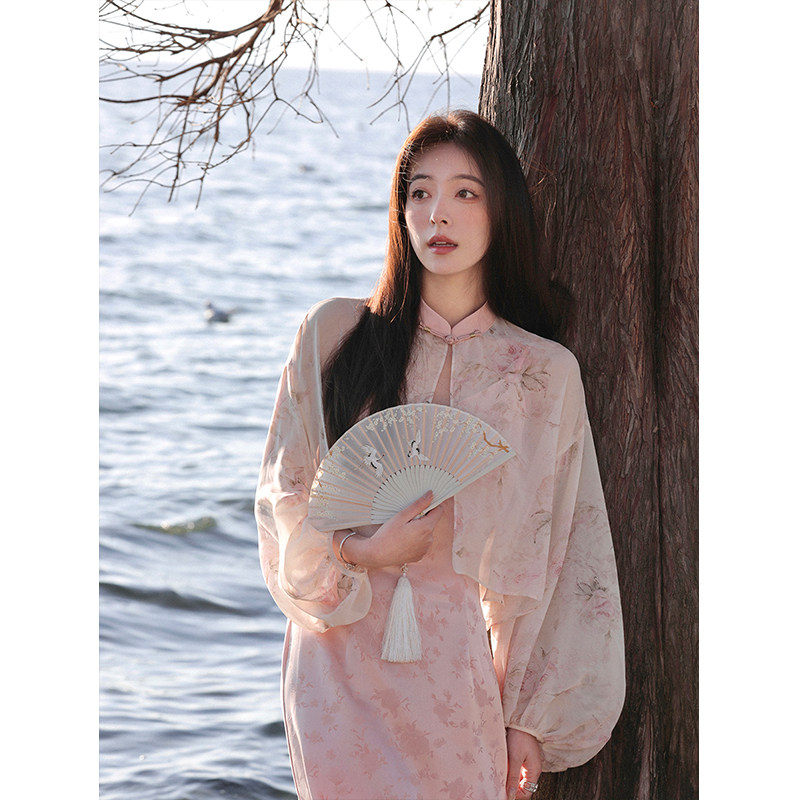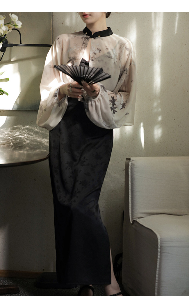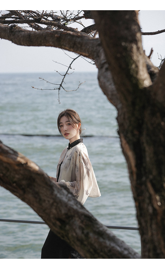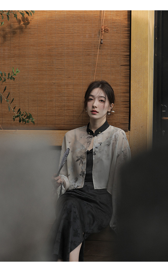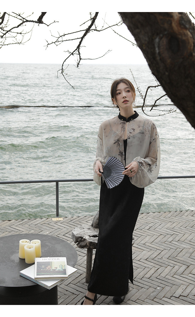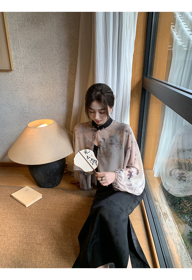 Xia Shiwen Новая китайская рубашка на пуговицах на пуговицах классический кардиган/жаккардовый атласный подвеска для женщин о стихотворении