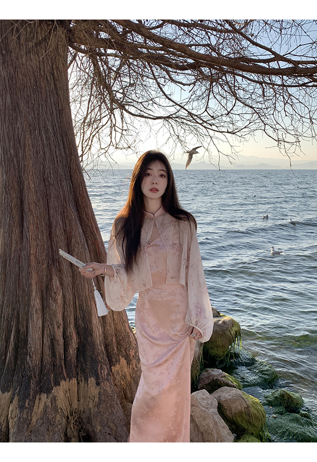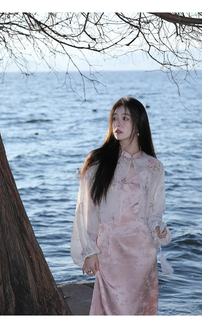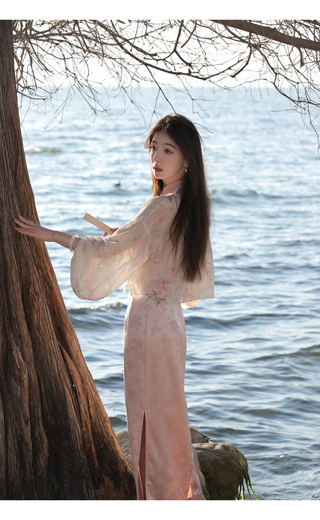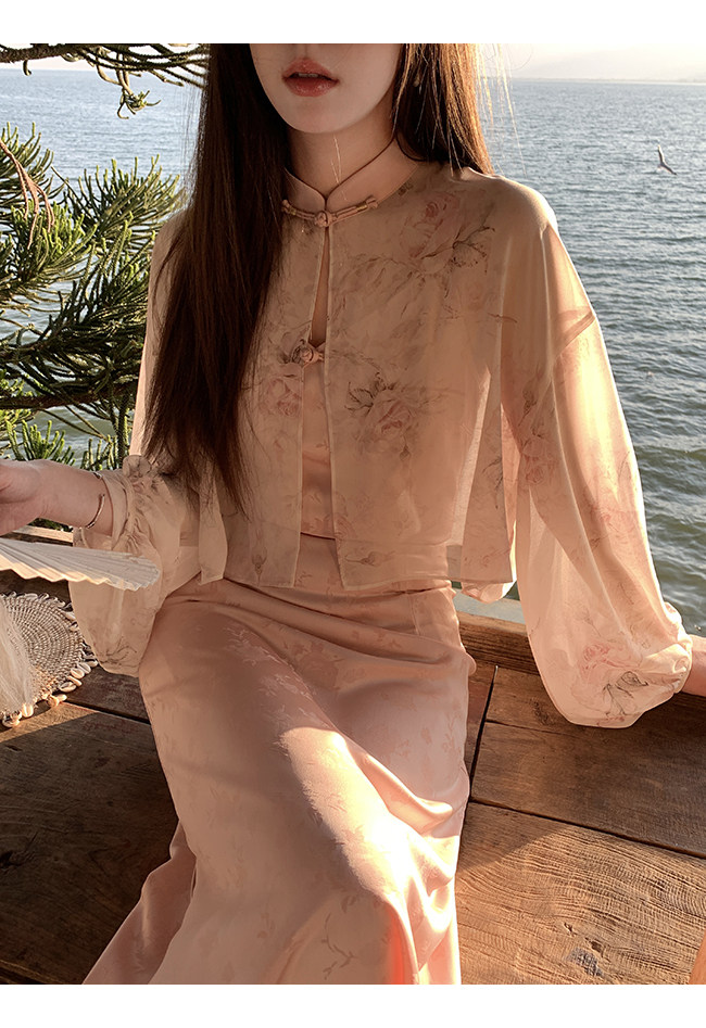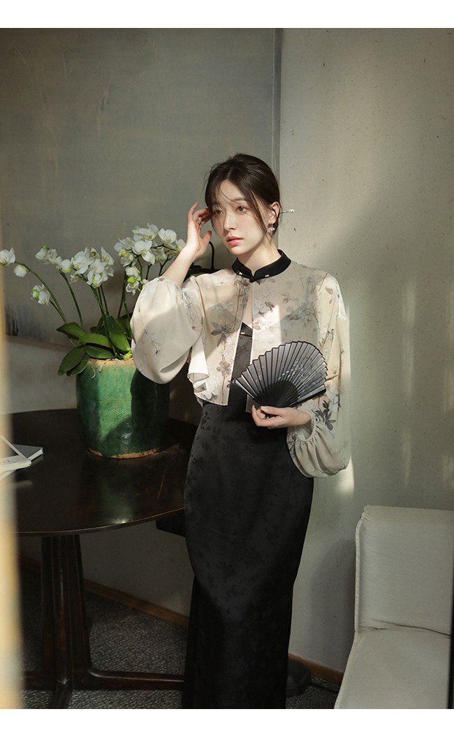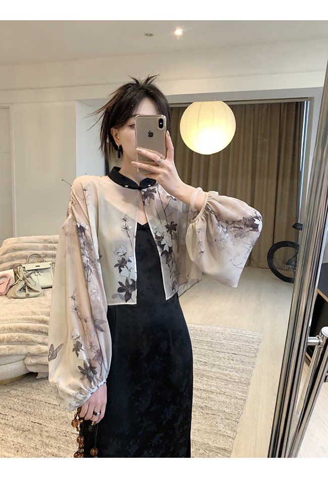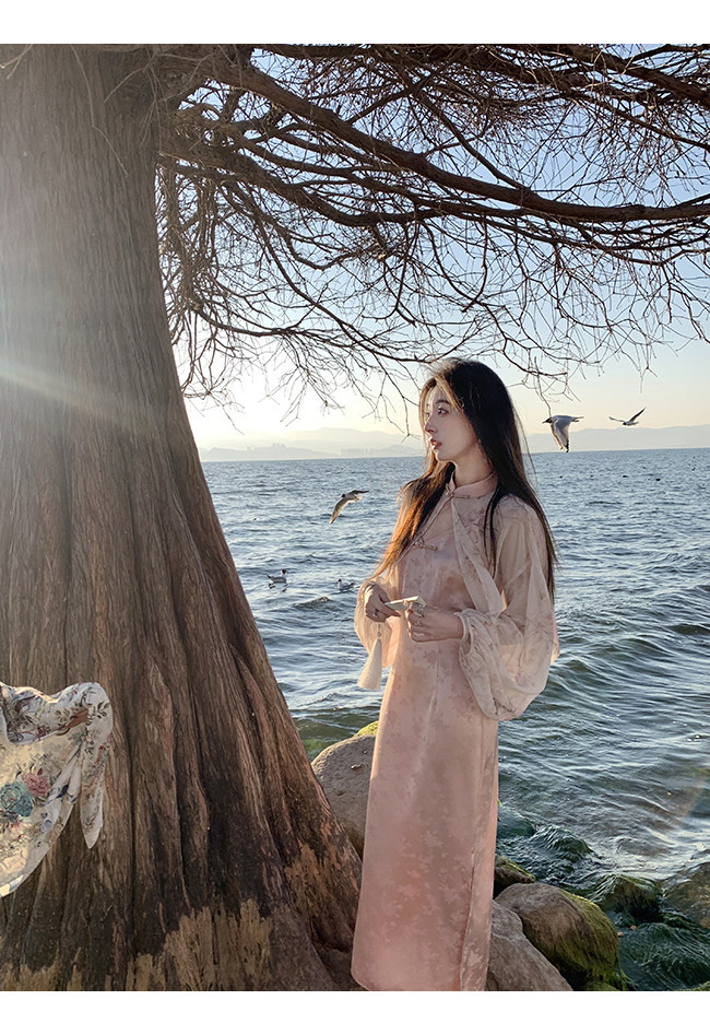 Xia Shiwen Новая китайская рубашка на пуговицах на пуговицах классический кардиган/жаккардовый атласный подвеска для женщин о стихотворении