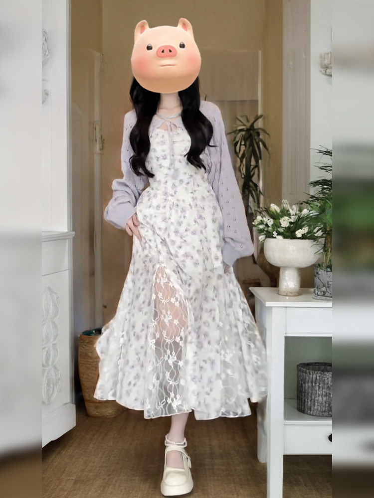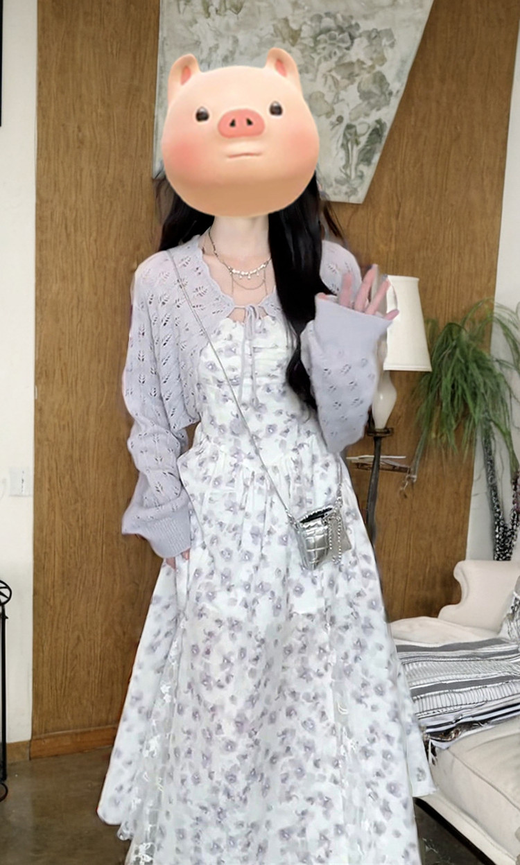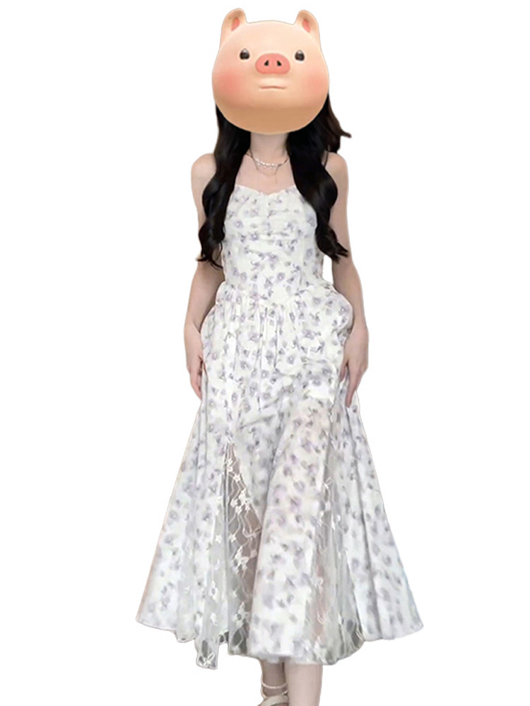 Летнее сиреневое платье, длинная юбка, французский стиль, цветочный принт, широкая цветовая палитра