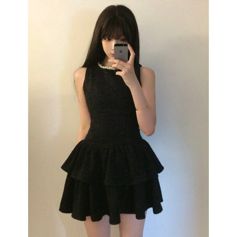 Черный жилет, платье, юбка, приталенный корсет, французский стиль, в стиле Шанель, подходит для подростков